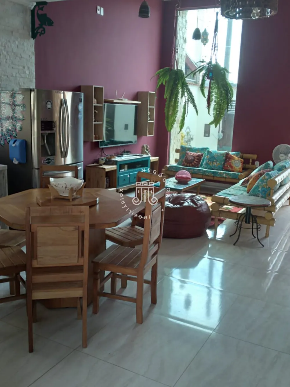 Composta com 03 dormitórios, sendo 02 suítes, 01 banheiro social e 01 banheiro da área externa, piscina com aquecimento a boiler, pé-direito alto, itens de qualidade, sala para 02 ambientes, cozinha planejada, área de serviço e 04 vagas de garagem com portão-eletrônico.