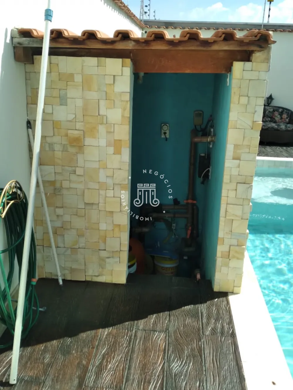Há uma área aproximada de 30 m² externa que será atualizada na prefeitura que corresponde a banheiro externo e hidromassagem.