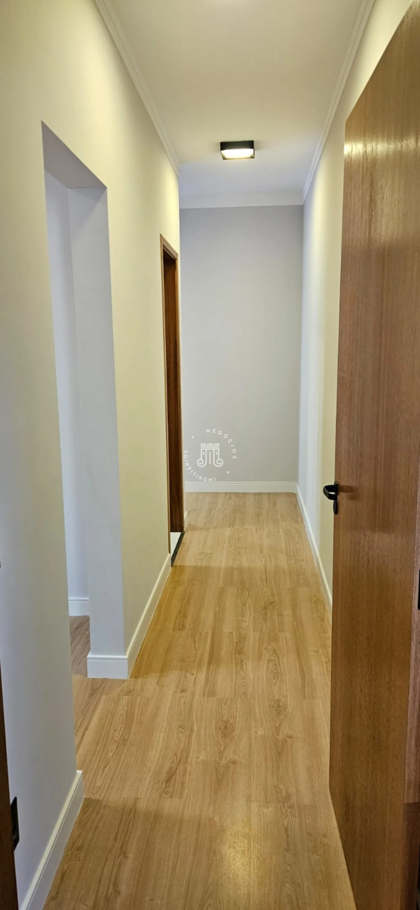 Os ambientes da residência contam com acabamentos uniformes em todos os espaços.