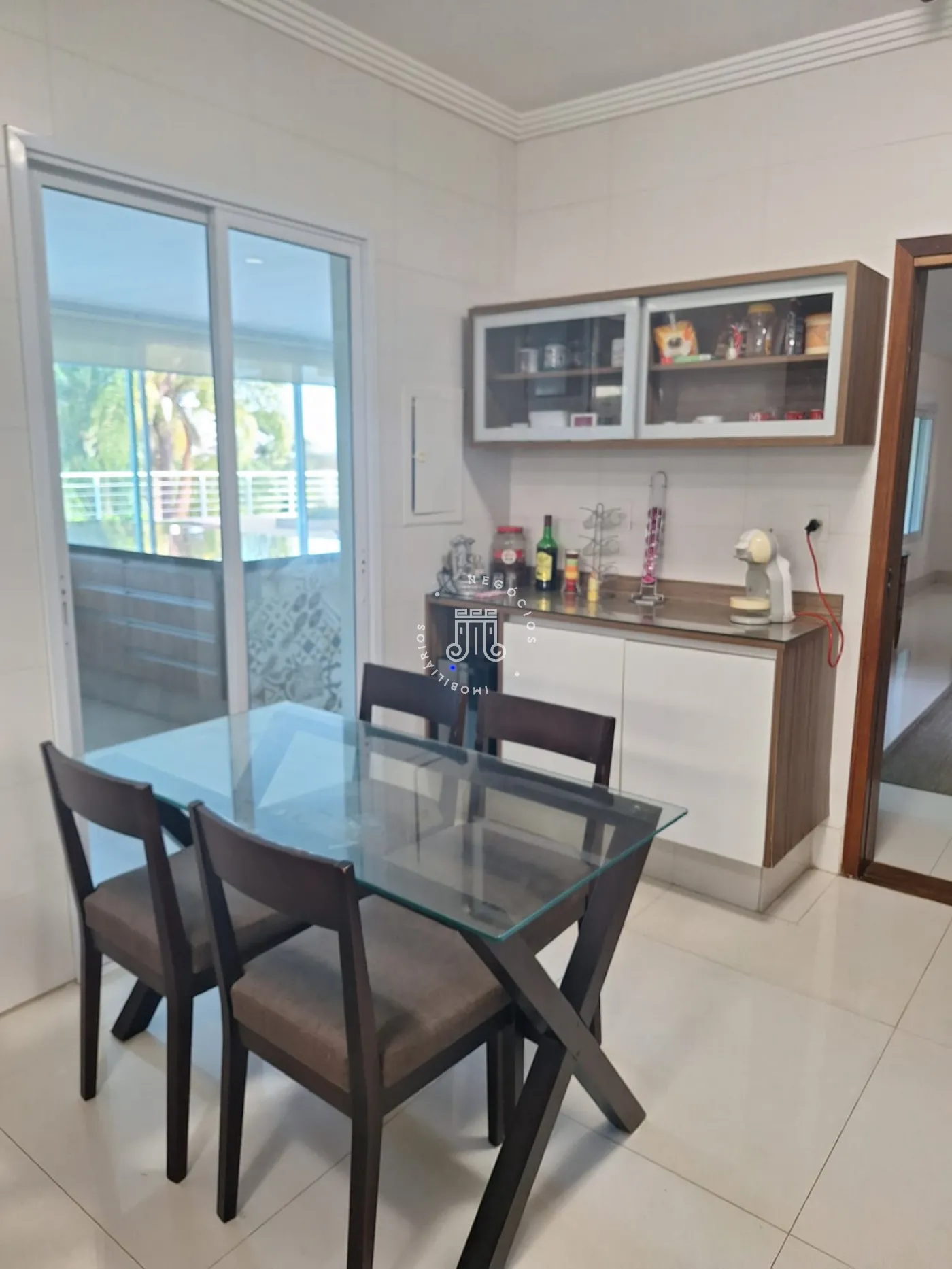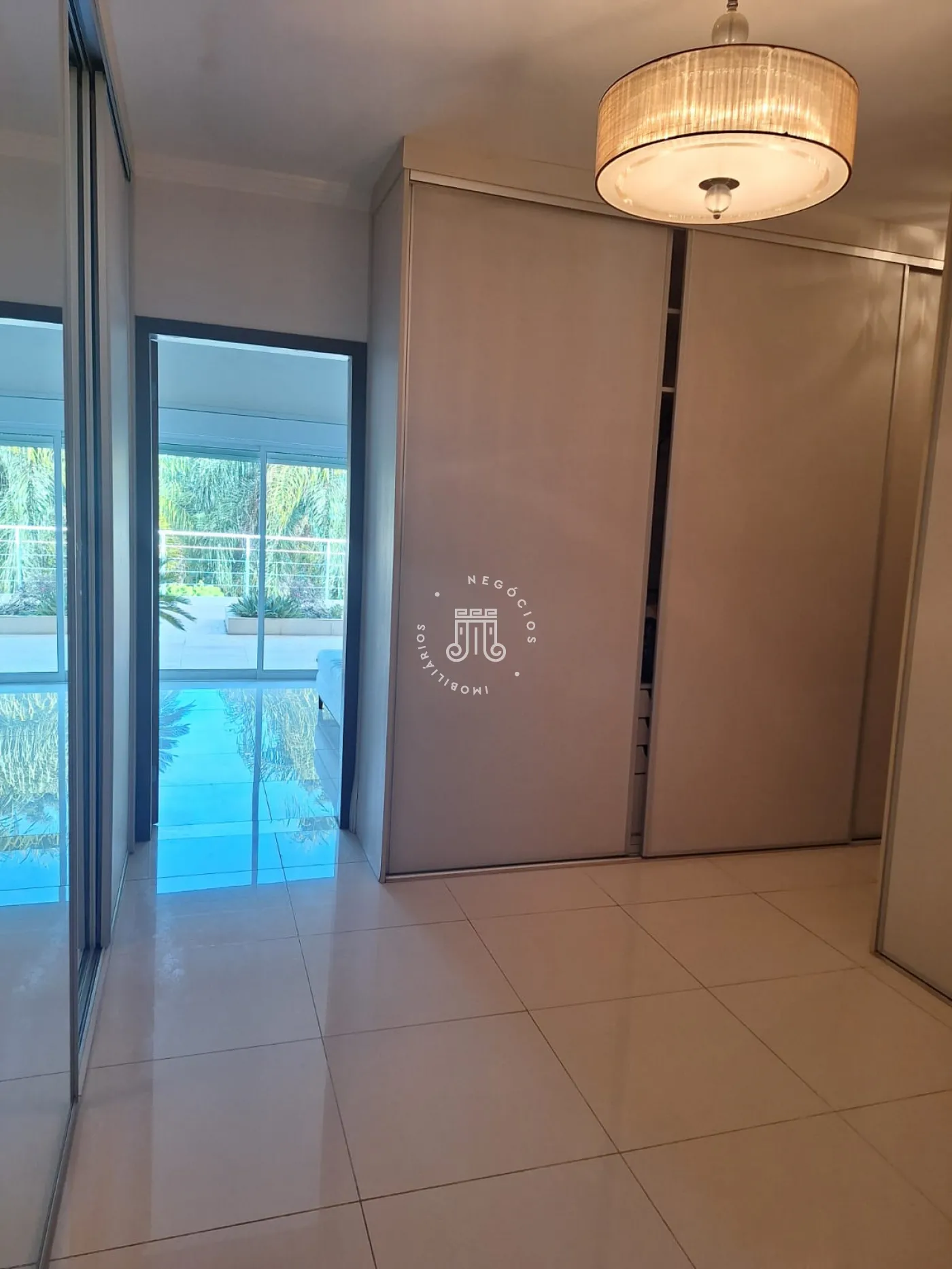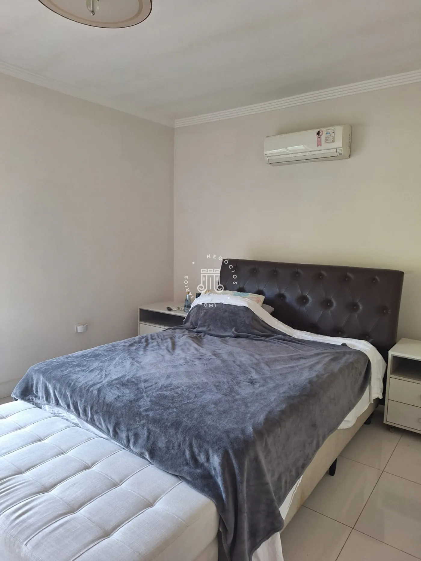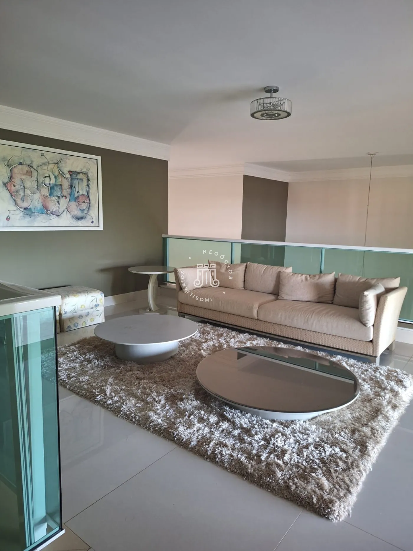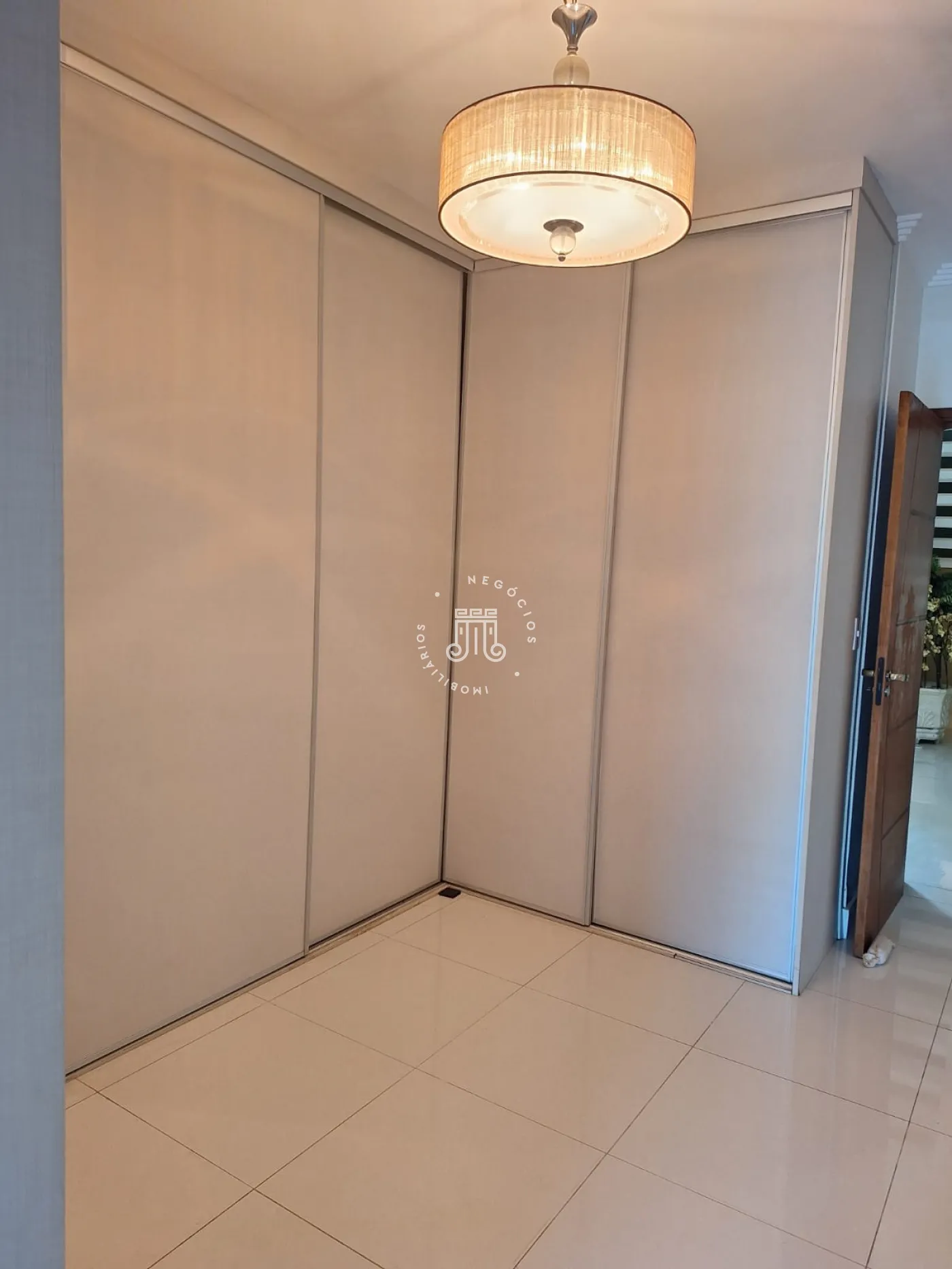 A área de lazer inclui espaço gourmet, piscina e ofurô em uma ampla área externa. No andar superior, há uma sala íntima e uma suíte com closet. O imóvel possui ar-condicionado nos dormitórios e janelas automatizadas.