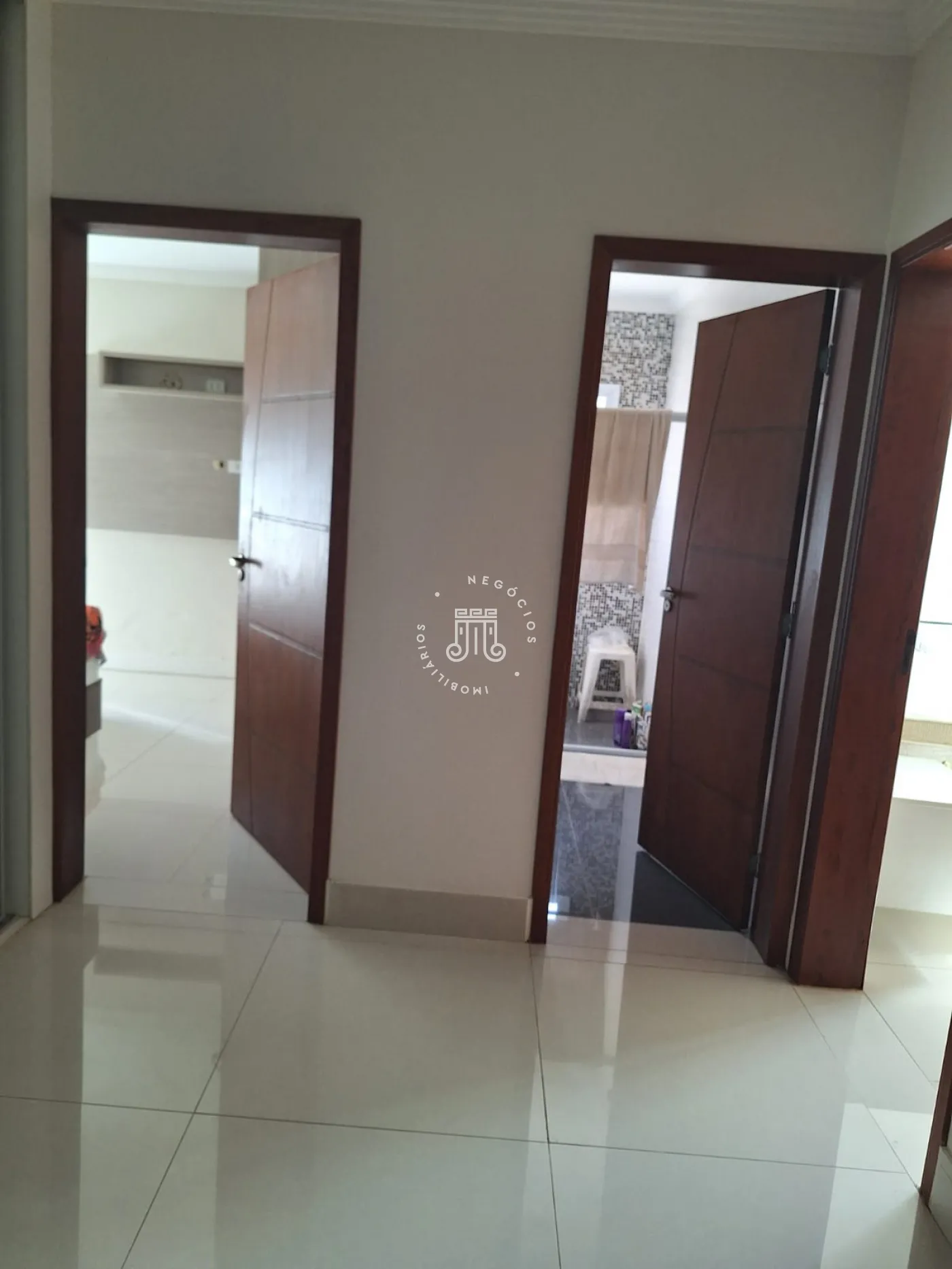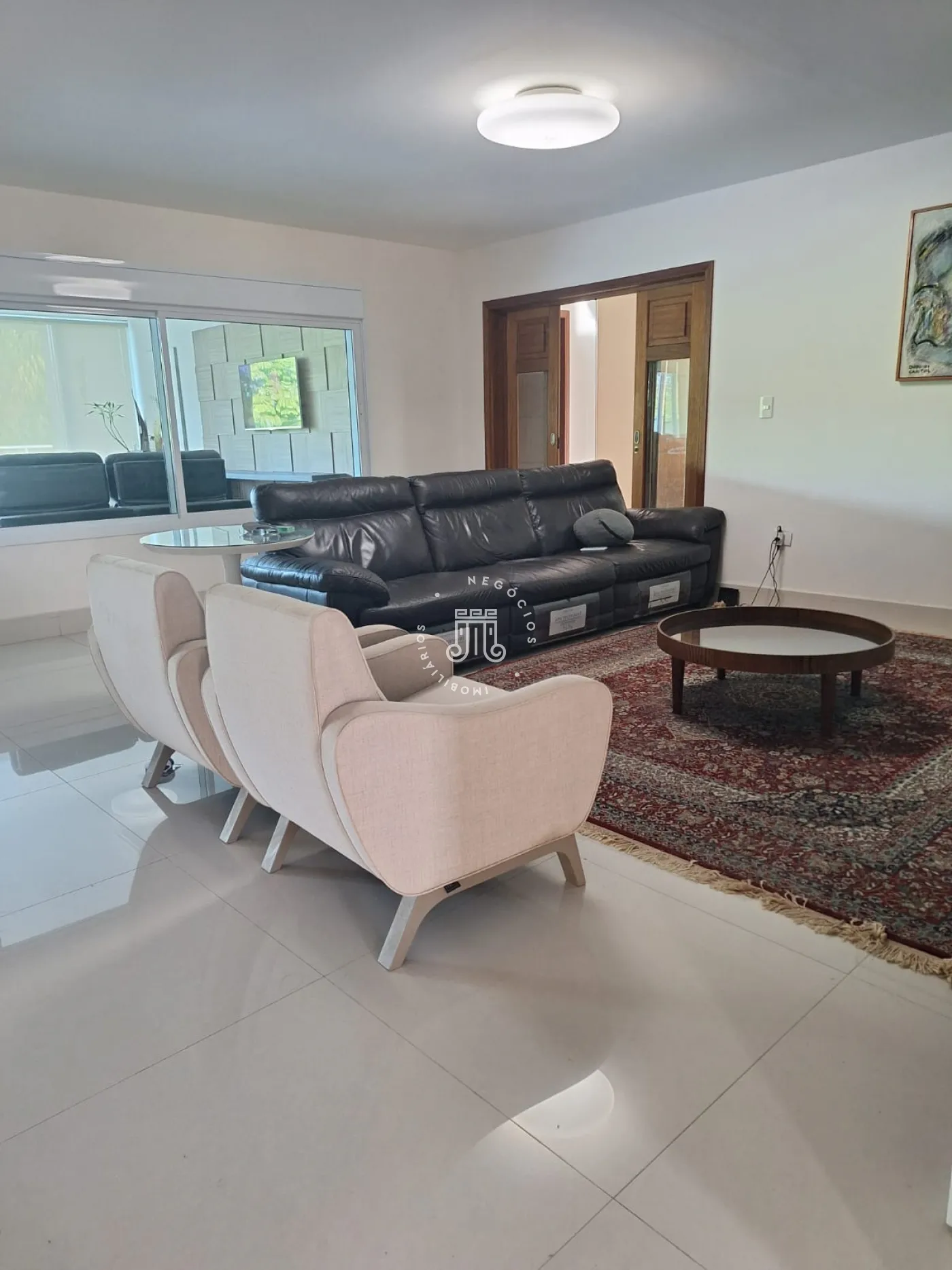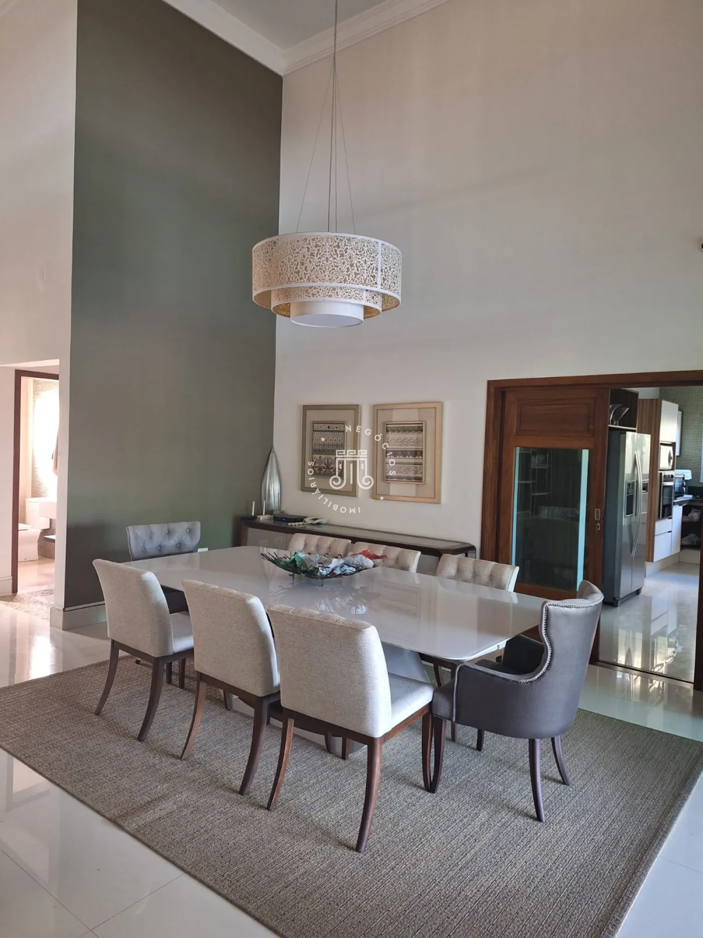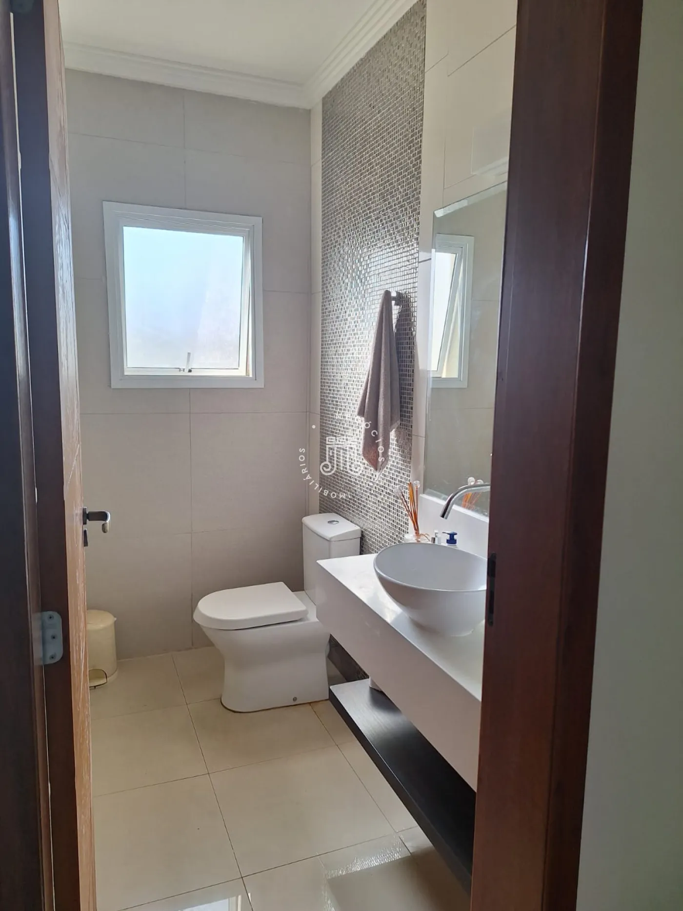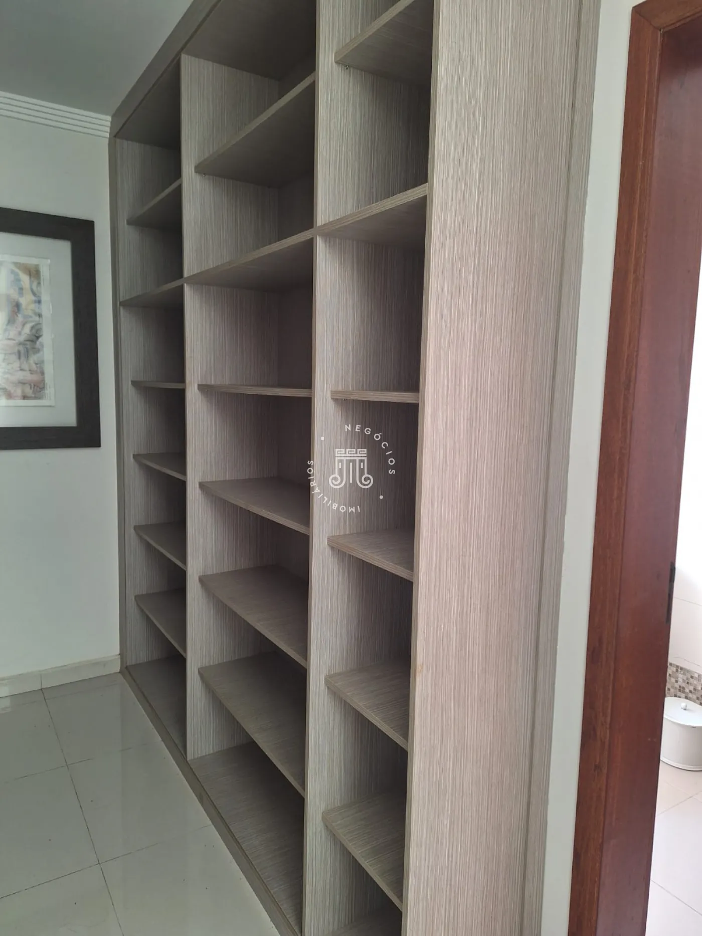 A área de lazer inclui espaço gourmet, piscina e ofurô em uma ampla área externa. No andar superior, há uma sala íntima e uma suíte com closet. O imóvel possui ar-condicionado nos dormitórios e janelas automatizadas.