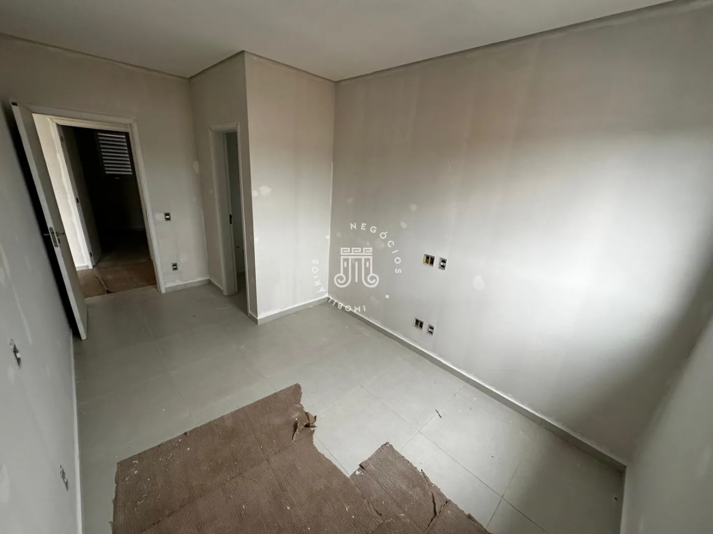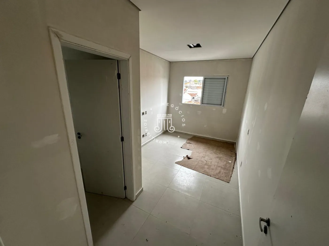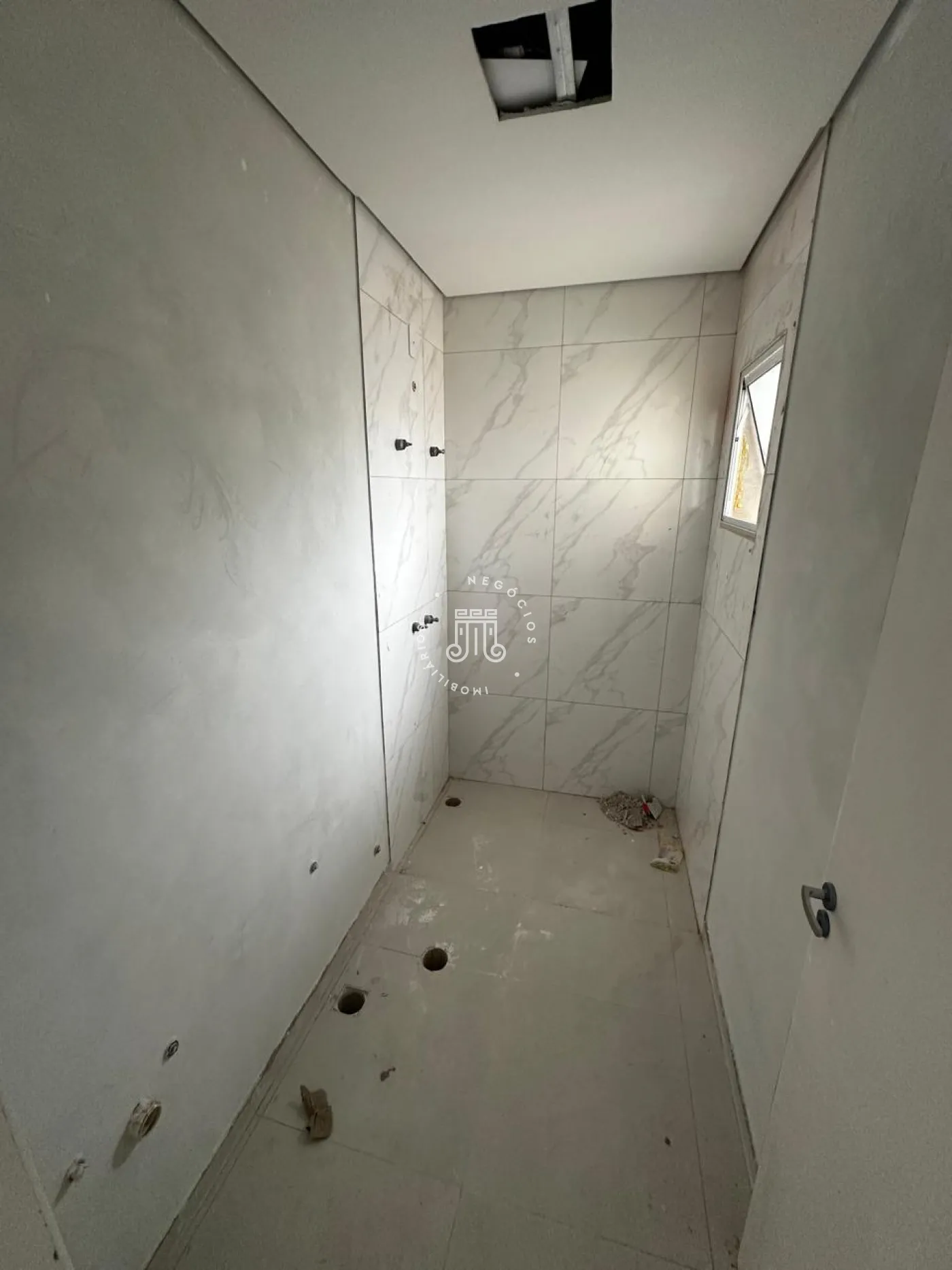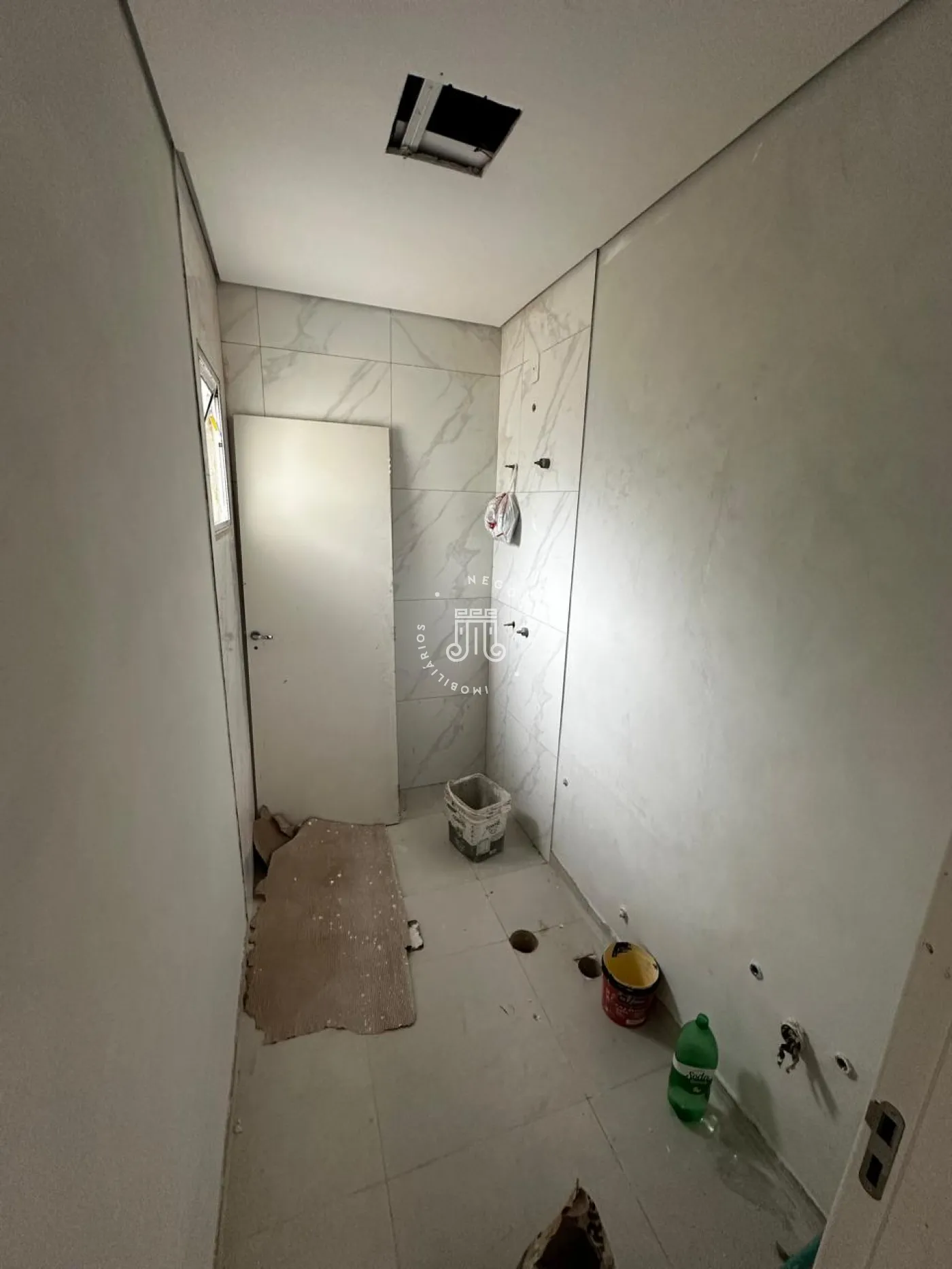 No piso superior, há dois dormitórios, além de uma suíte. O banheiro social atende aos demais cômodos desse pavimento. Há também um espaço reservado para home office.