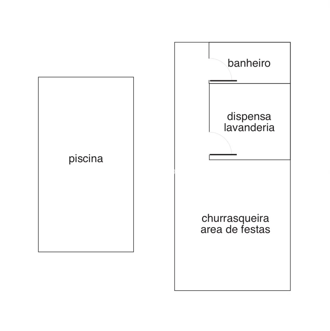 Área social e de serviço com 43m² de cobertura dívida em 3 ambientes: