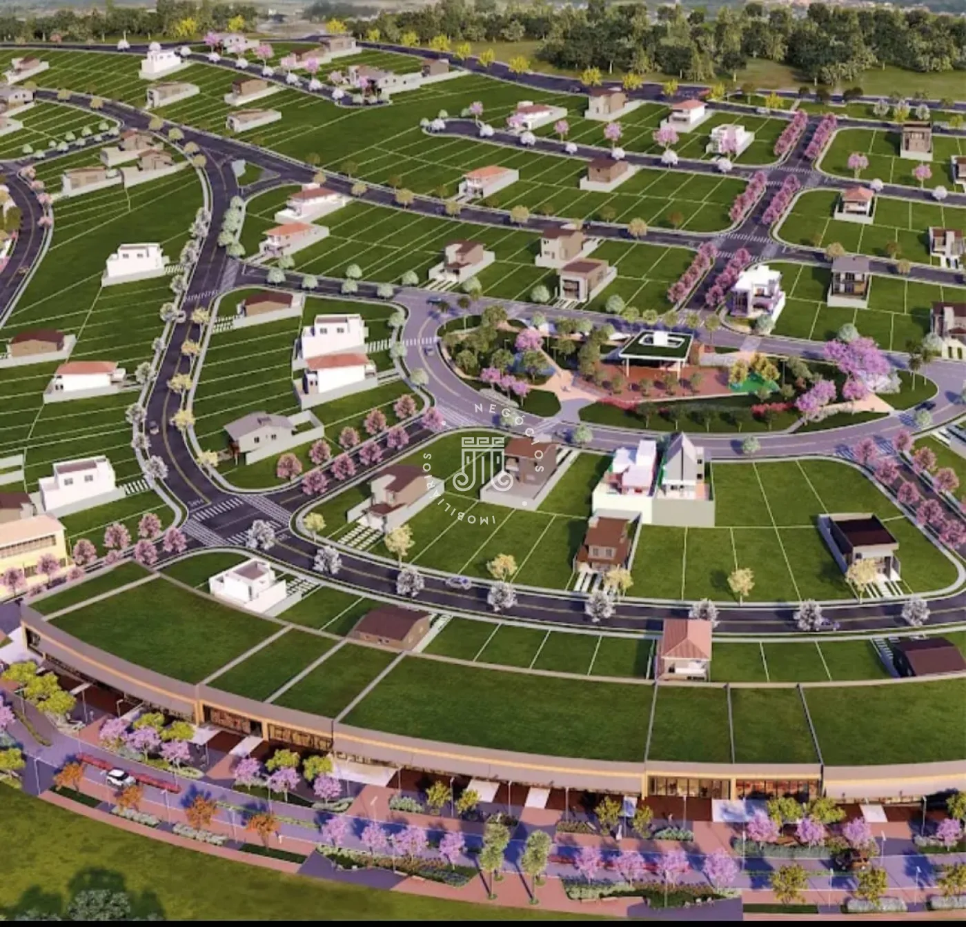 Condomínio com portaria 24 horas, monitorado por câmeras. Infraestrutura completa, com lotes amplos, ruas asfaltadas, cabeamento subterrâneo e boulevard comercial.