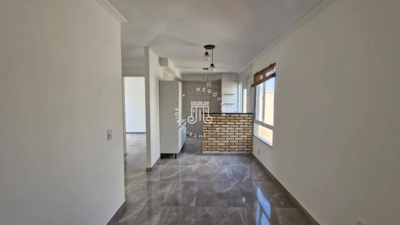 Imóvel com 02 dormitórios, uma espaçosa sala com 02 ambientes, cozinha equipada com armários, 01 banheiro completo com gabinete e box blindex, além de uma prática lavanderia e 01 vaga de garagem coberta.