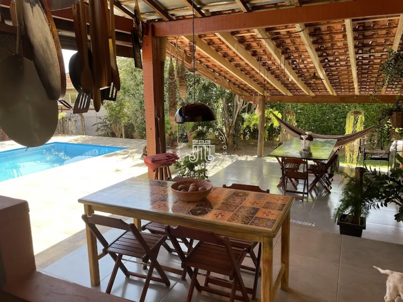 Casa em terreno 1200 m² e área construída de 268,19 m². Com 3 dormitórios, sendo 1 suíte, sala para 2 ambientes, escritório, lavabo, banheiro social, cozinha com copa, lavanderia. Quintal espaçoso com área gourmet, piscina, banheiro e loft de 2 pavimentos e banheiro.