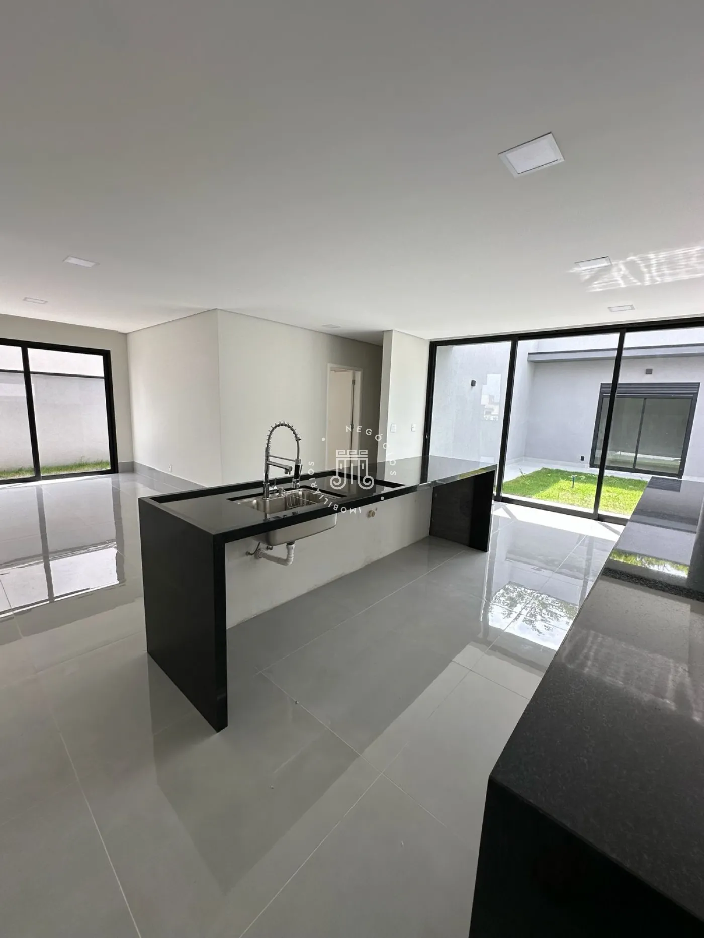 O imóvel é uma casa térrea com área construída de 172,41 m², localizada em um terreno de 360 m² dentro de um condomínio fechado. A residência possui sala de estar e TV, sala de jantar e cozinha, com todos os ambientes integrados, além de um espaço gourmet. Conta também com lavanderia equipada com bancada em mármore e cuba de inox, além de um depósito.