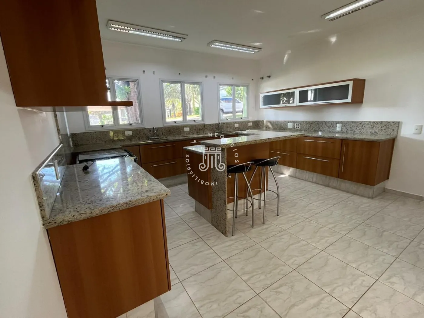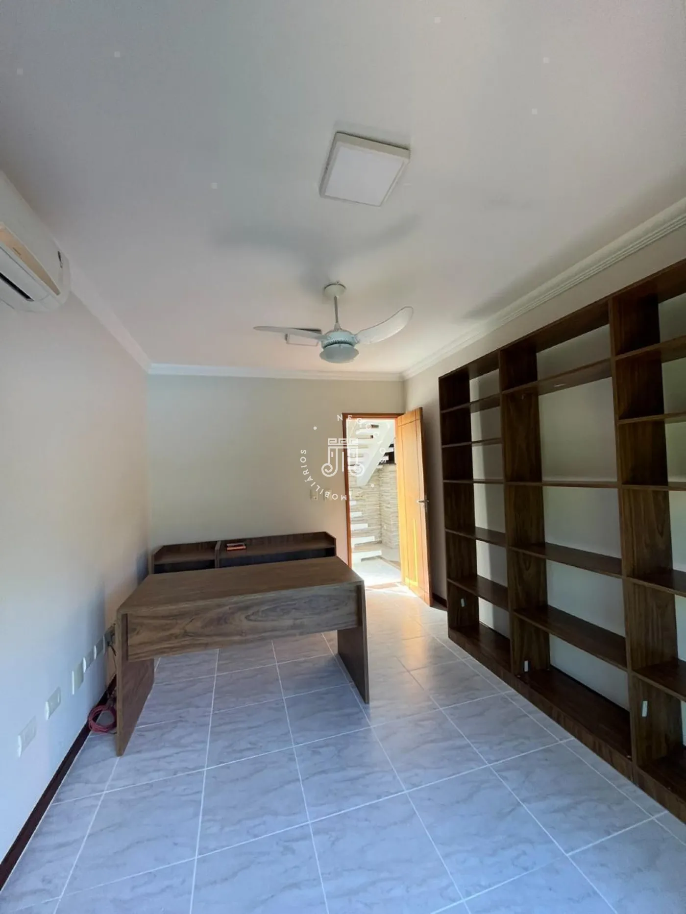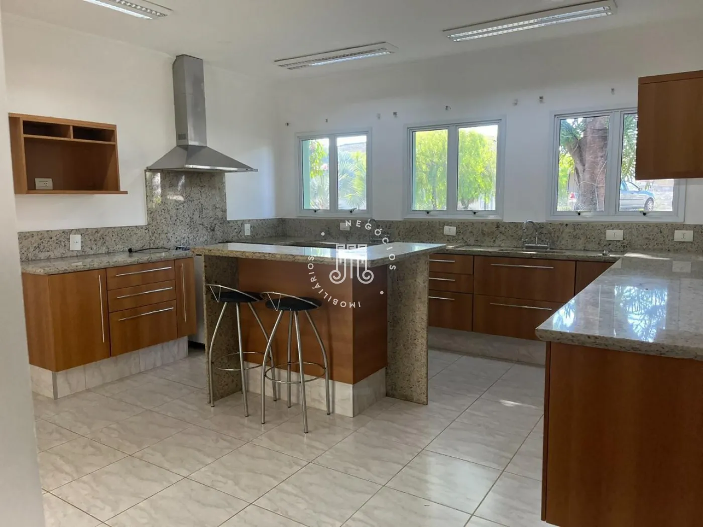 Com 4 suítes (sendo uma suíte master com closet, banheira e uma linda vista livre), escritório, sala de jantar, sala de estar, sala de TV, cozinha, despensa, área de serviço, quarto de empregada, depósito, garagem coberta para 2 carros e área social com piscina (com hidro e piscina infantil), churrasqueira e banheiro com chuveiro.
