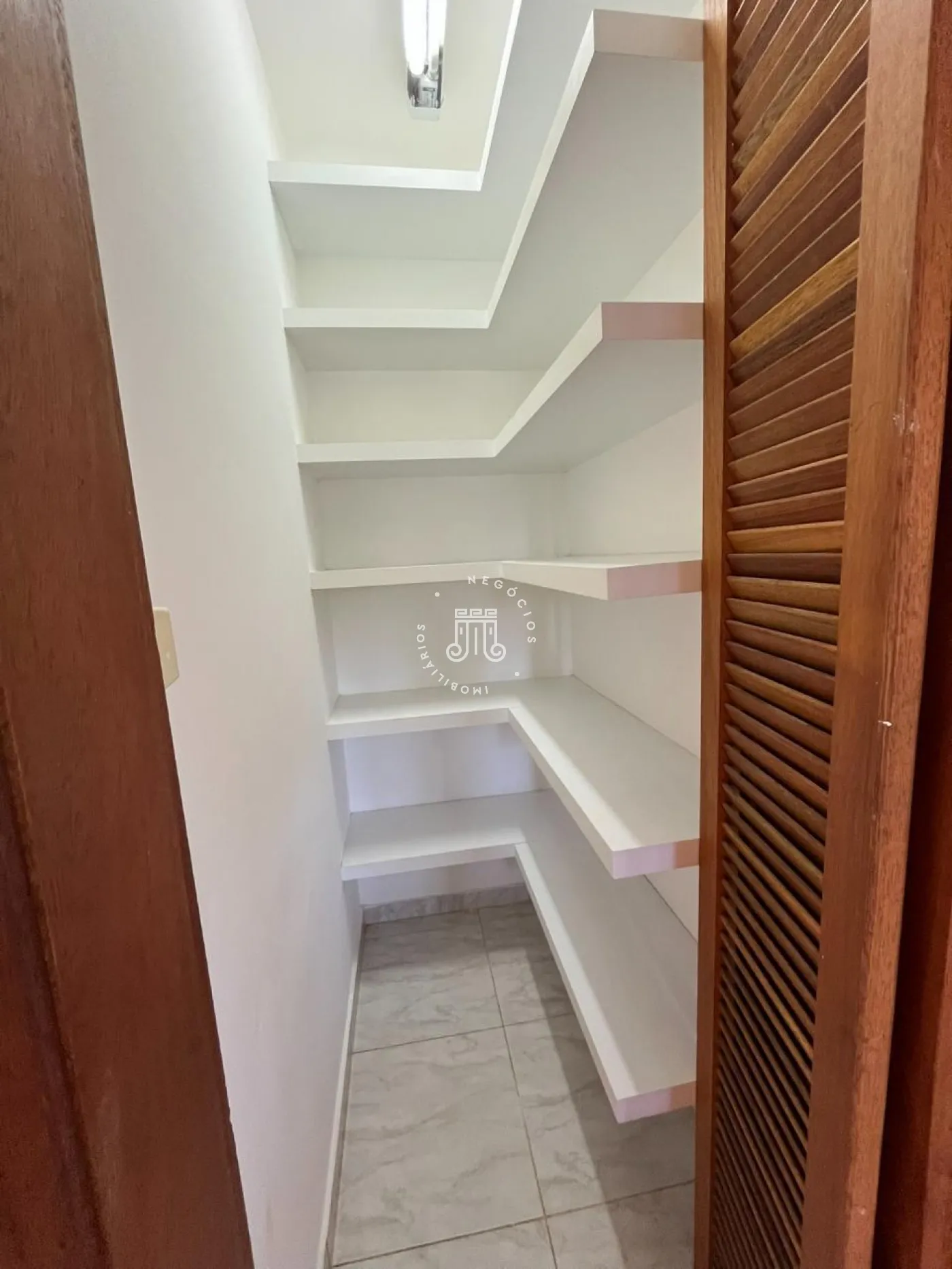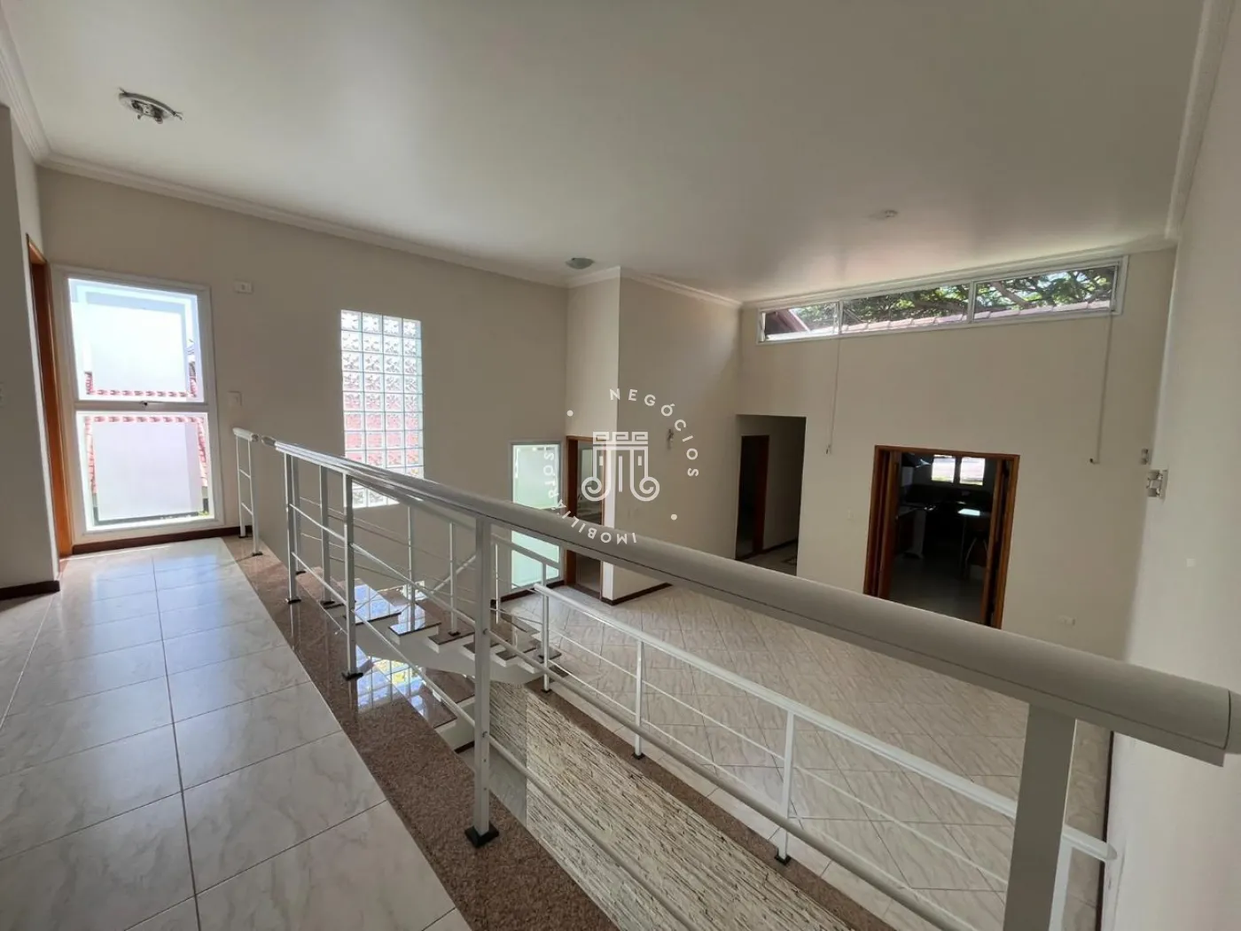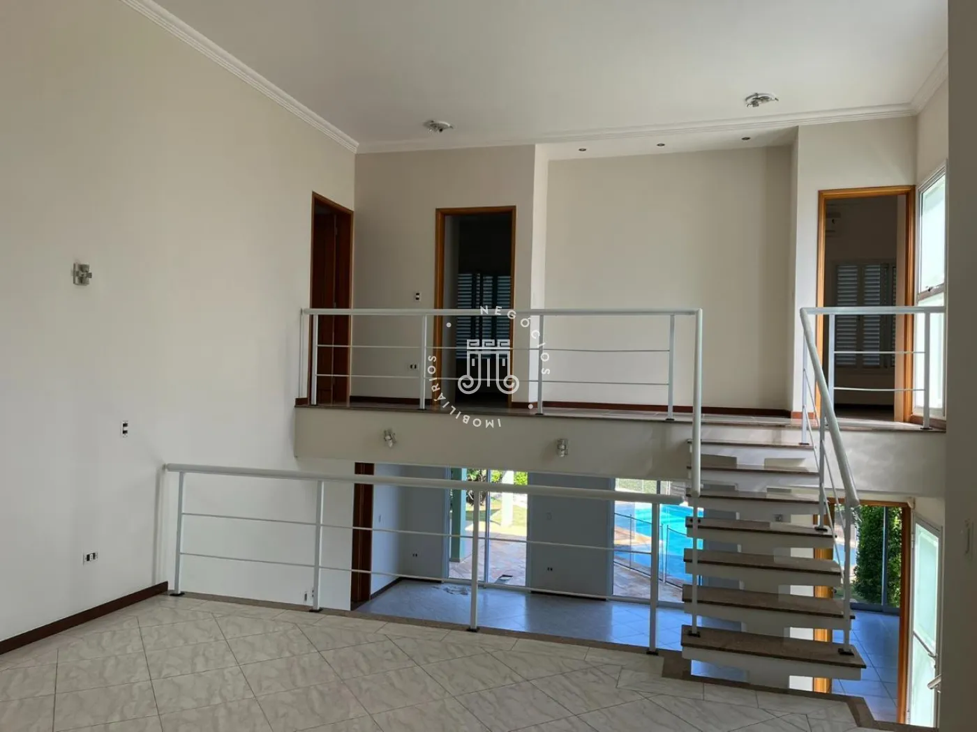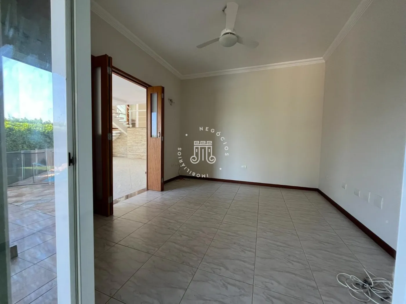 Com 4 suítes (sendo uma suíte master com closet, banheira e uma linda vista livre), escritório, sala de jantar, sala de estar, sala de TV, cozinha, despensa, área de serviço, quarto de empregada, depósito, garagem coberta para 2 carros e área social com piscina (com hidro e piscina infantil), churrasqueira e banheiro com chuveiro.