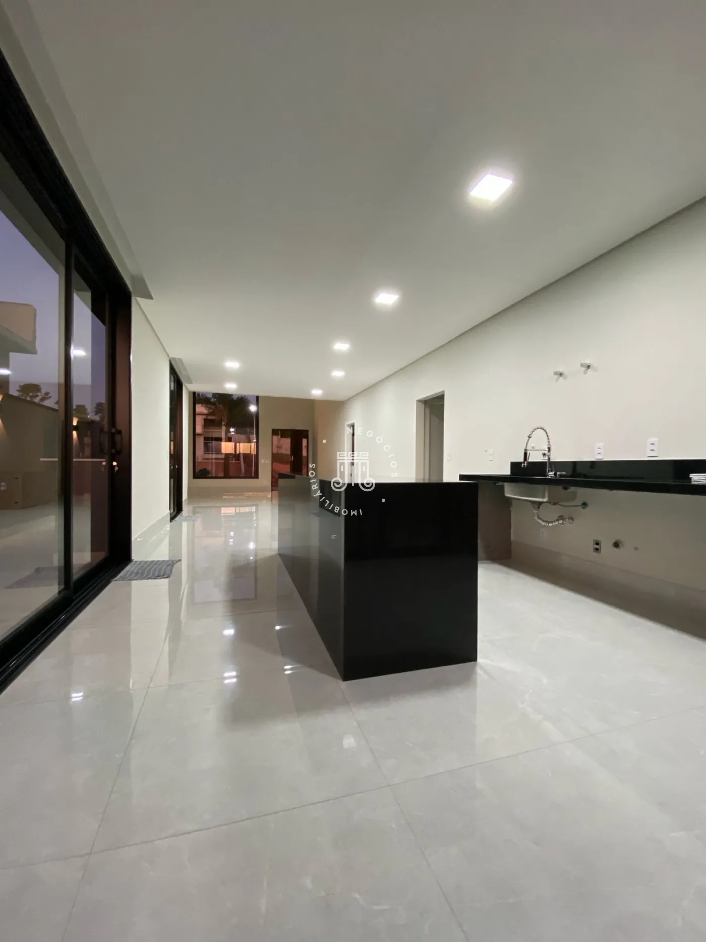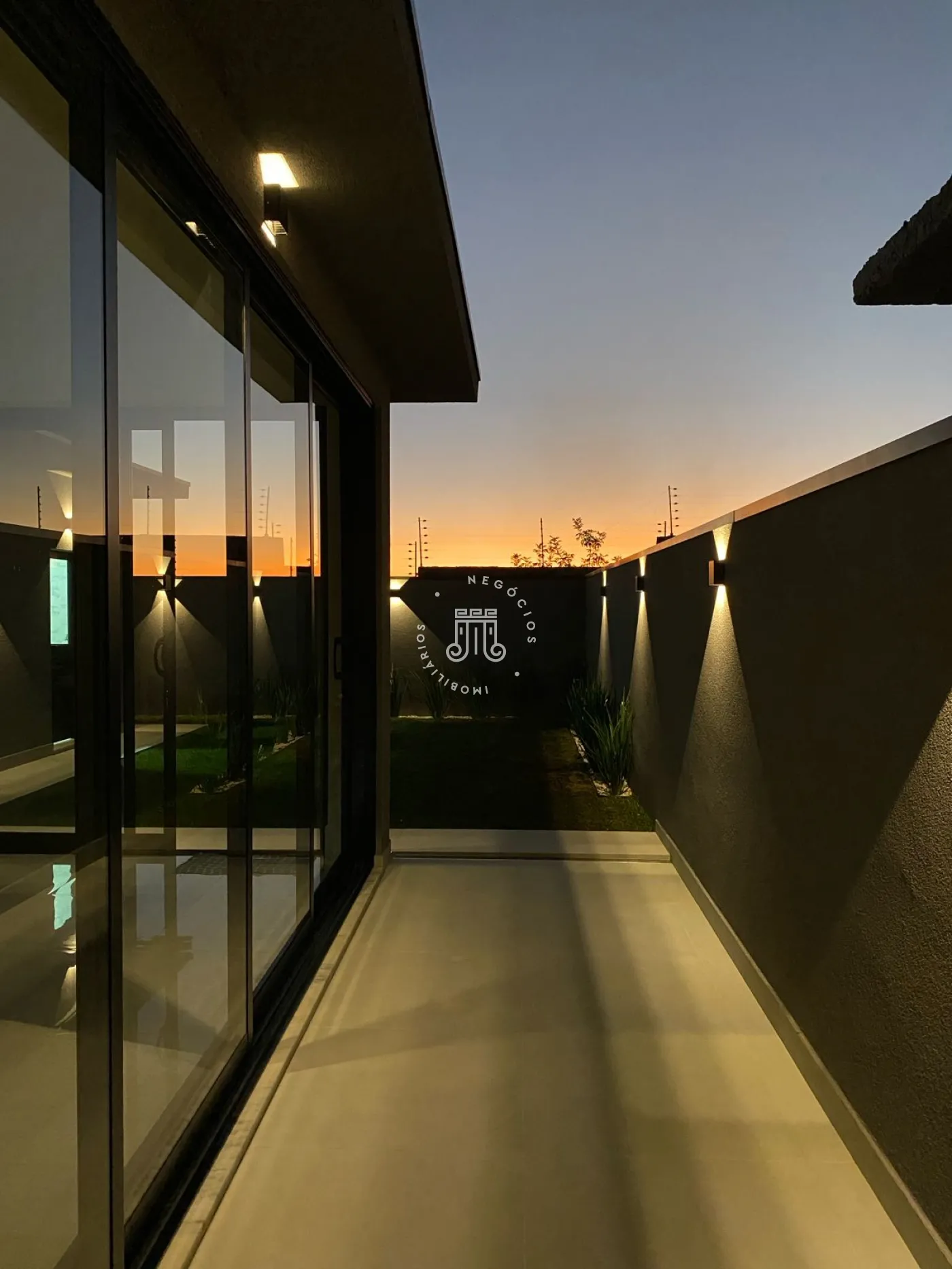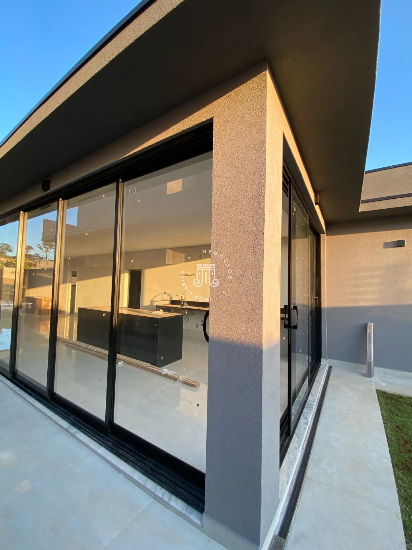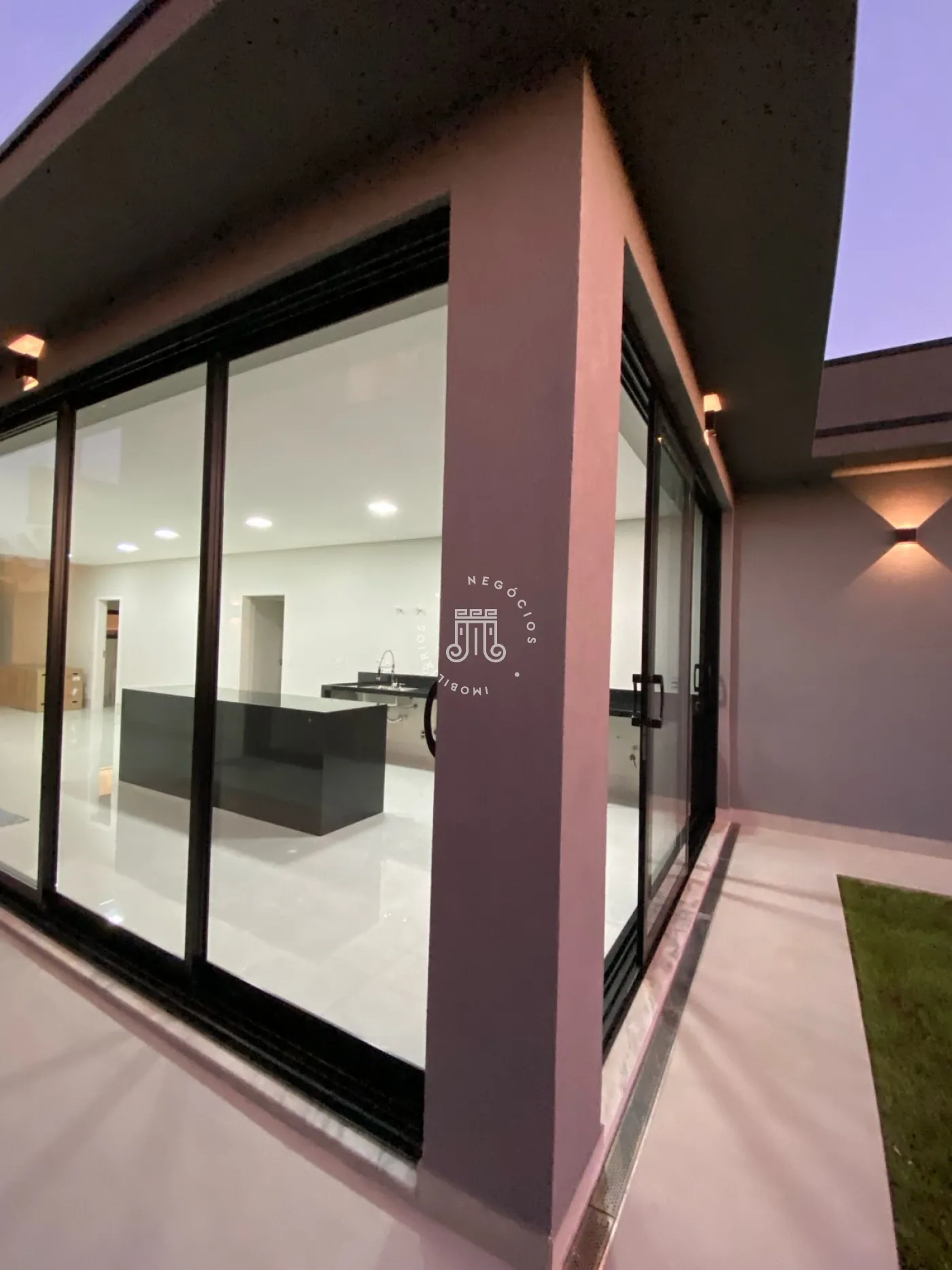 O imóvel é uma casa térrea com área construída de 164,62 m², situada em um terreno de 360 m² dentro de um condomínio fechado. A residência possui sala de estar e TV, sala de jantar e cozinha, com todos os ambientes integrados. Conta também com um espaço gourmet, lavanderia e depósito. A área íntima é composta por uma suíte master com closet e banheiro, além de dois dormitórios atendidos por um banheiro social. Há ainda um lavabo.
