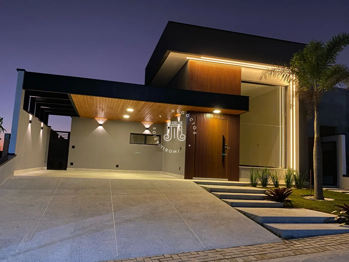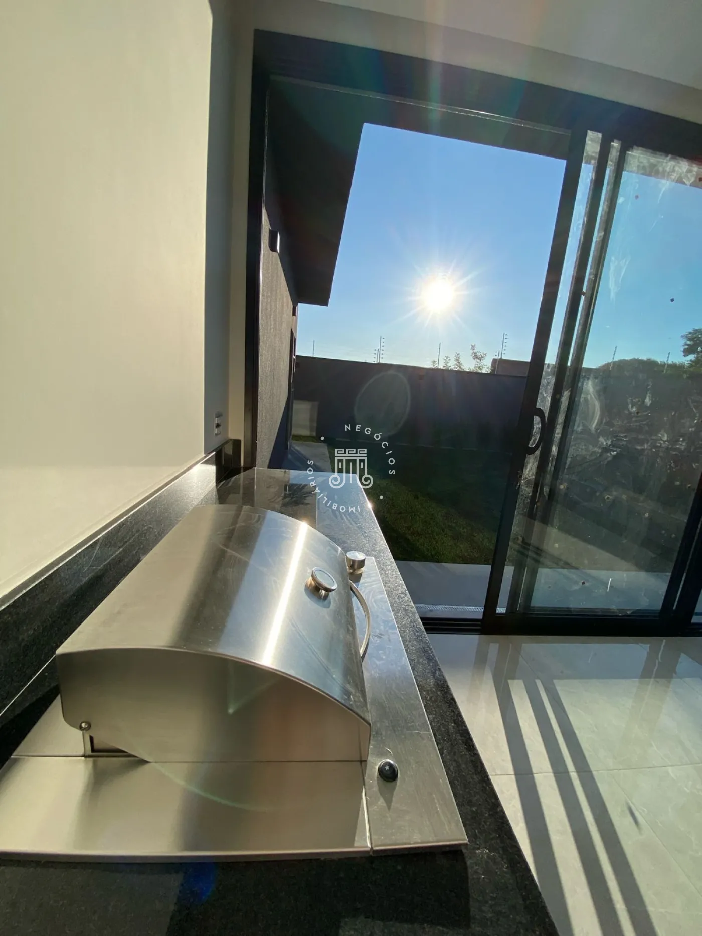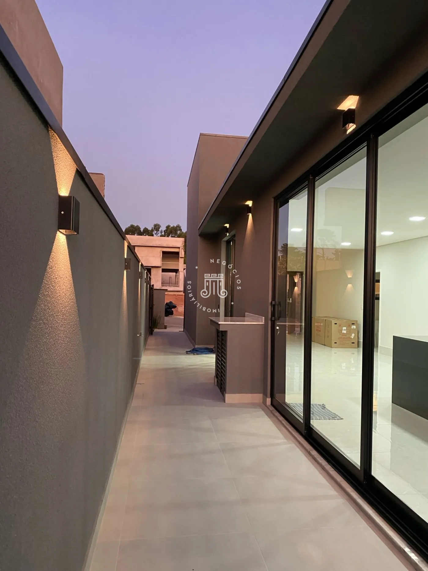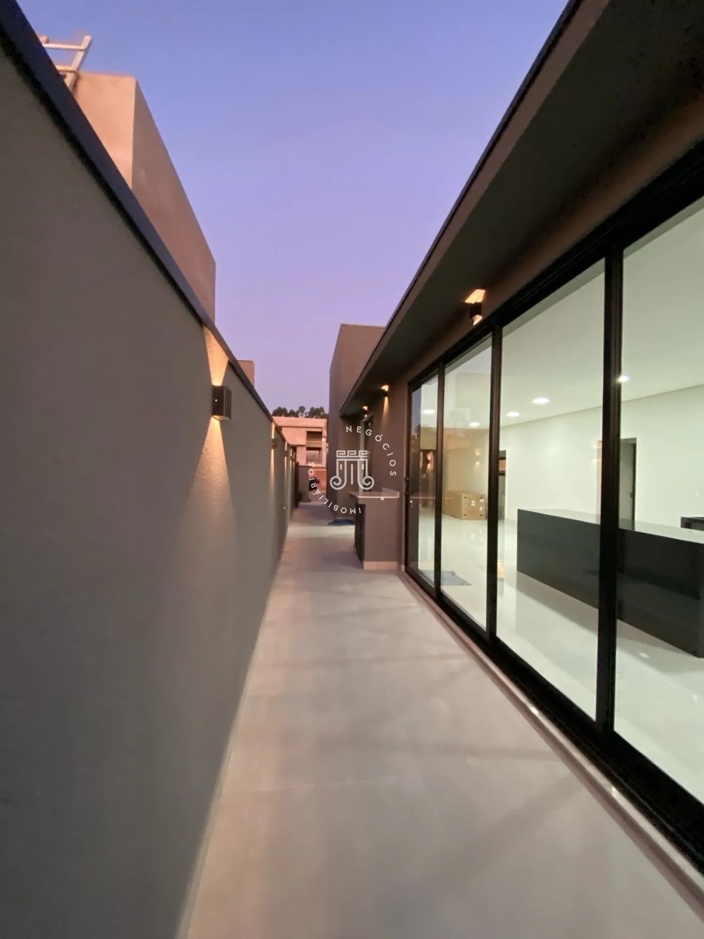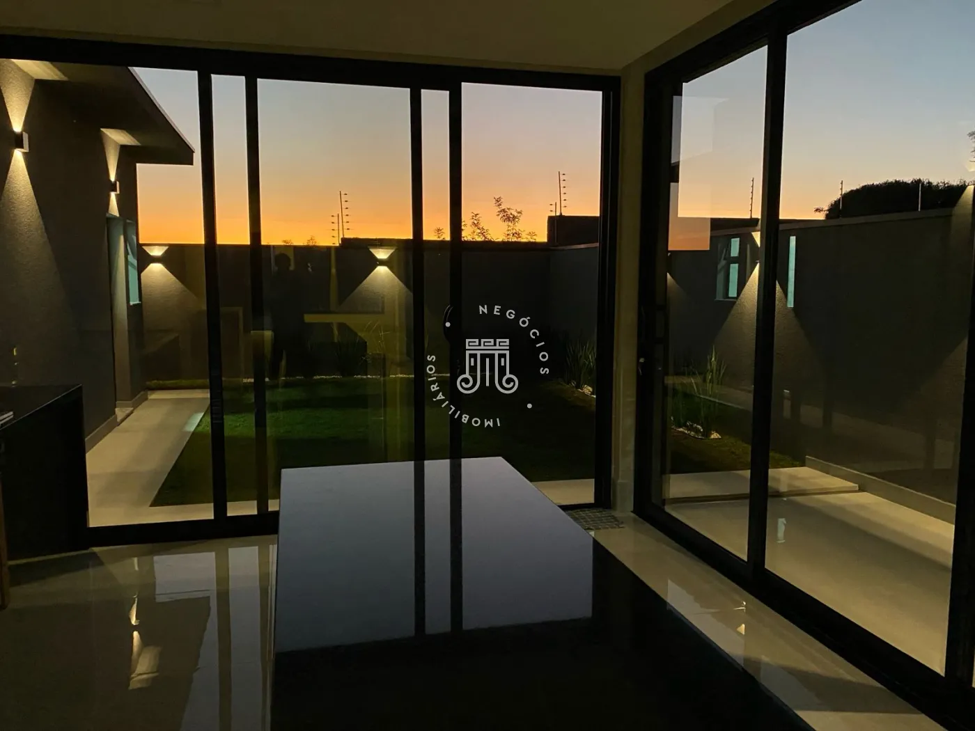 O imóvel é uma casa térrea com área construída de 164,62 m², situada em um terreno de 360 m² dentro de um condomínio fechado. A residência possui sala de estar e TV, sala de jantar e cozinha, com todos os ambientes integrados. Conta também com um espaço gourmet, lavanderia e depósito. A área íntima é composta por uma suíte master com closet e banheiro, além de dois dormitórios atendidos por um banheiro social. Há ainda um lavabo.