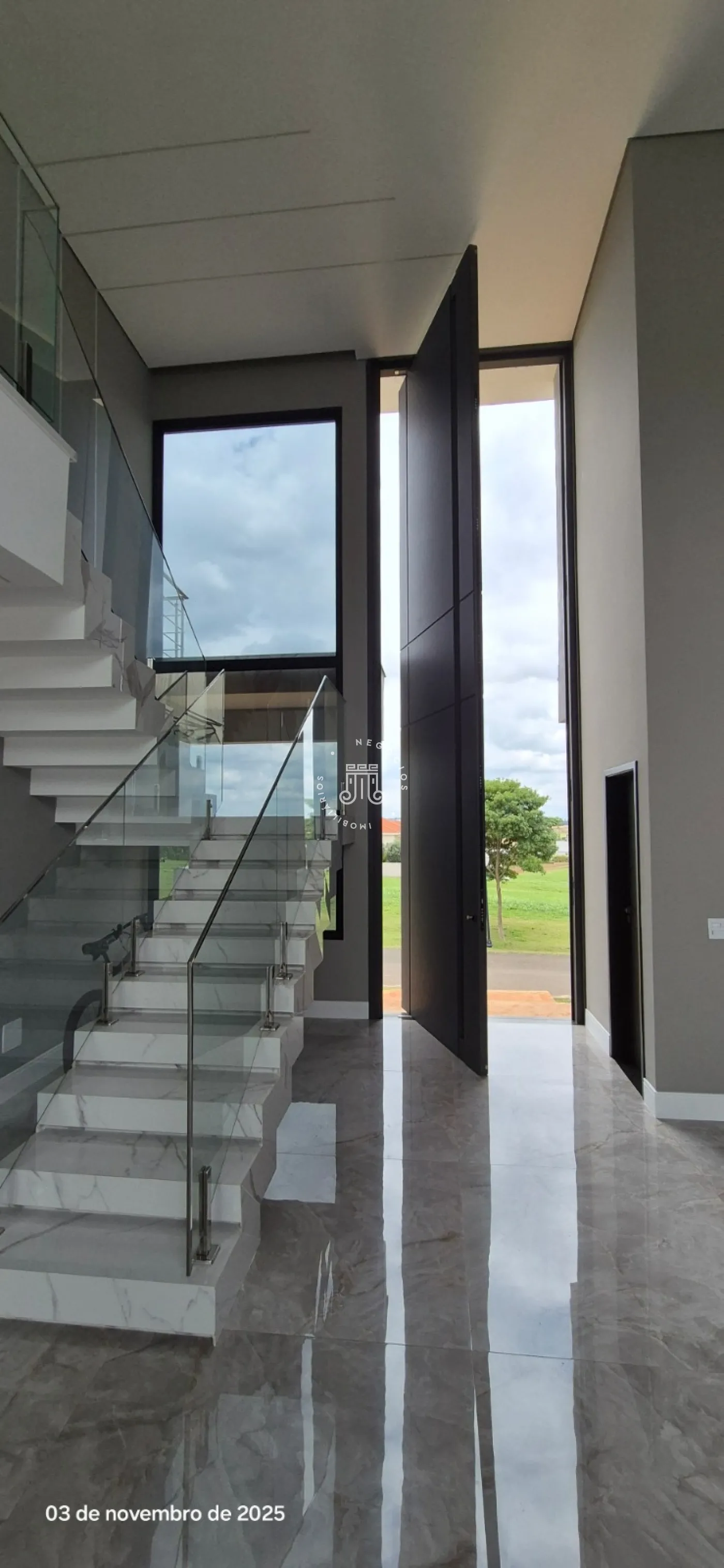 espaço fogo de chão / luxuosa porta de entrada em alumínio com cerca de 7m de altura /