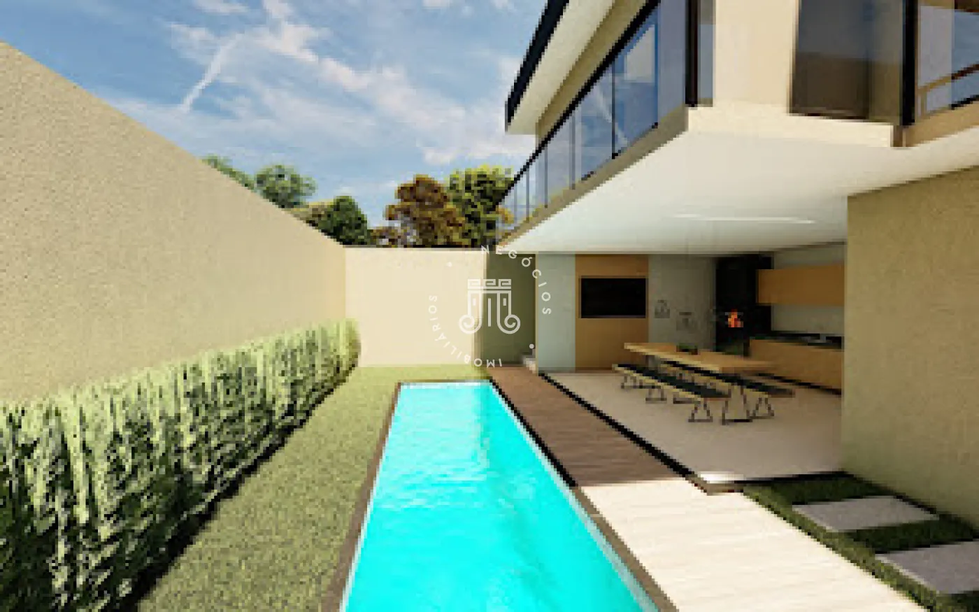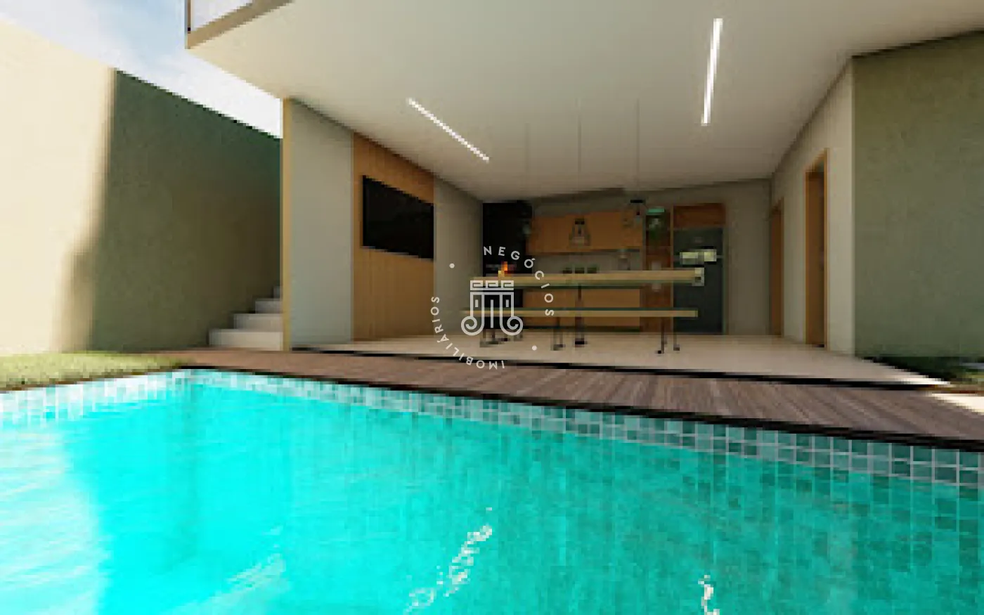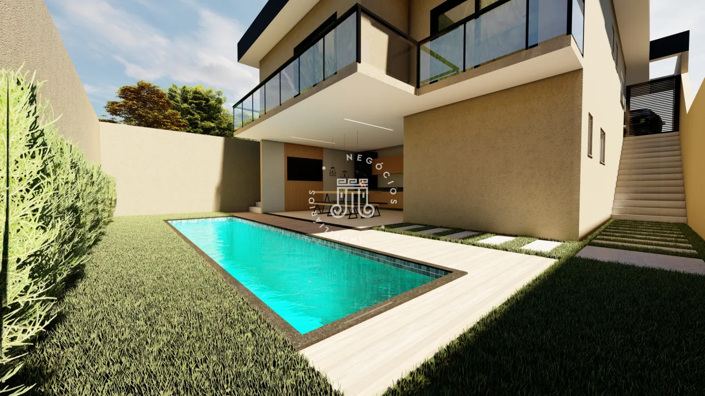 Na parte de baixo da casa uma área gourmet grande, escritório, 01 banheiro e uma excelente piscina.