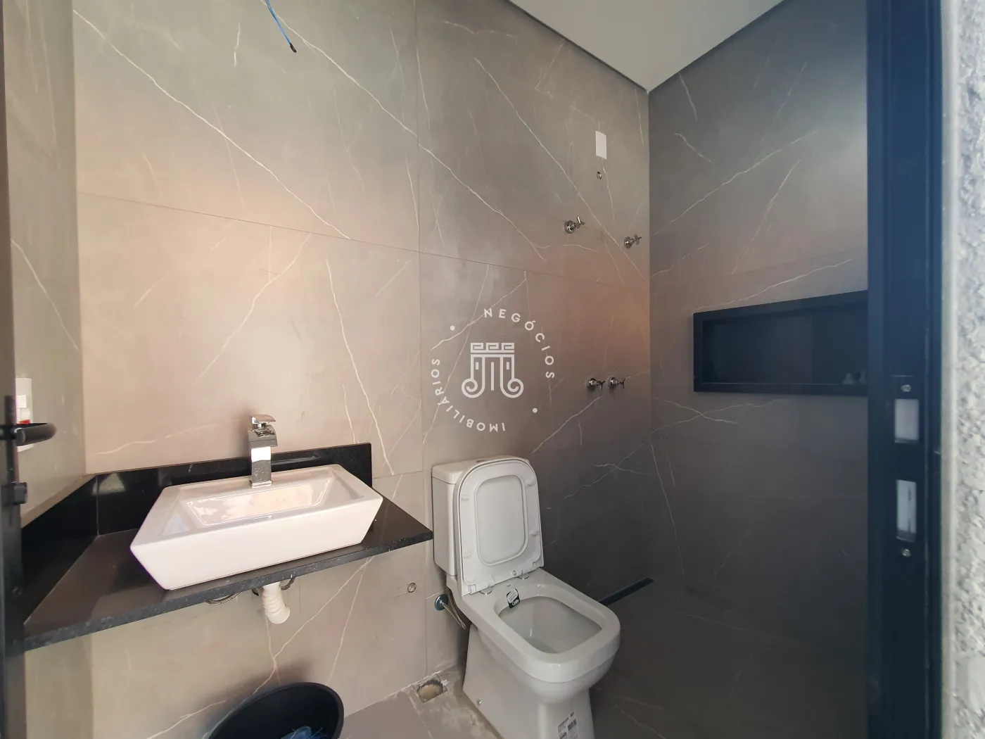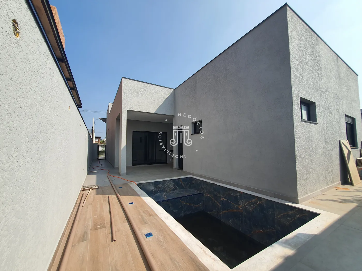 Essa excelente casa térrea, possui 300m² de terreno, sendo 164m² de construção que possui 3 suítes, 5 banheiros (1 lavabo), sala de estar e jantar ampla com conceito aberto para cozinha, área de serviço, espaço gourmet com churrasqueira, piscina preparada para aquecimento e iluminação, garagem coberta para 2 carros e boiler com energia solar.