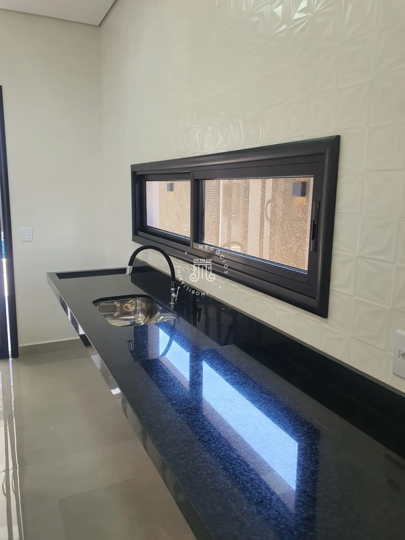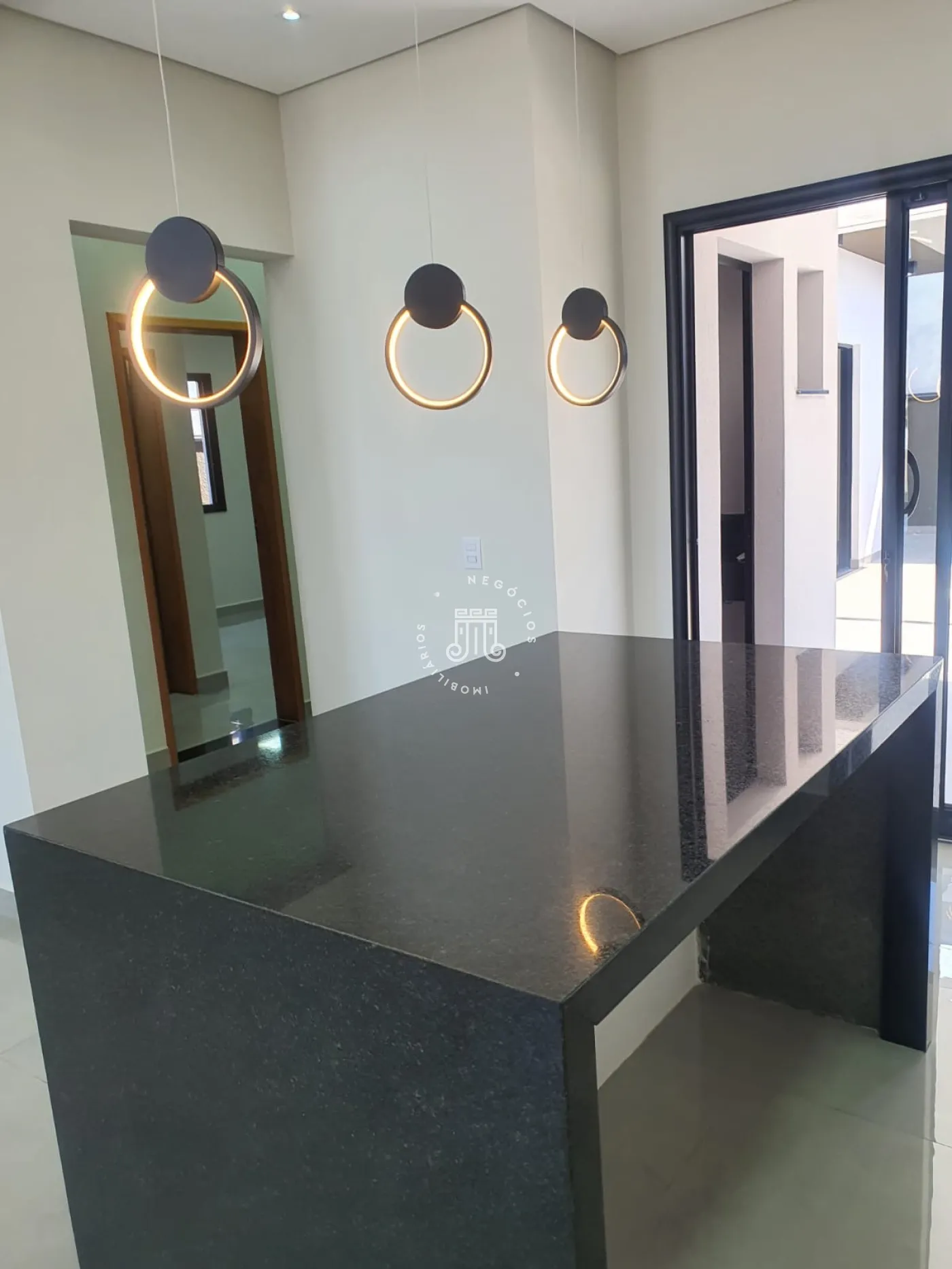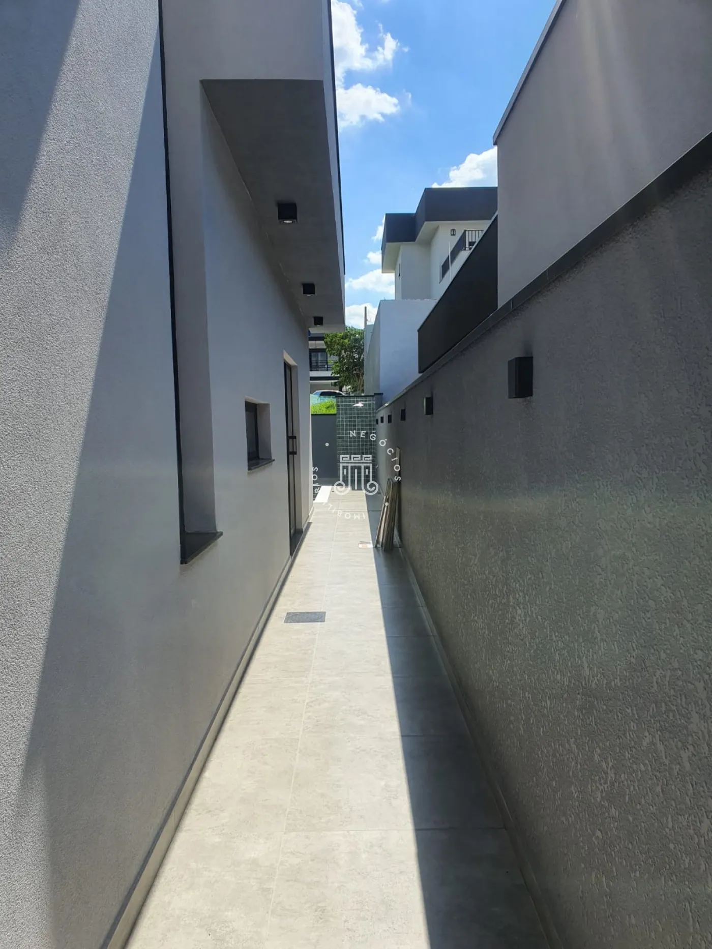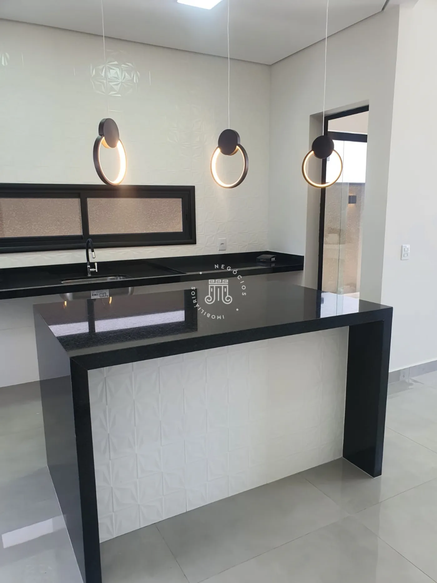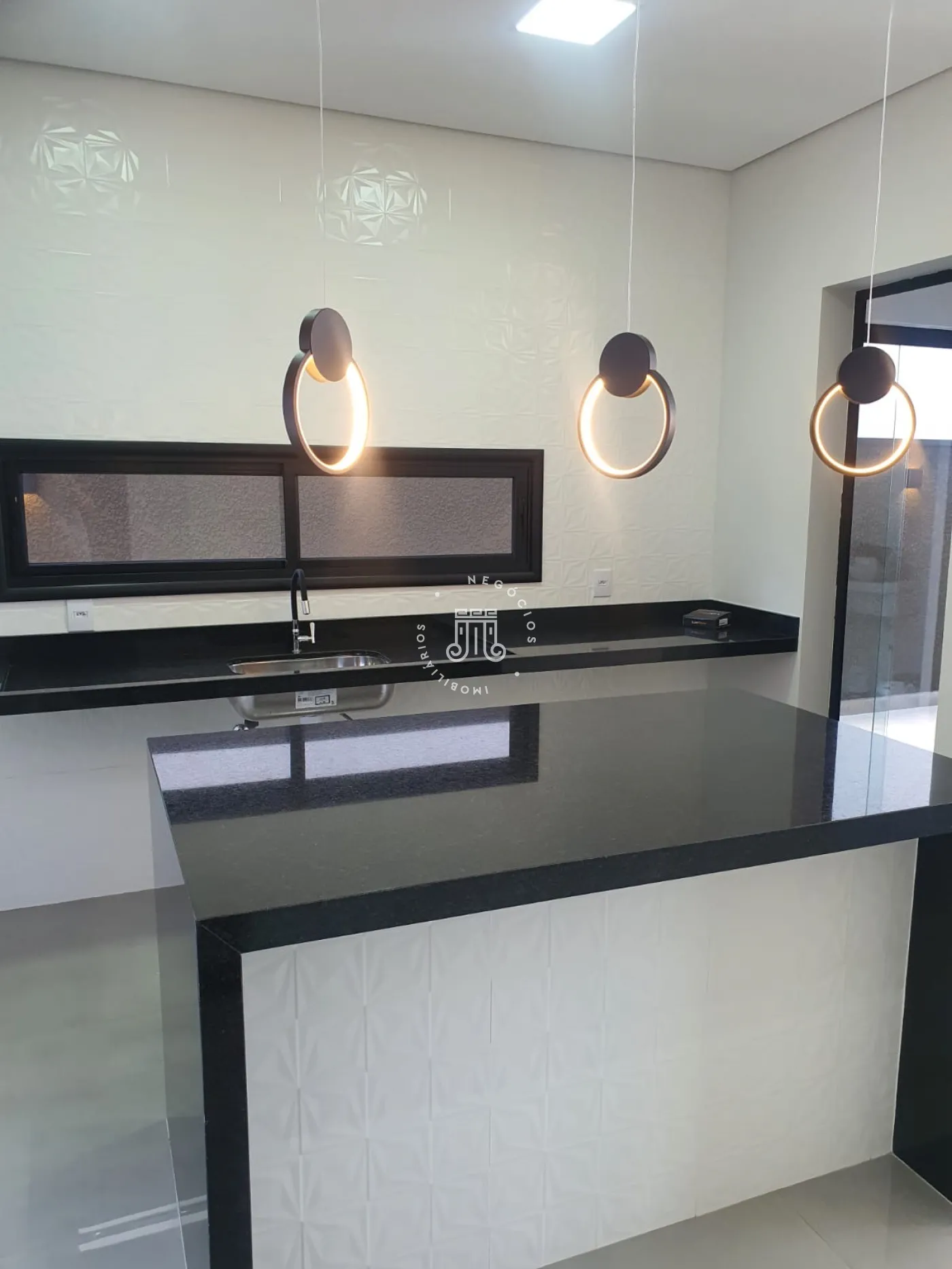 O imóvel conta com 3 quartos, sendo os 3 suítes com box de vidro nos banheiros, sala, cozinha com ilha, área de serviço, área gourmet com churrasqueira e piscina com aquecimento solar e cascata, vaga para 2 carros e um corredor lateral que da acesso ao fundo da casa.