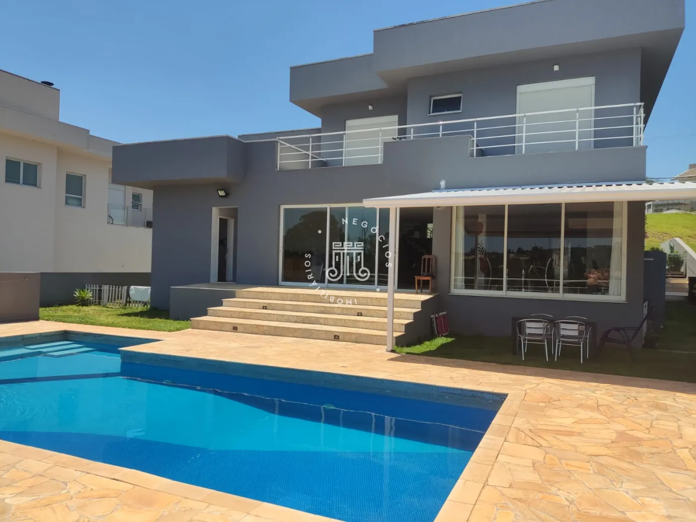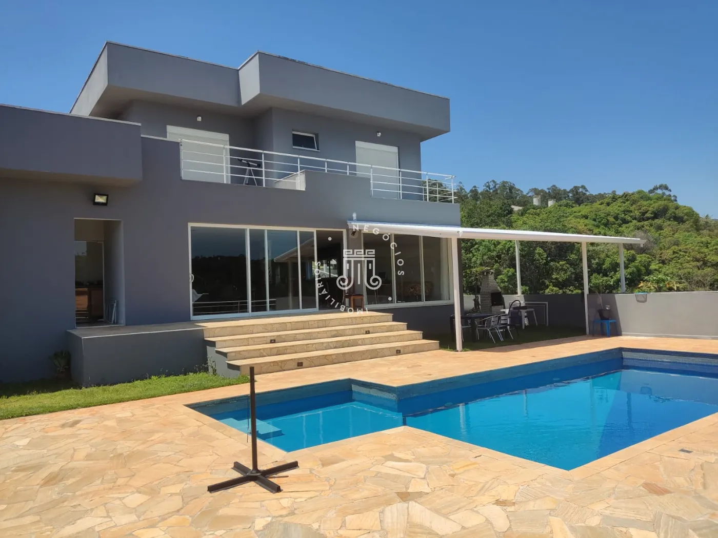 Casa tem pressurizador de água, energia solar para aquecimento da piscina, aquecimento a gás para torneiras e chuveiros..