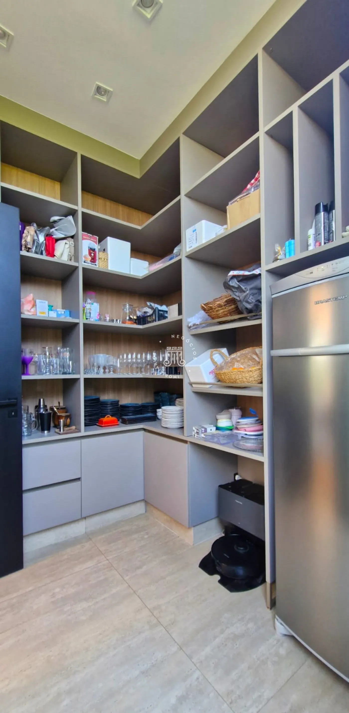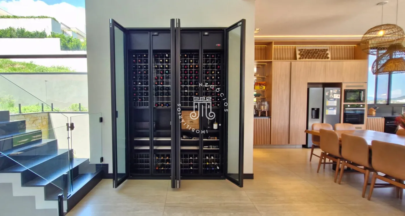 - cozinha gourmet totalmente equipada e planejada com ilha, despensa, churrasqueira e adega grande climatizada