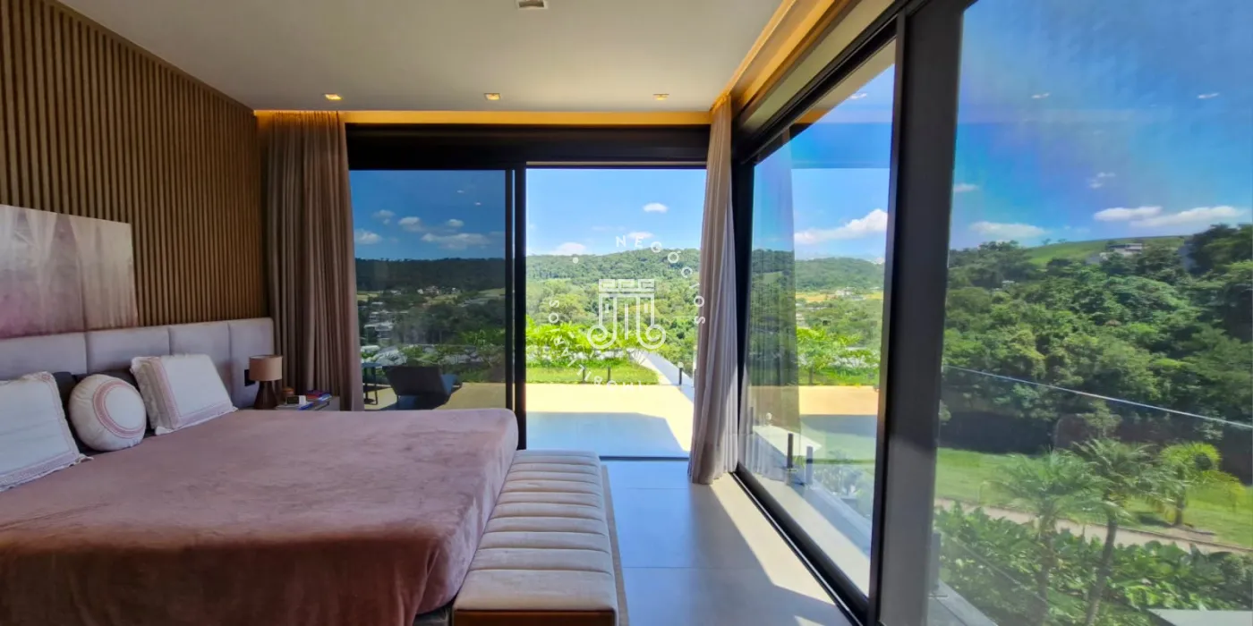 Casa á venda de esquina com vista privilegiada. Mobiliada e decorada em pacote porteira fechada / marcenaria completa / projeto luminotécnico completo / energia solar (painéis fotovoltaicos) / ar condicionado / aquecimento solar de água / piscina aquecida / persianas blackout automatizadas nos quartos / persianas rolô automatizadas pela casa / sistema de som embutido / automação / cinema com projetor e telão / pias da cozinha equipadas com trituradores / vista livre para a natureza e pôr do sol.