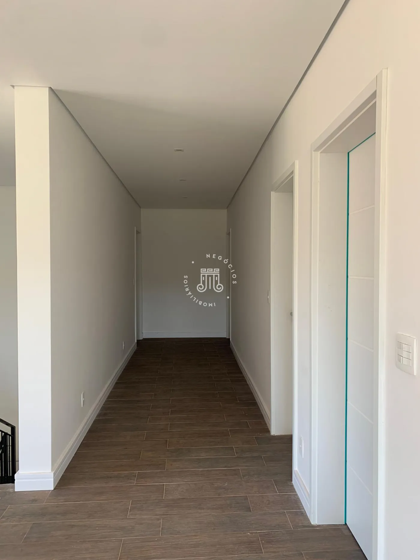 A casa com 609m² de construção, no pavimento inferior a casa conta com cozinha, espaço Gourmet (integrado com a cozinha e com a piscina), piscina, banheiro externo, suíte para hóspedes, sala de TV / Home Theater, sala de Estar com Lareira, sala de Jantar, despensa, lavanderia, banheiro de serviço e no pavimento superior, são 04 suítes com closet e varanda, sala íntima com varanda.