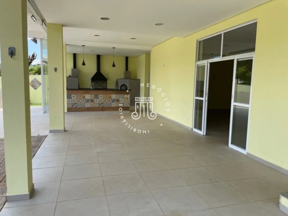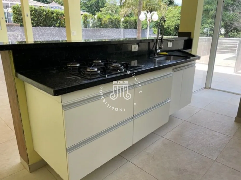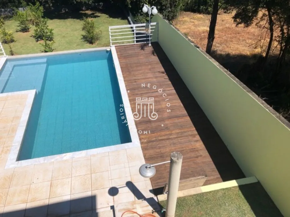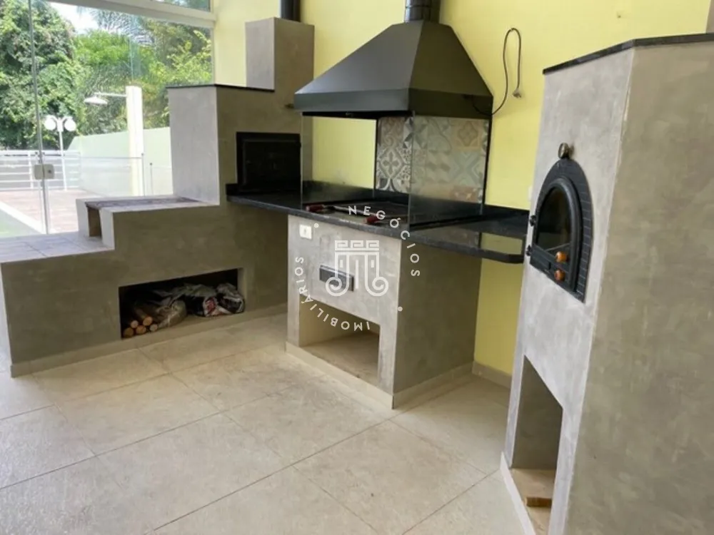Pavimento inferior: Área de serviço, salão de festas fechado, área gourmet ampla com churrasqueira, fogão a lenha e forno de pizza, Fogão a gás e armário, piscina em alvenaria com amplo deck em madeira, pomar e garagem coberta para 3 veículos e mais 10 veículos descoberta.