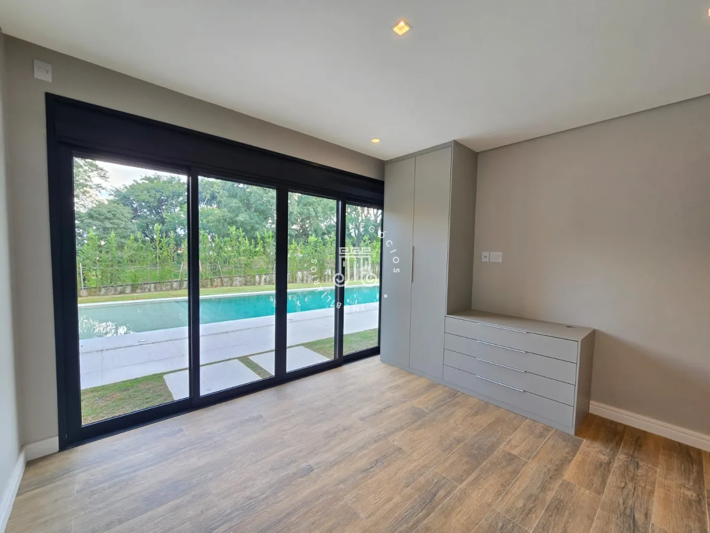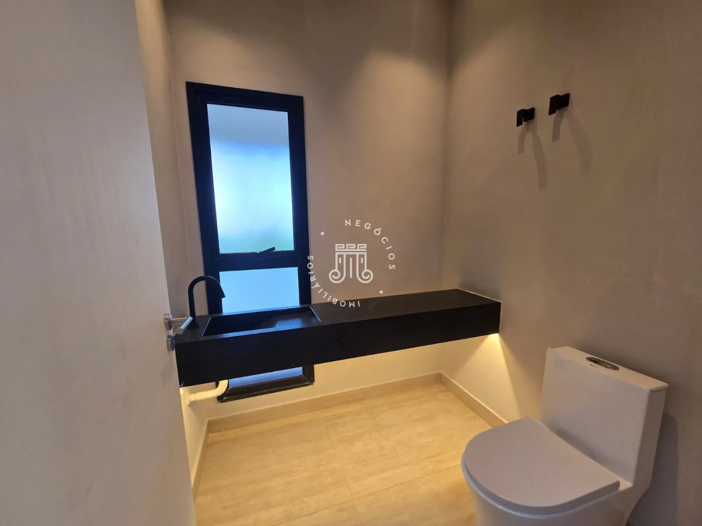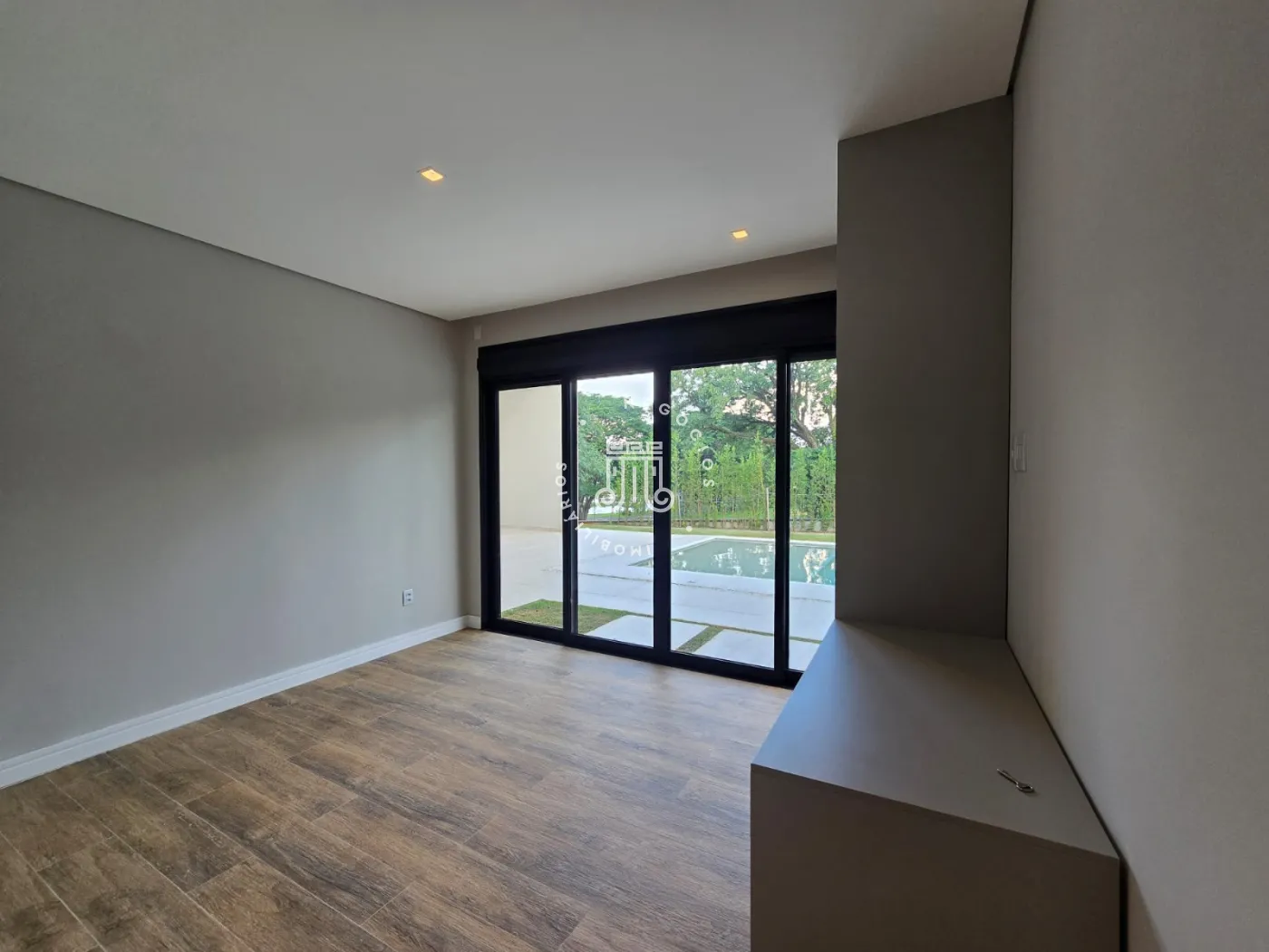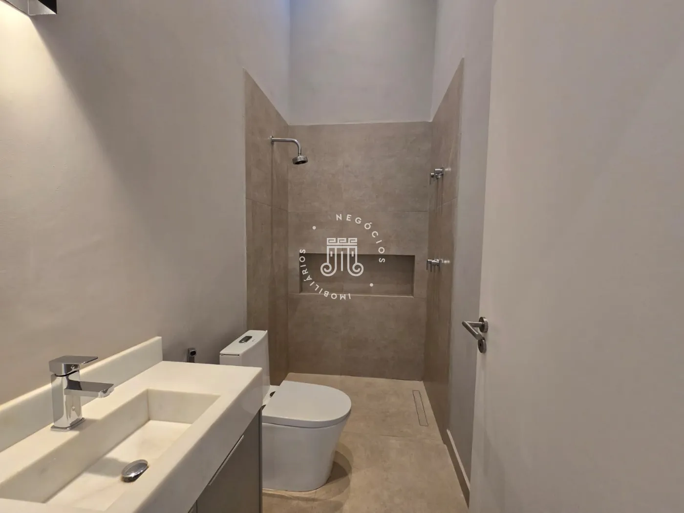 Um projeto moderno, funcional e acabamento de alto padrão. O imóvel conta com 5 suítes (sendo 1 master com banheira e closet), além de suíte para funcionário, totalizando 7 banheiros. Ambientes integrados e bem distribuídos, com sala de estar e jantar com pé-direito duplo, escritório, cozinha americana, jardim de inverno, lavanderia, despensa e depósito. Na área externa, destaque para a piscina de 4,5 x 15 metros, espaço gourmet integrado ao deck, ampla área gramada e pit fire, ideal para lazer e recepção. Infraestrutura completa com foco em eficiência: boiler com apoio elétrico e a gás, preparação para aquecimento solar (casa e piscina), pronta para energia fotovoltaica e iluminação 100% LED. Garagem coberta para 3 veículos.