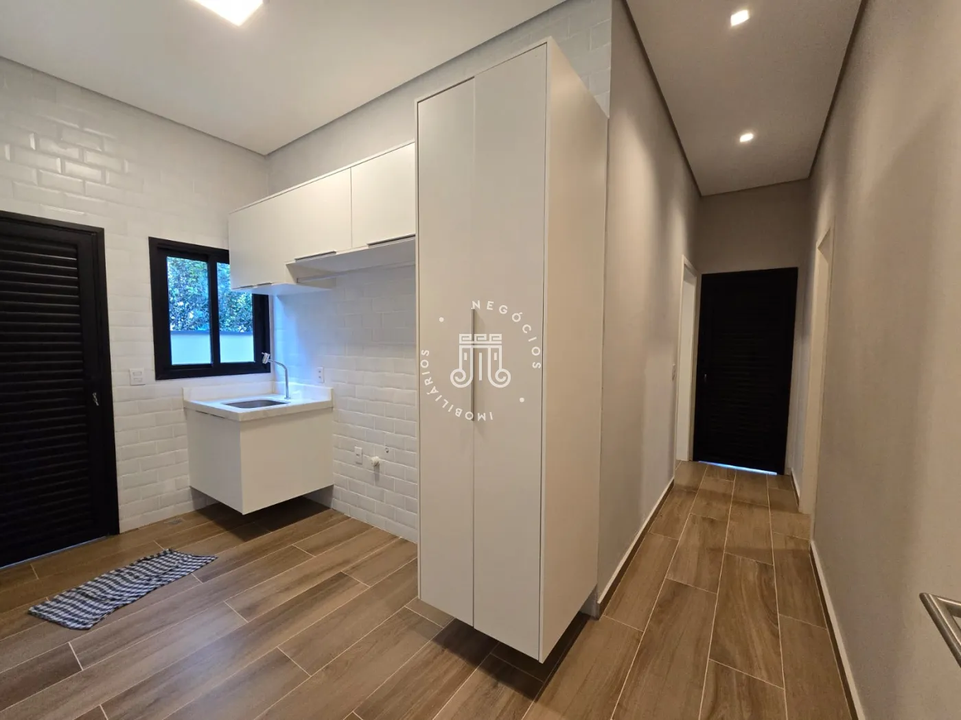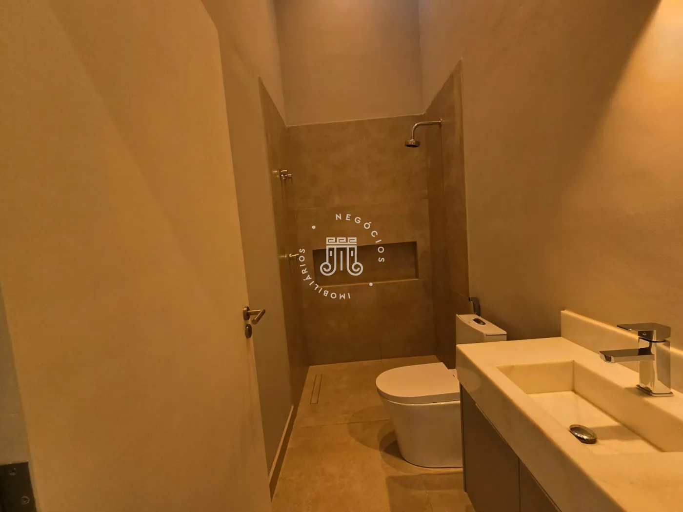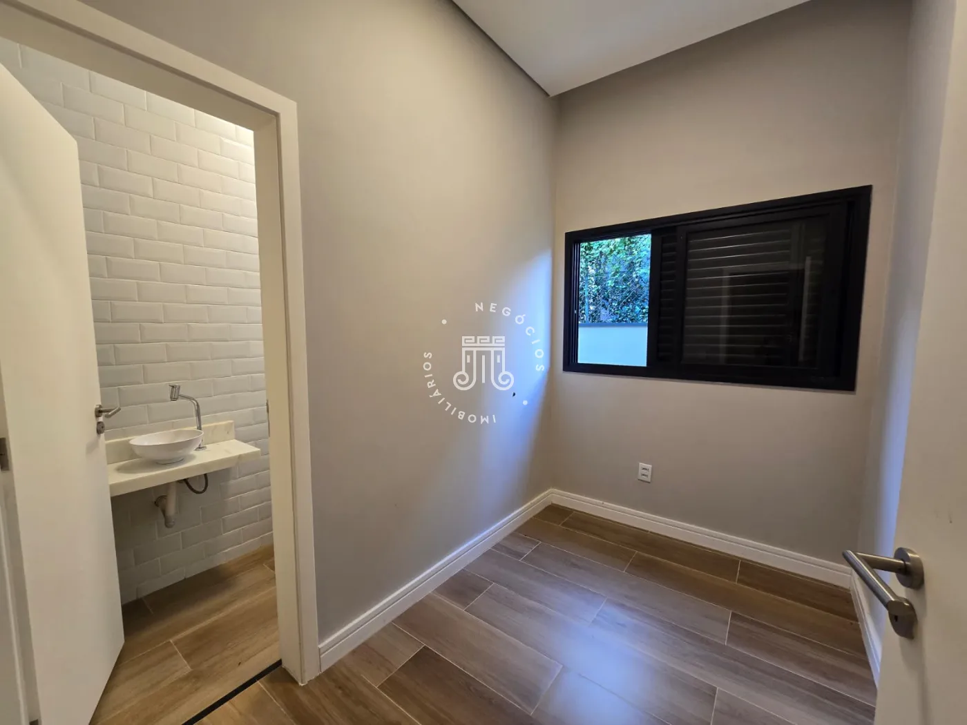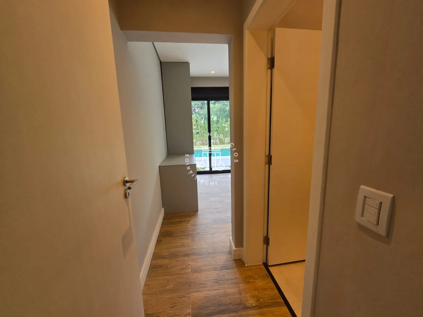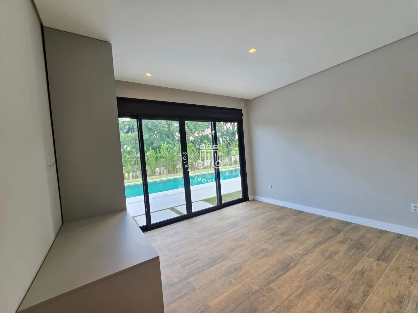 Um projeto moderno, funcional e acabamento de alto padrão. O imóvel conta com 5 suítes (sendo 1 master com banheira e closet), além de suíte para funcionário, totalizando 7 banheiros. Ambientes integrados e bem distribuídos, com sala de estar e jantar com pé-direito duplo, escritório, cozinha americana, jardim de inverno, lavanderia, despensa e depósito. Na área externa, destaque para a piscina de 4,5 x 15 metros, espaço gourmet integrado ao deck, ampla área gramada e pit fire, ideal para lazer e recepção. Infraestrutura completa com foco em eficiência: boiler com apoio elétrico e a gás, preparação para aquecimento solar (casa e piscina), pronta para energia fotovoltaica e iluminação 100% LED. Garagem coberta para 3 veículos.