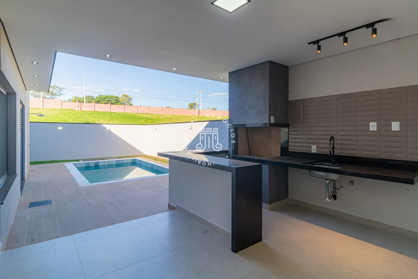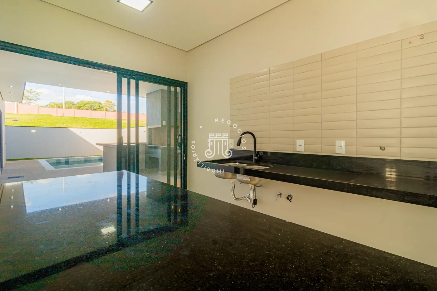 O imóvel possui: 03 dormitórios sendo 1 suíte master com closet, sala de estar ampla, com pé direito duplo, proporcionando um ambiente arejado, cozinha moderna e planejada, com despensa . Preparação para painel solar, ar condicionado, janelas com controle remoto e porta digital. Área de Lazer: Gourmet e piscina privativa