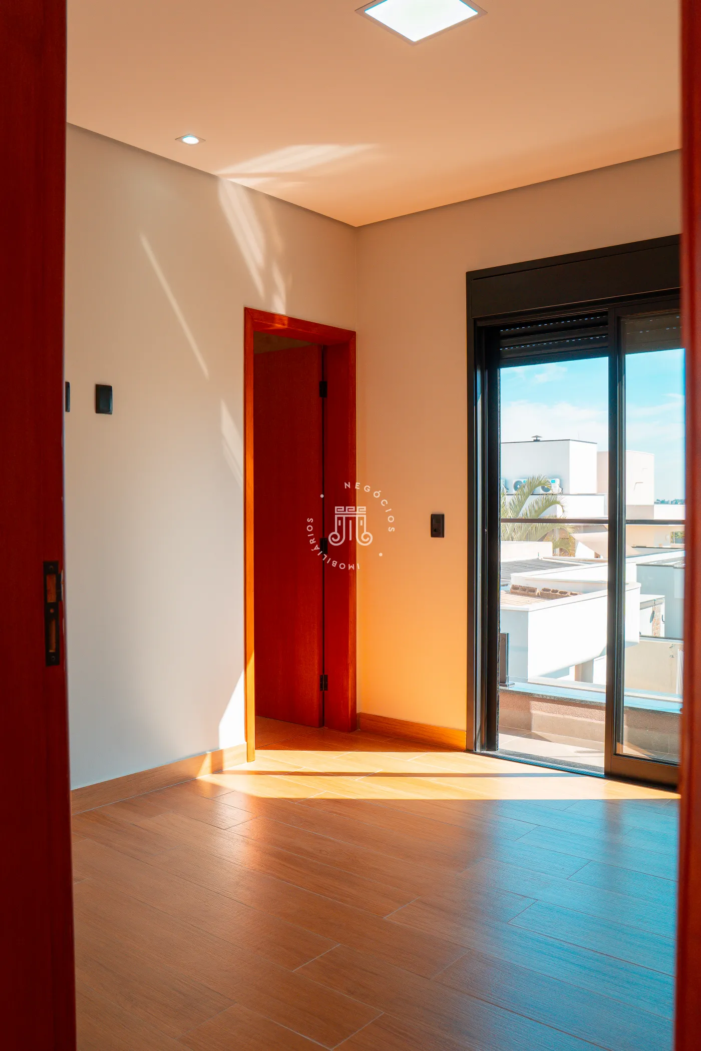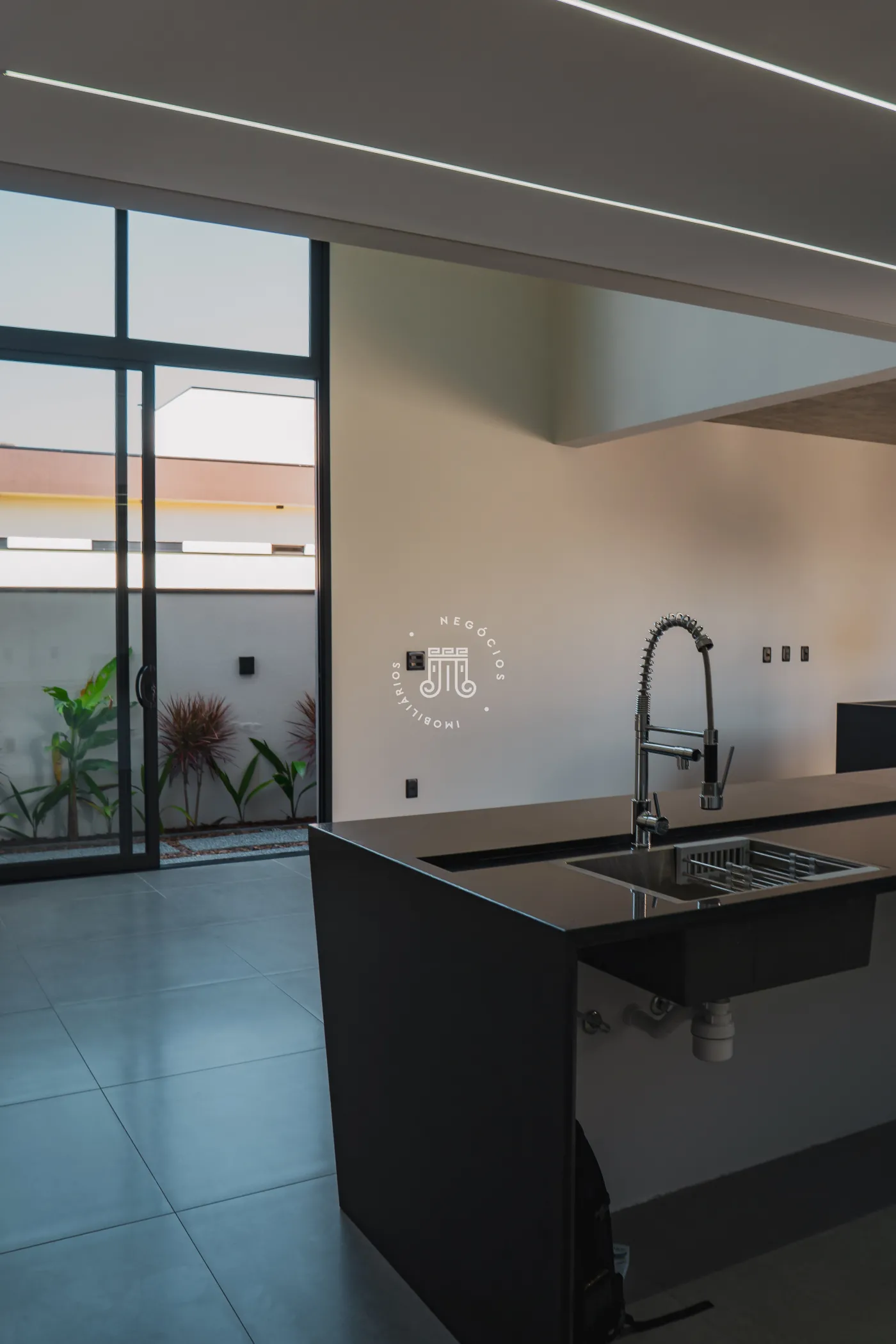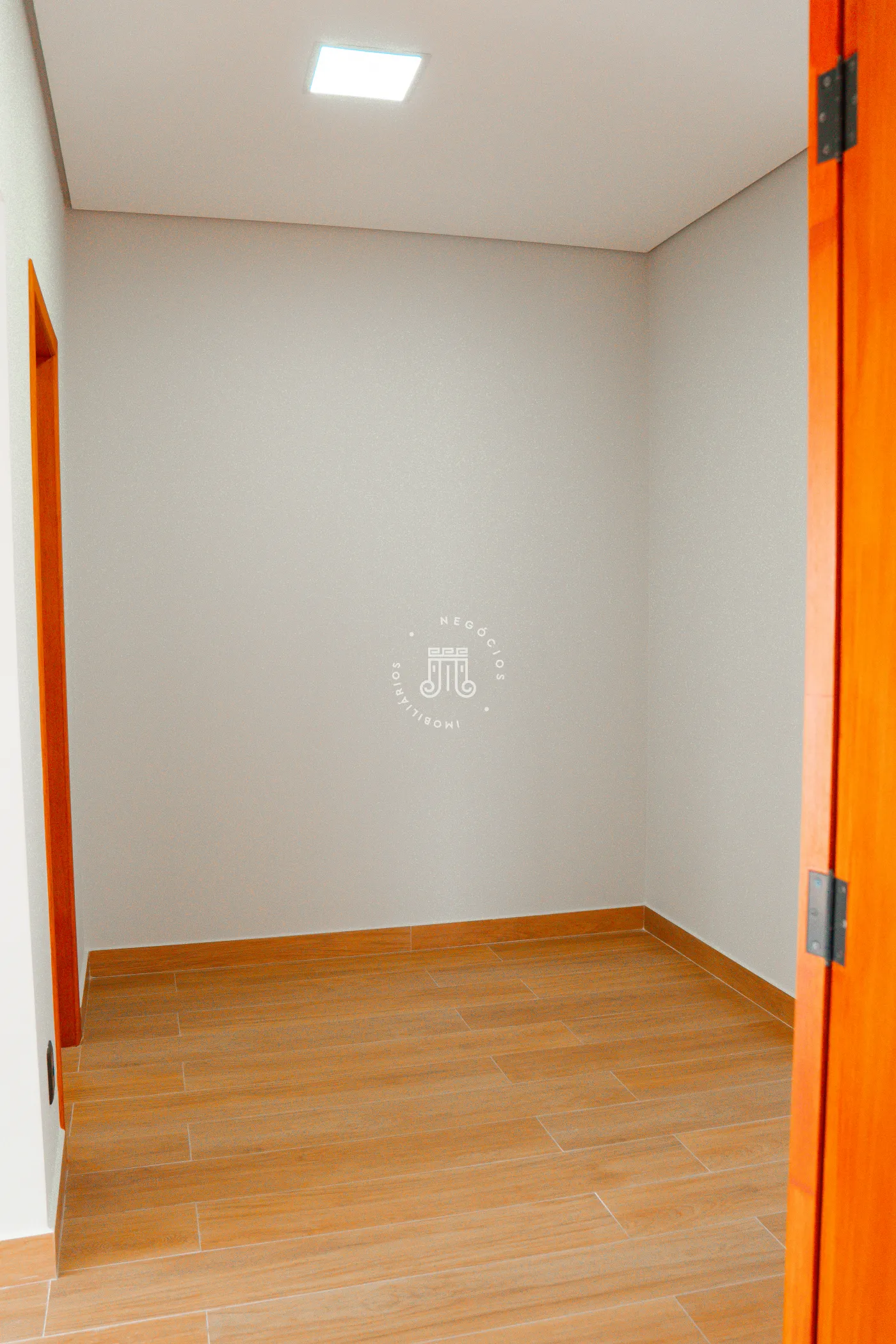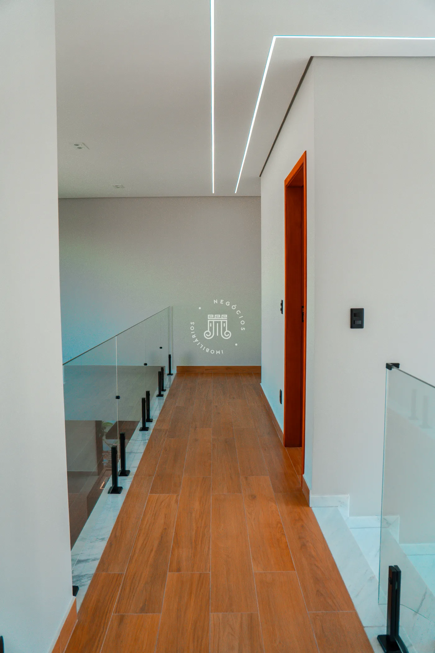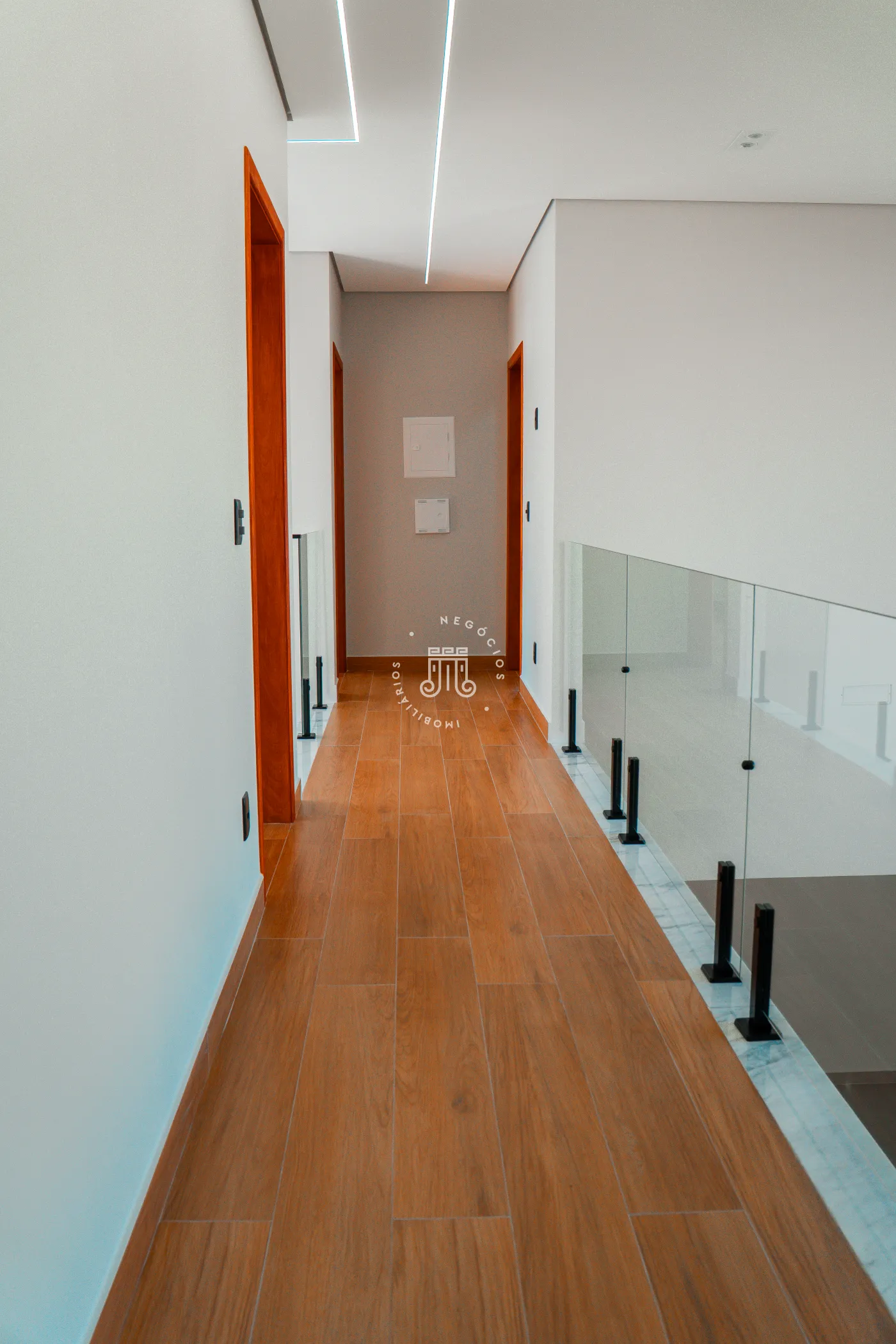 O imóvel trata-se de um sobrado com área construída de 232 metros quadrados. A estrutura é dividida em dois pavimentos. No piso superior, há três suítes, sendo uma delas equipada com closet.
