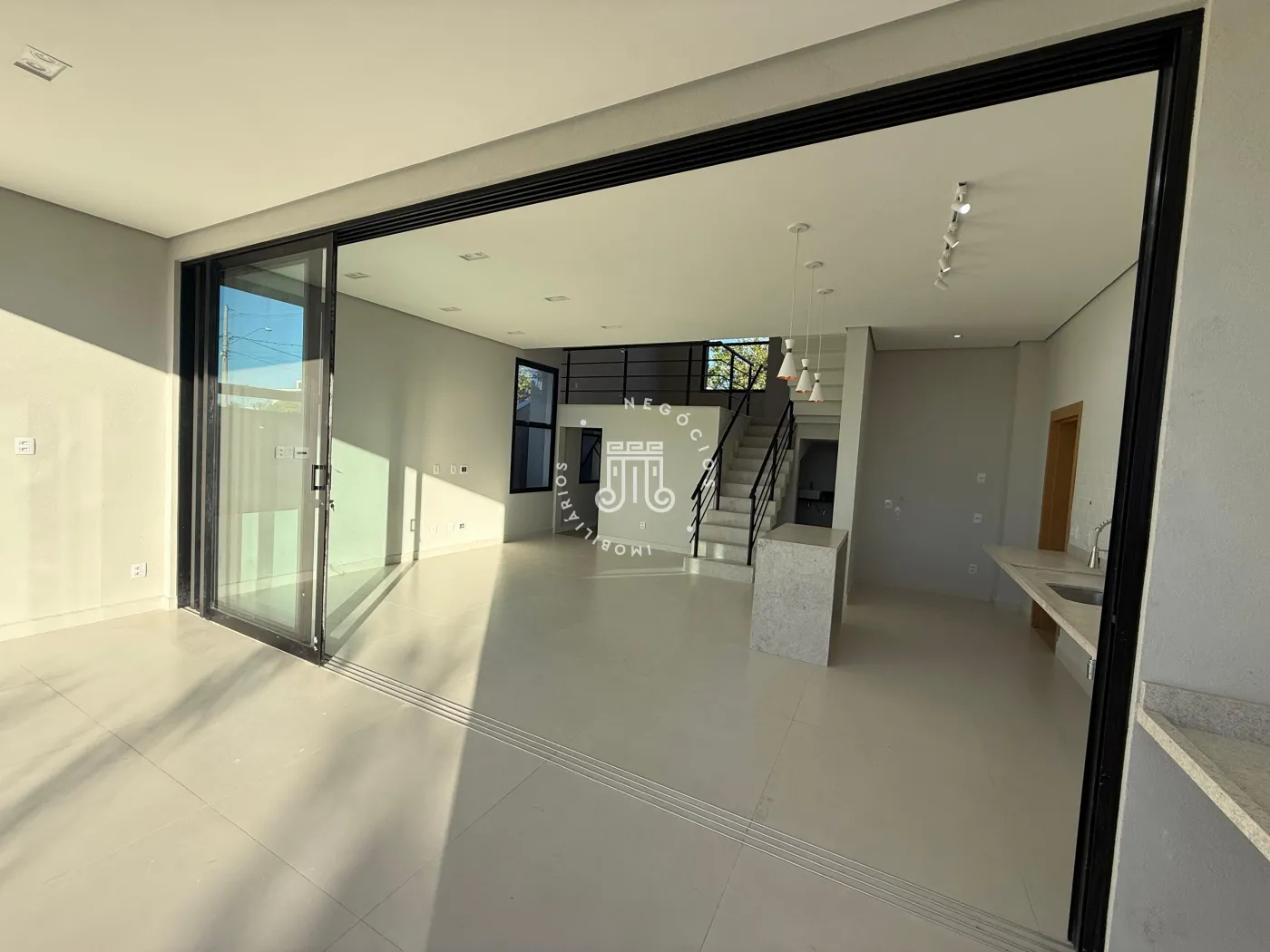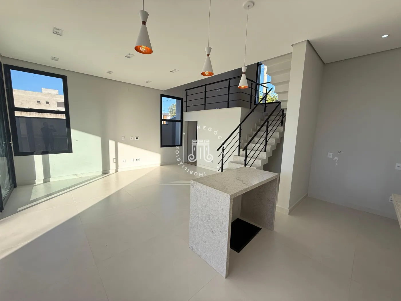 O imóvel possui 03 suítes, sala com dois ambientes e pé direito duplo, cozinha, 01 banheiro social, 01 lavabo, lavanderia e garagem para 04 veículos (02 cobertas e 02 descobertas).