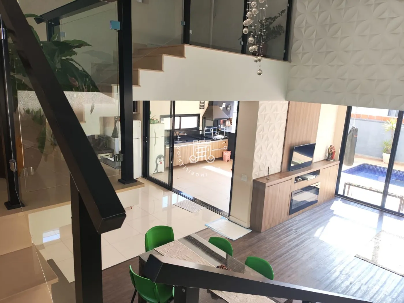 Com 234,80m² de área construída, conta com 4 dormitórios, sendo 2 deles suíte, banheiro social, piso inferior com sala de estar sala de jantar com pé direito duplo, lavabo, jardim de inverno, cozinha com ilha, cooktop forno e microondas embutidos, área gourmet integrada com churrasqueira balcão, área de serviço coberta, piscina e jardim.