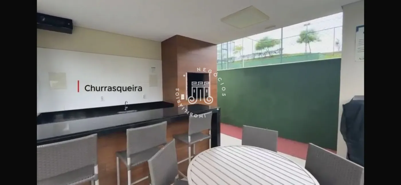 Lazer completo, quadra, campo com grama, salão festas, piscina, playground, pista caminhada, churrasqueira, academia.
