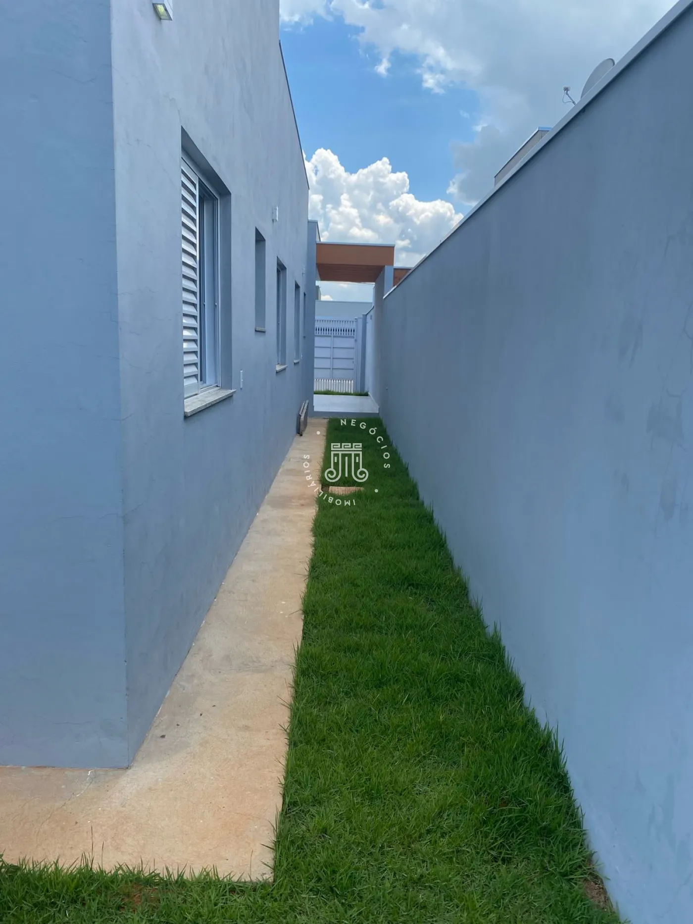 Composto por 3 quartos, sendo 1 suíte, banheiro social , sala ampla integrada com cozinha, quintal, lavanderia e garagem para 2 vagas com portão-eletrônico.