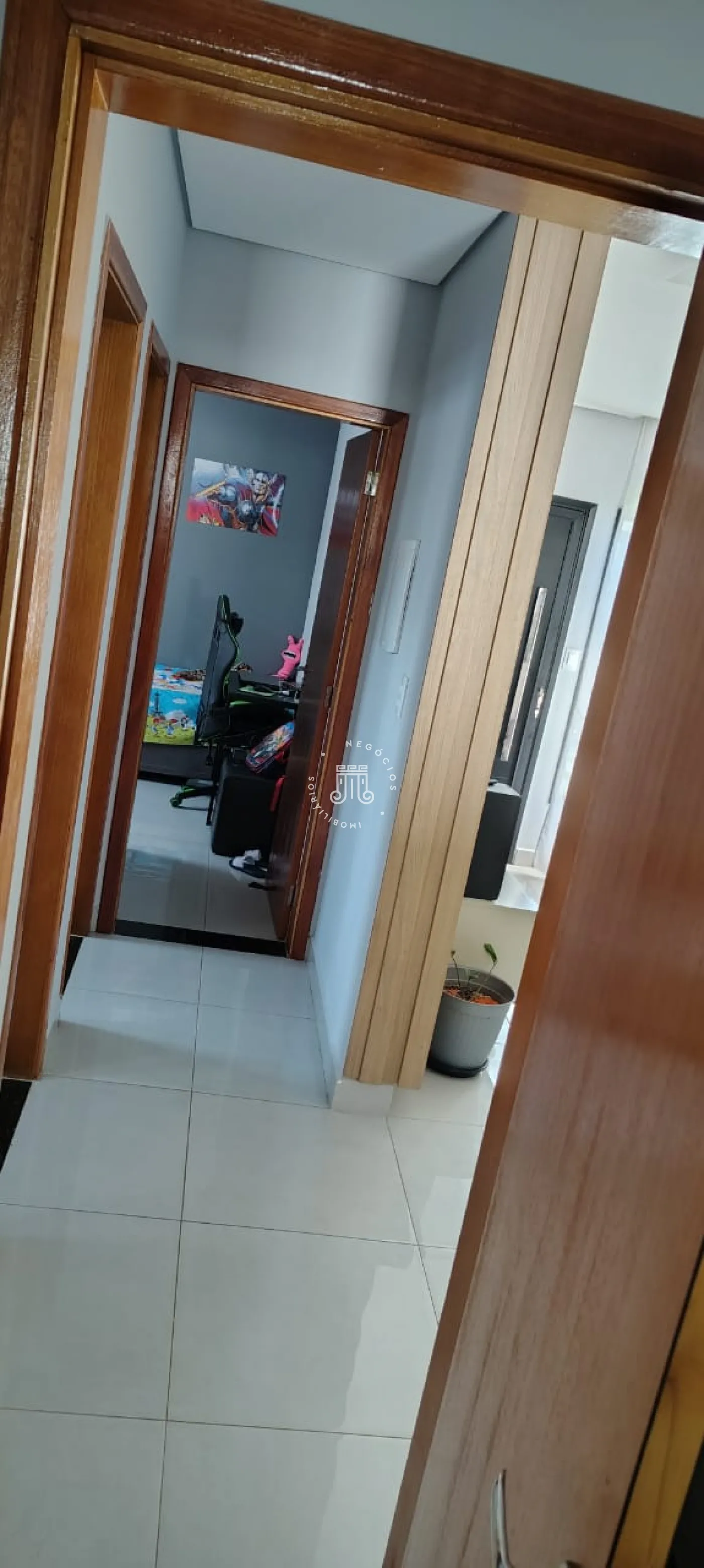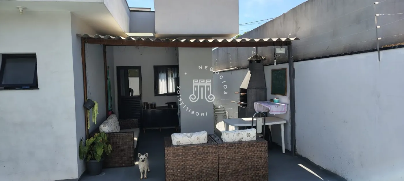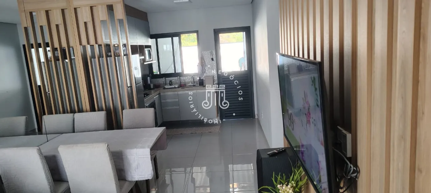 Casa com 3 dormitórios, sendo 1 suíte, e sala integrada.