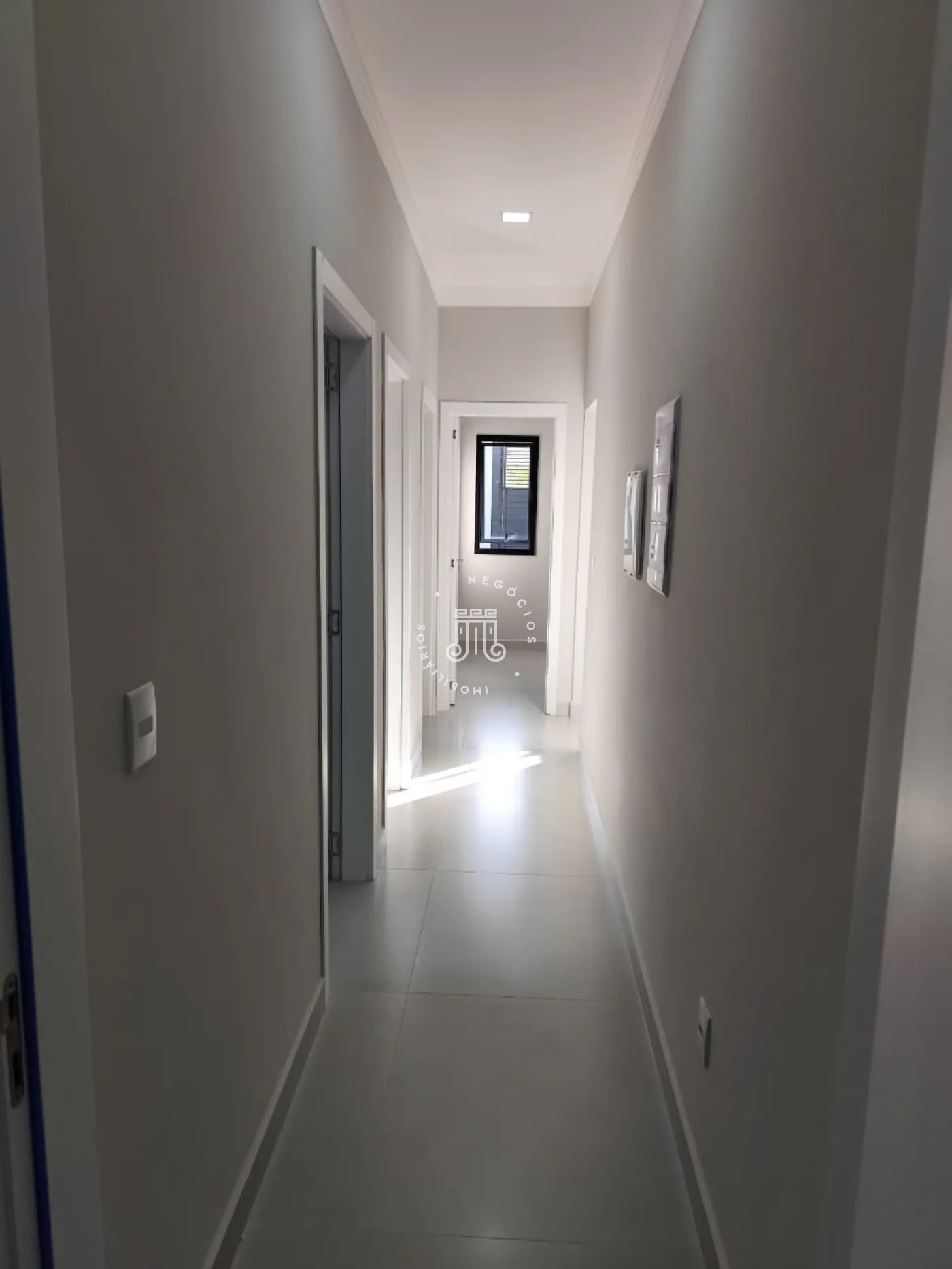 Casa nova, recém-construída, com ambientes integrados de sala de estar com pé-direito alto, sala de jantar e cozinha, proporcionando amplitude e modernidade; possui 3 dormitórios, sendo 1 suíte, além de banheiro social e escritório, lavanderia coberta e área com churrasqueira, 2 vagas de garagem, acabamento com iluminação em LED, esquadrias em alumínio preto e jardim gramado, contando ainda com portão basculante automático, cerca elétrica, fechadura eletrônica e infraestrutura para ar-condicionado nos dormitórios.