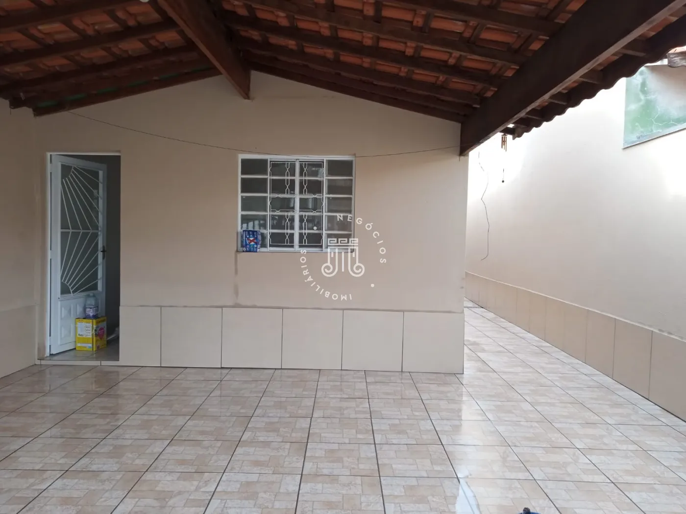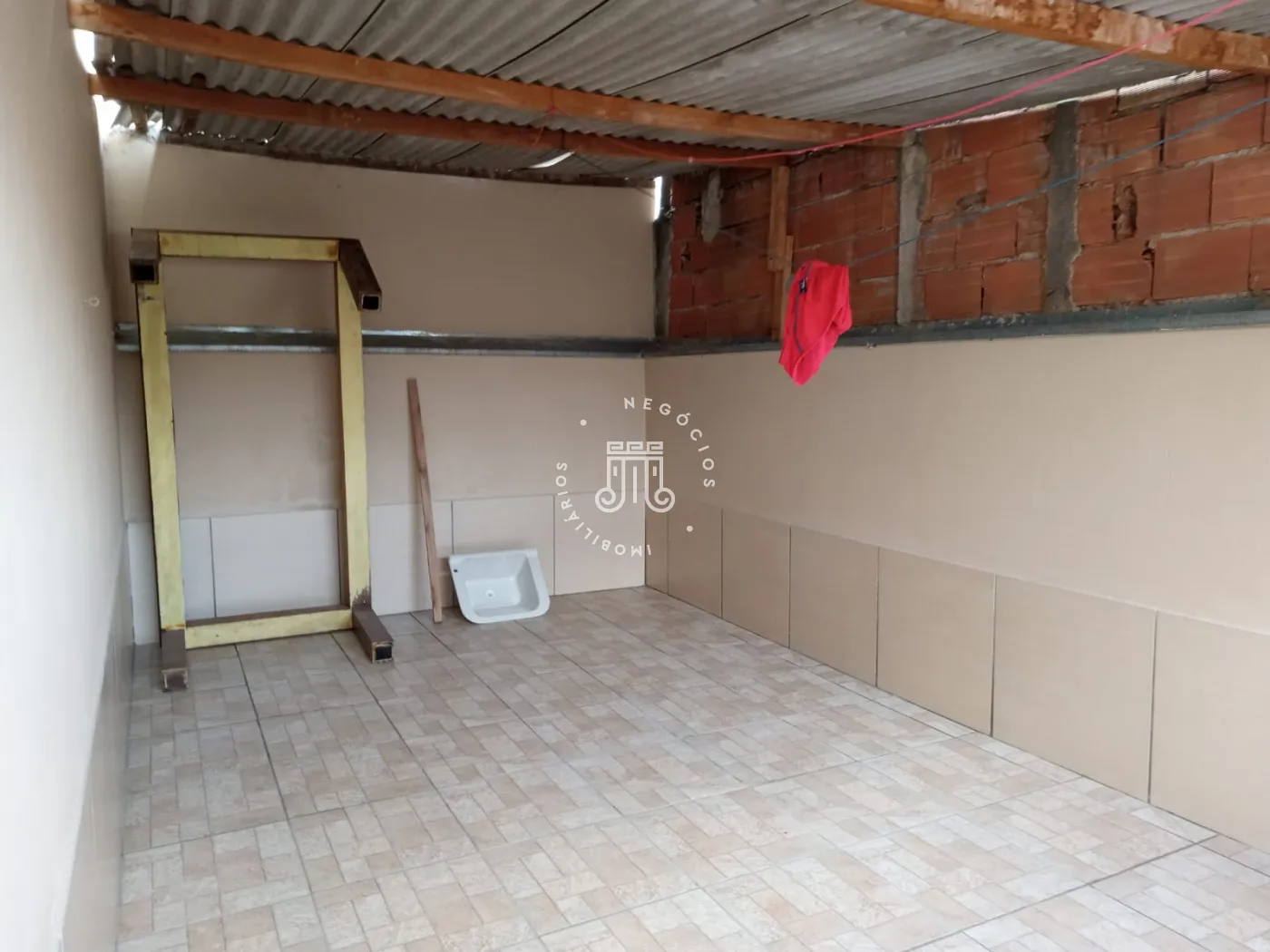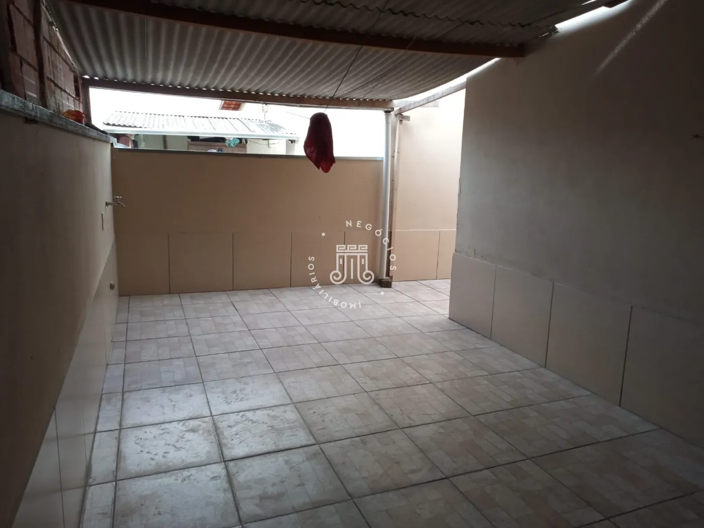 Com 2 quartos, sala, cozinha americana, banheiro social , quintal, área de serviço e 2 vagas de garagem cobertas.
