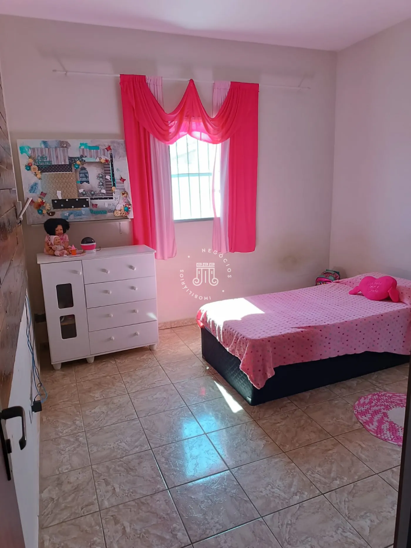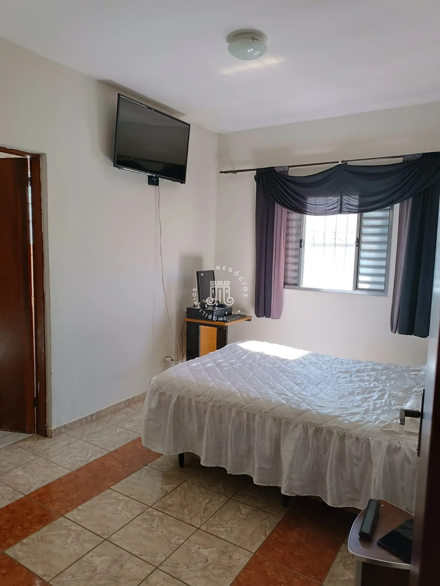 O imóvel oferece 3 dormitórios, sendo 1 suíte com closet, além de 2 banheiros. Conta com uma sala de estar ampla, cozinha bem iluminada, área de serviço funcional, vaga coberta para 2 carros e corredor lateral que garante boa ventilação e circulação na casa.