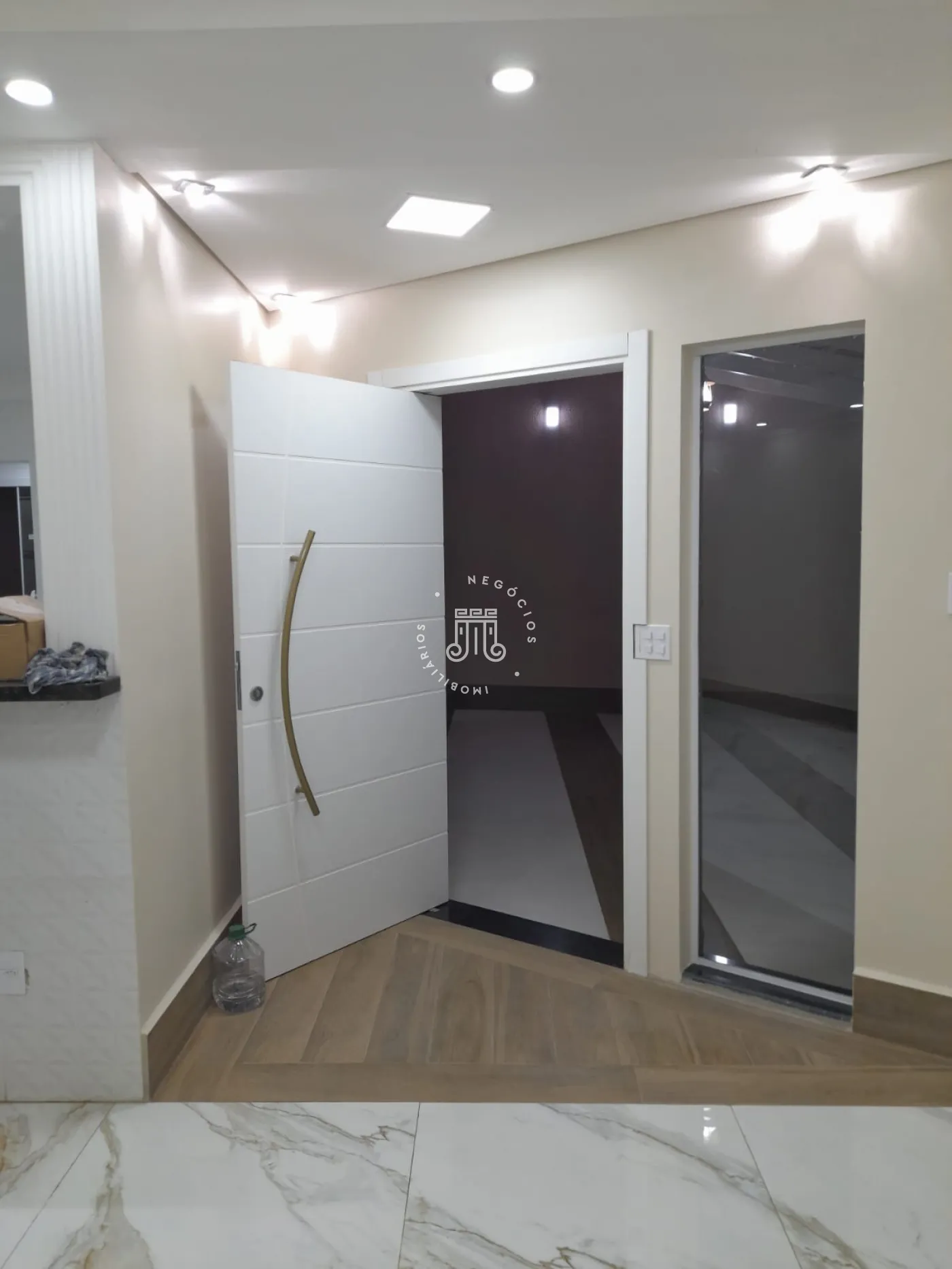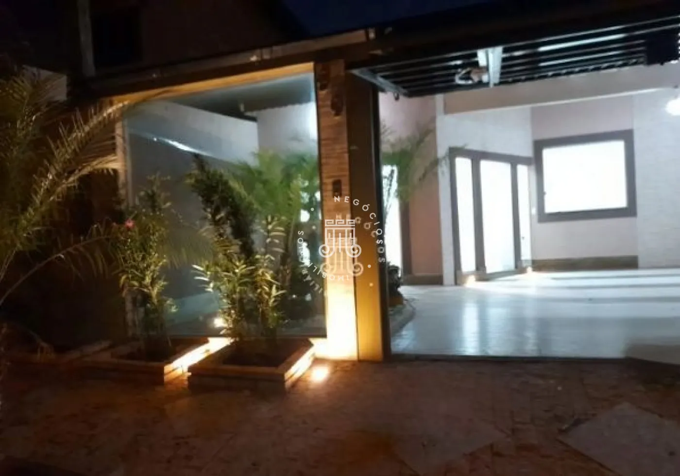 Terreno com 250 m², sendo 177 m² de área construída. Acabamento requintado,e paisagismo no jardim com um chafariz, piso porcelanato, fachada de vidro com iluminação, espaço Gourmet com churrasqueira.
