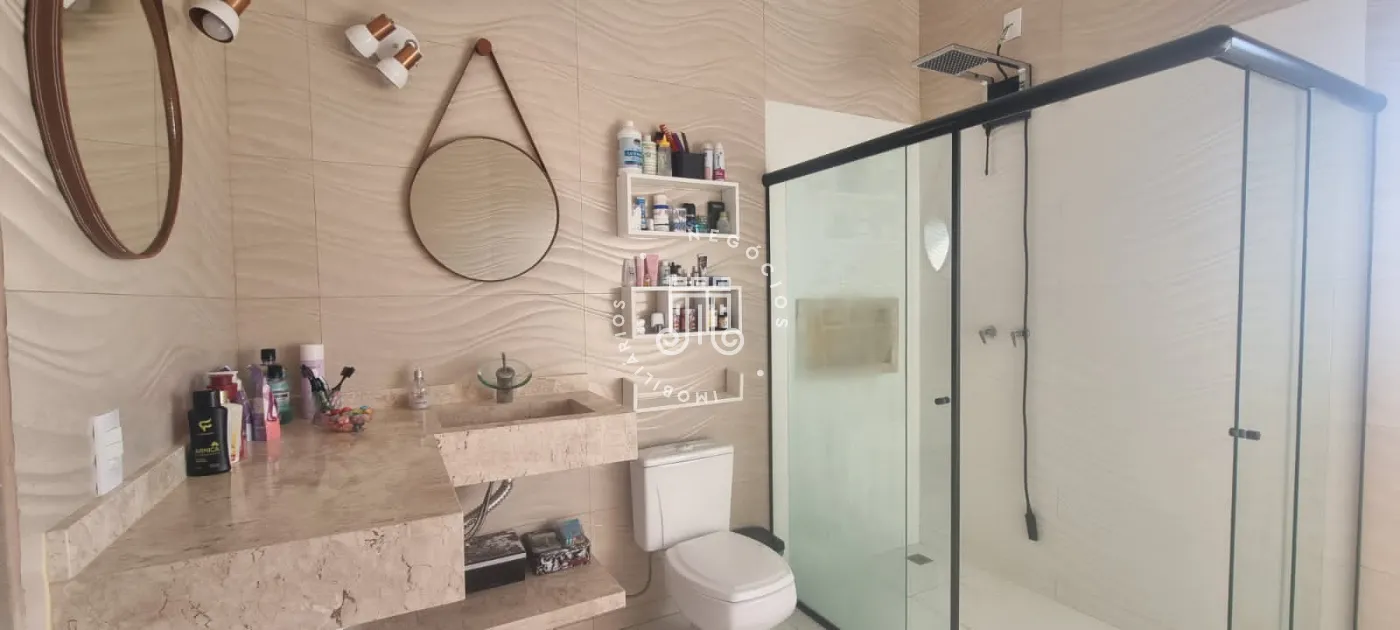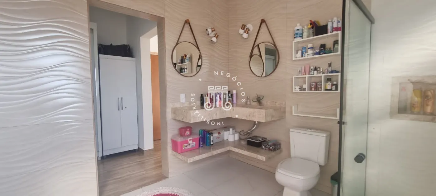 Imóvel conta com: 04 dormitórios sendo 1 suíte e 1 suíte master com espaço para banheira, possui 01 lavabo, 05 banheiros, área externa com churrasqueira e piscina com banheiro, além de escritório e vaga para 4 carros ideal para quem busca conforto e espaço em um só lugar.