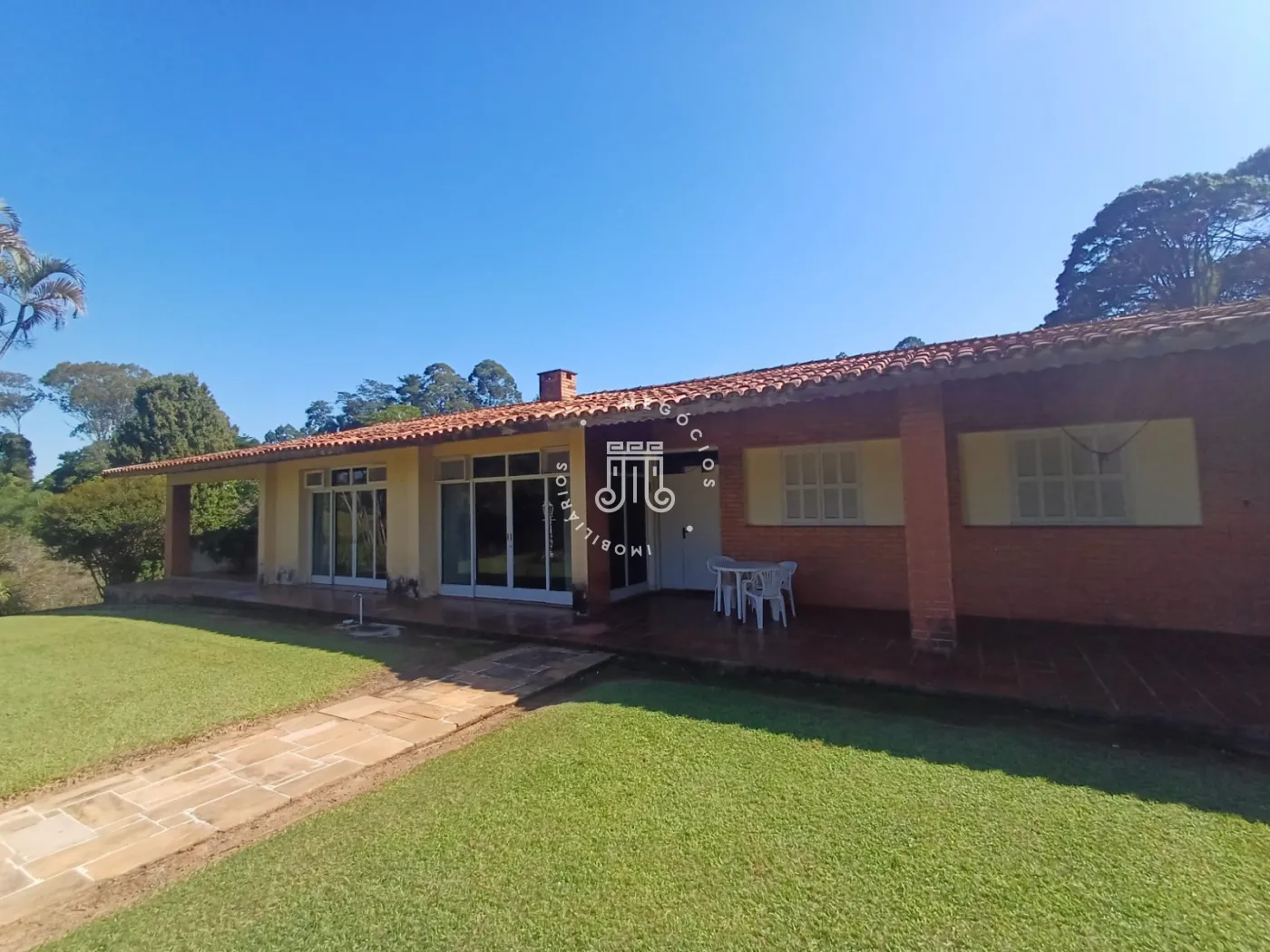 A casa principal é ampla, avarandada em todo o seu entorno e conta com quatro dormitórios, sendo um deles uma suíte. Dispõe ainda de sala com dois ambientes, escritório, cozinha funcional, área de serviço e uma agradável área com churrasqueira, perfeita para momentos de confraternização em família ou com amigos.