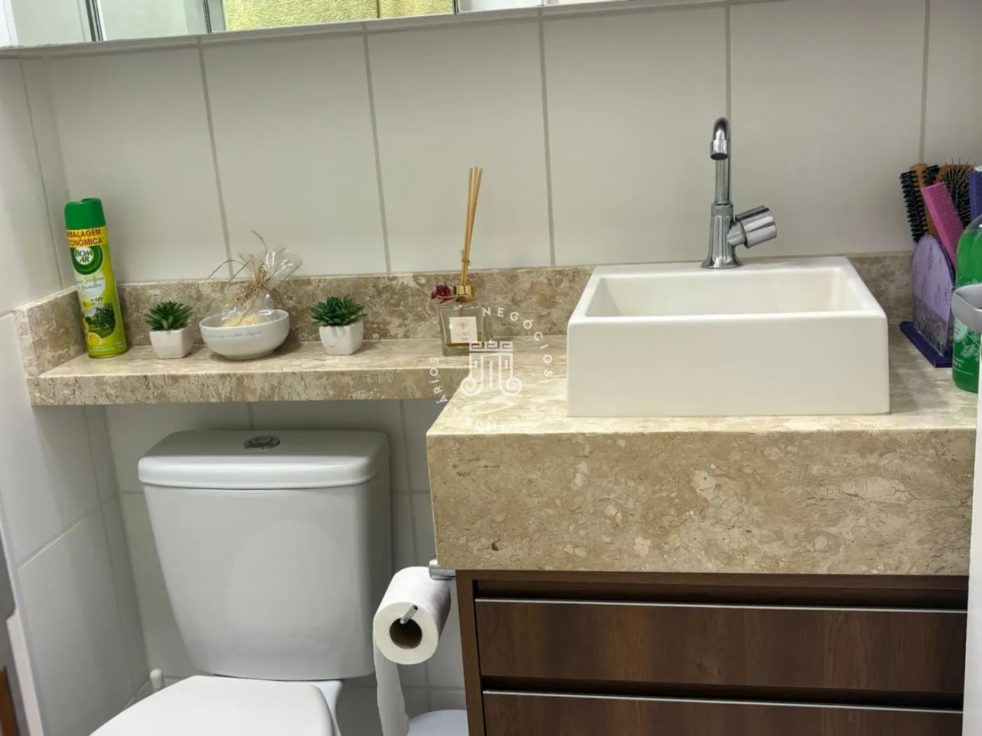 O condomínio oferece piscina, playground, mini mercado, salão de festas e 2 churrasqueiras, proporcionando lazer e praticidade no dia a dia.