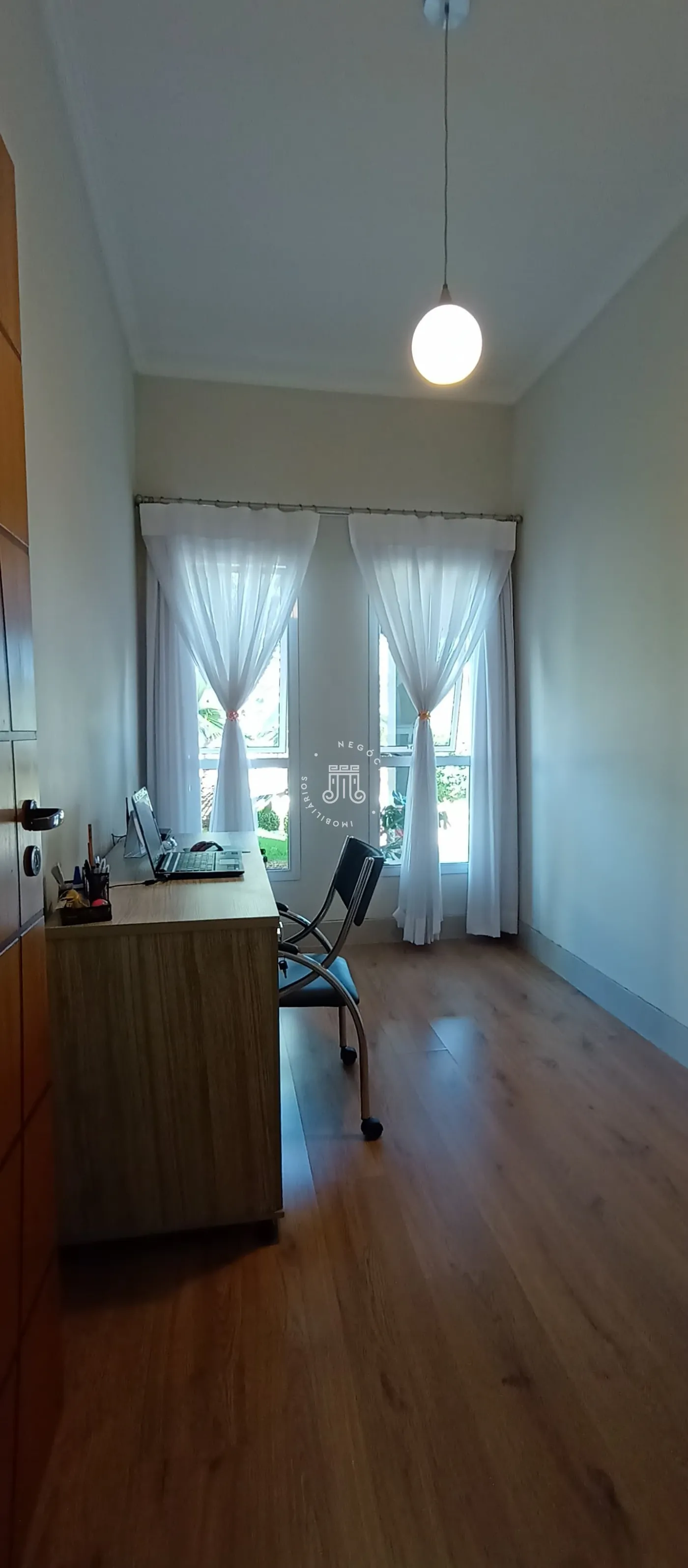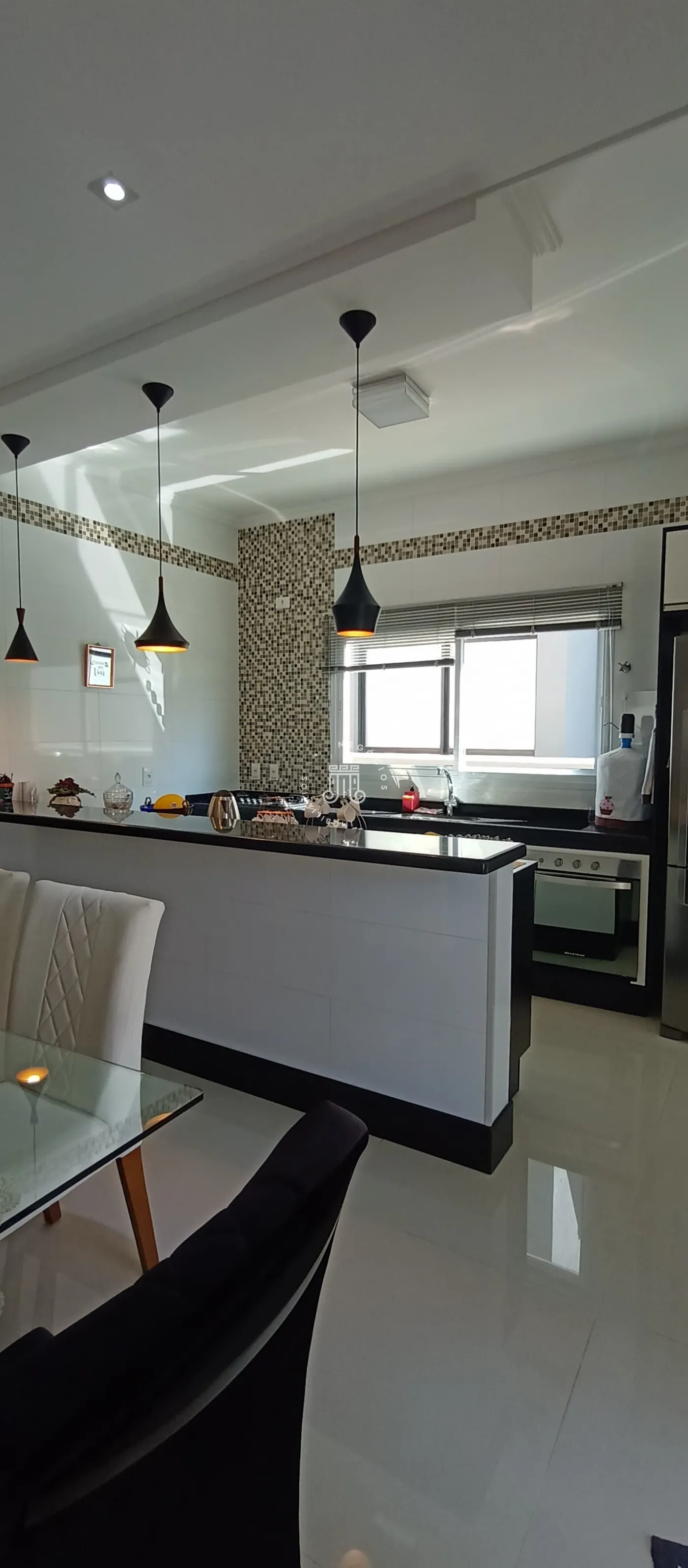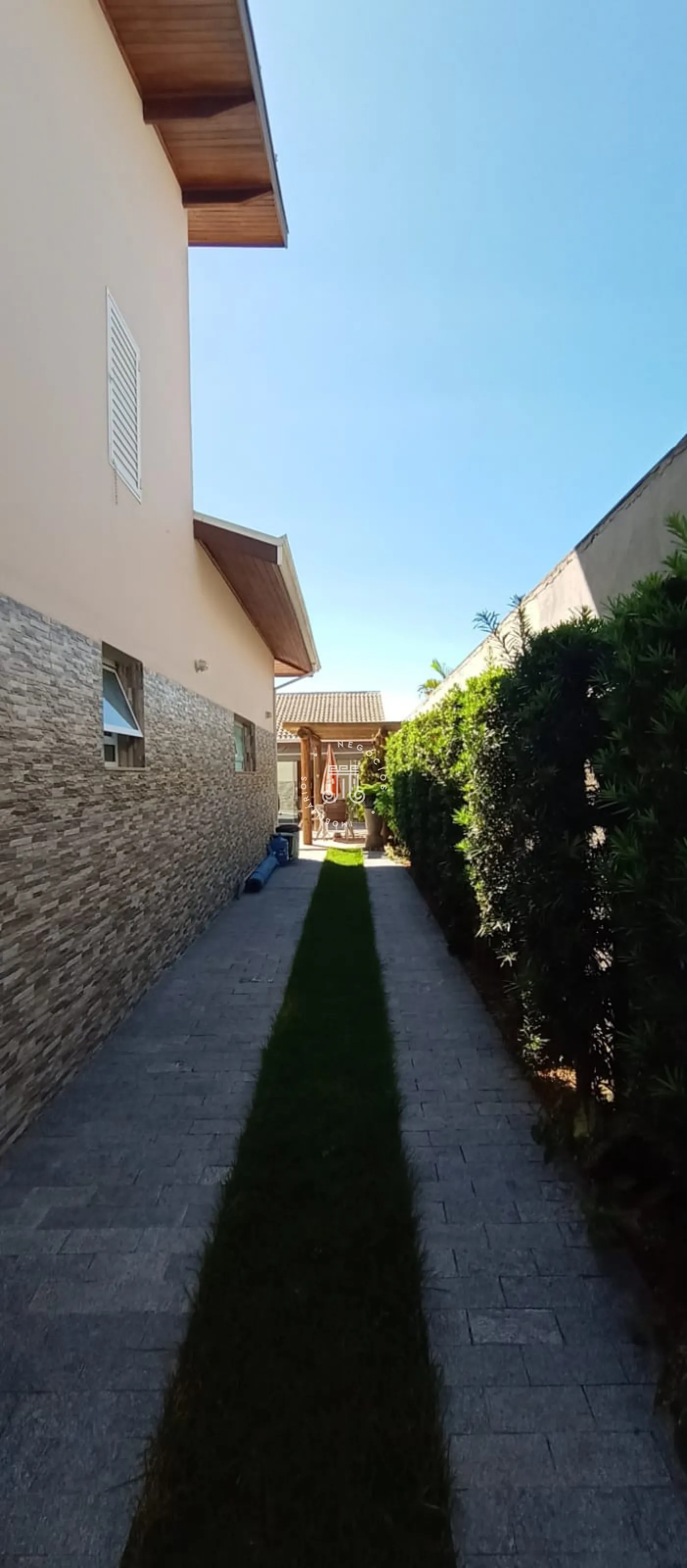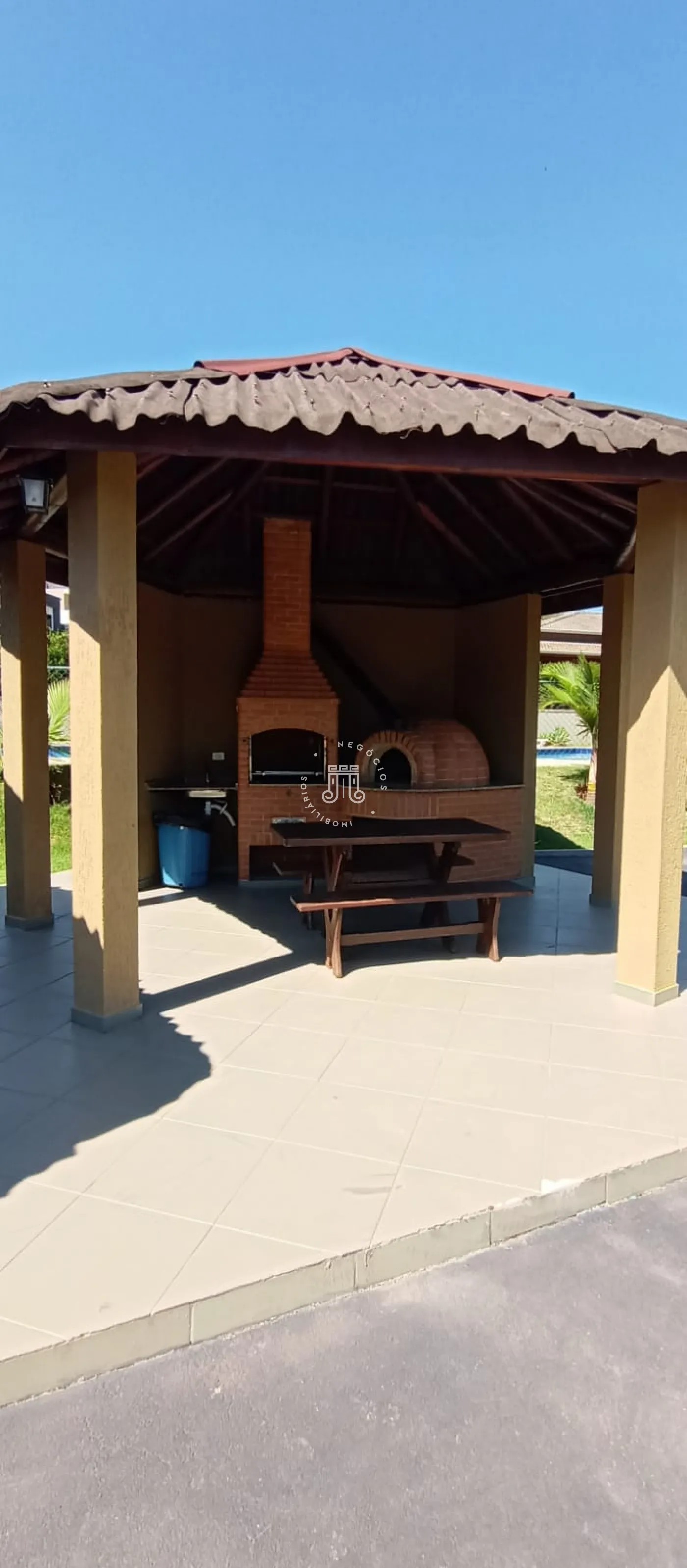Na parte externa possui uma ótima área gourmet coberta com fechamento de vidro, churrasqueira, banheiro, e ainda uma piscina.