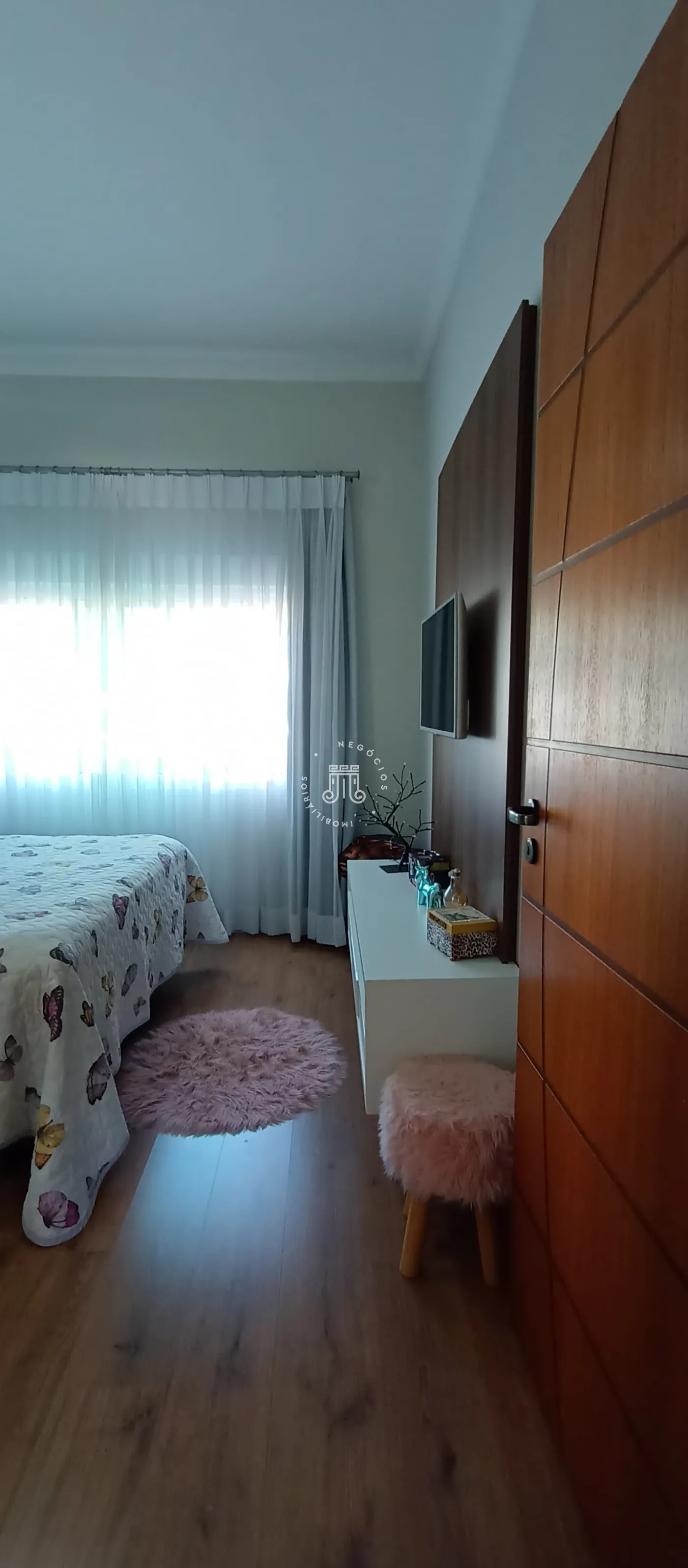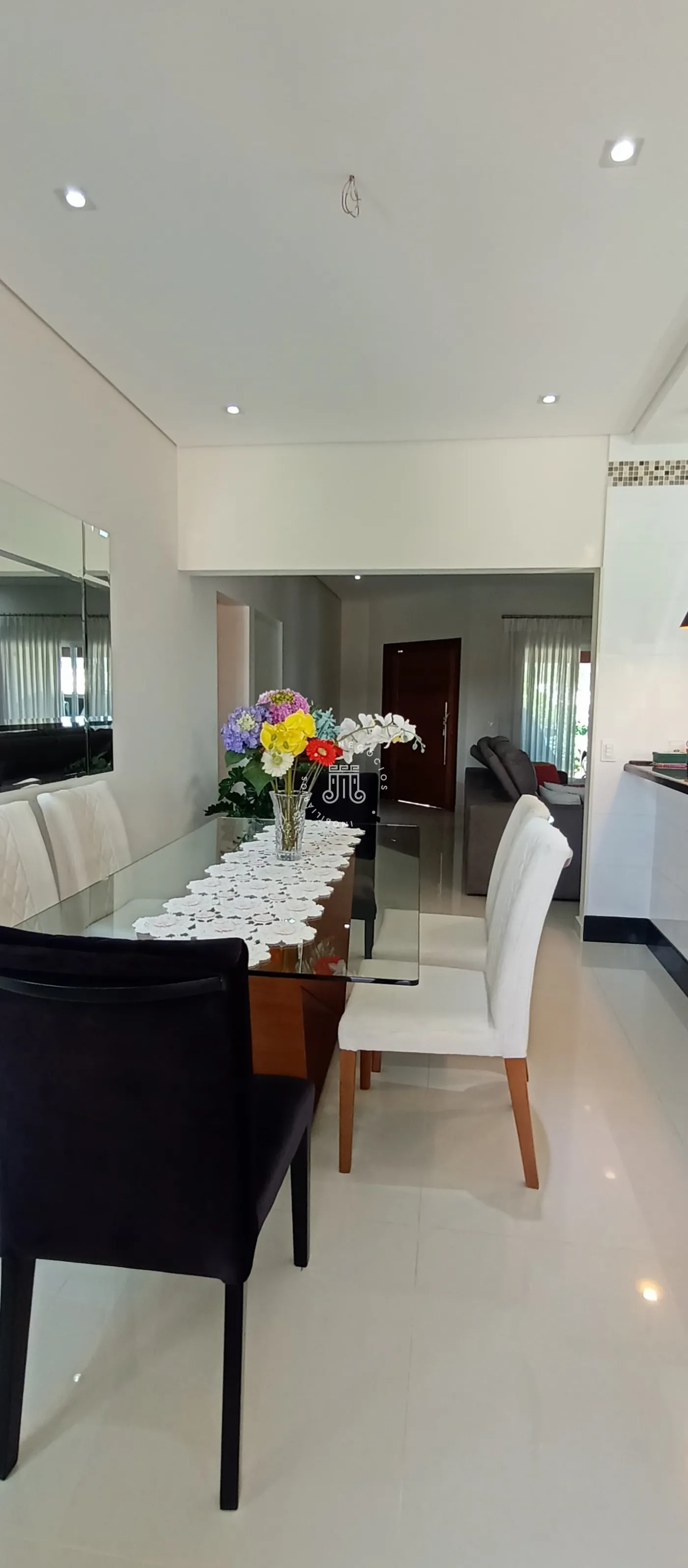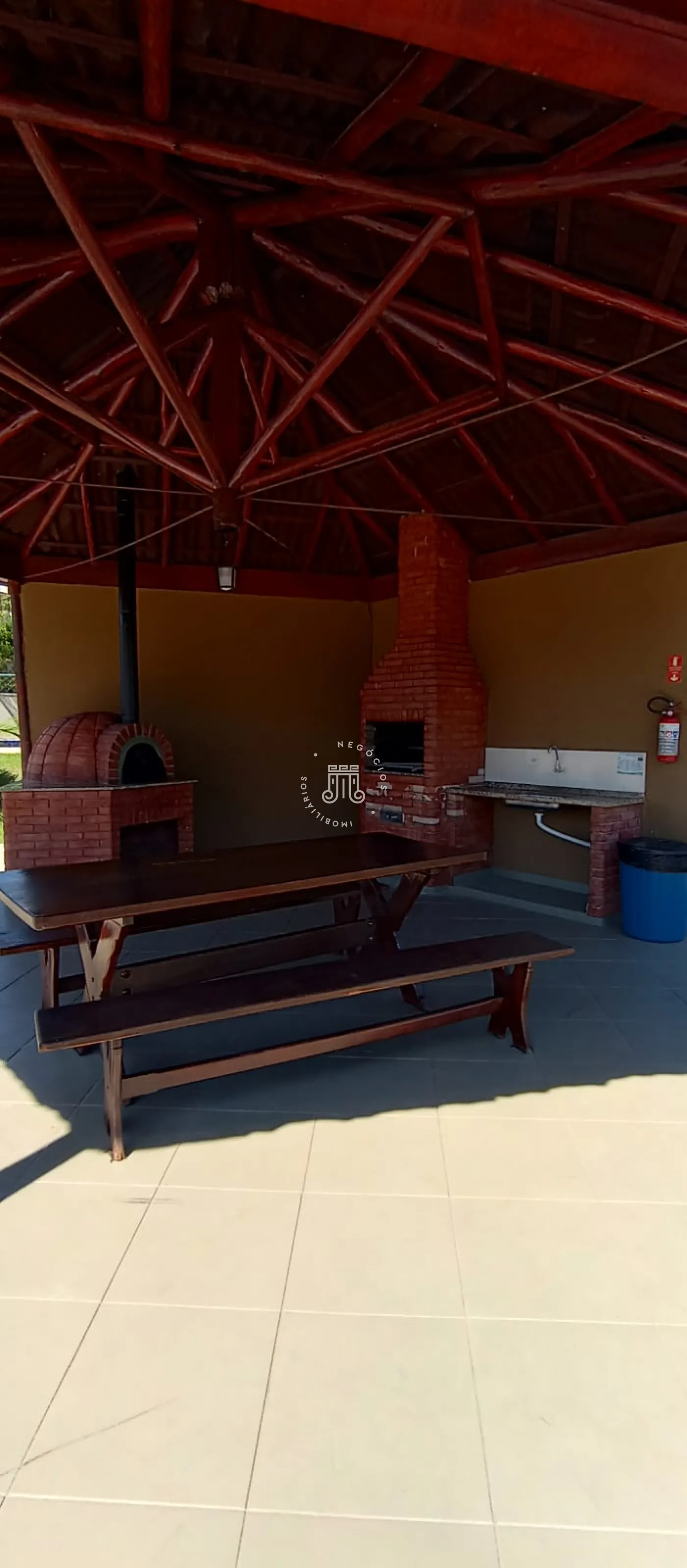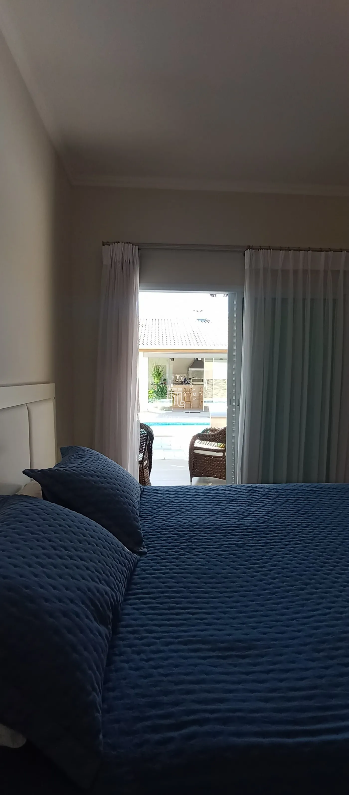 Na parte externa possui uma ótima área gourmet coberta com fechamento de vidro, churrasqueira, banheiro, e ainda uma piscina.