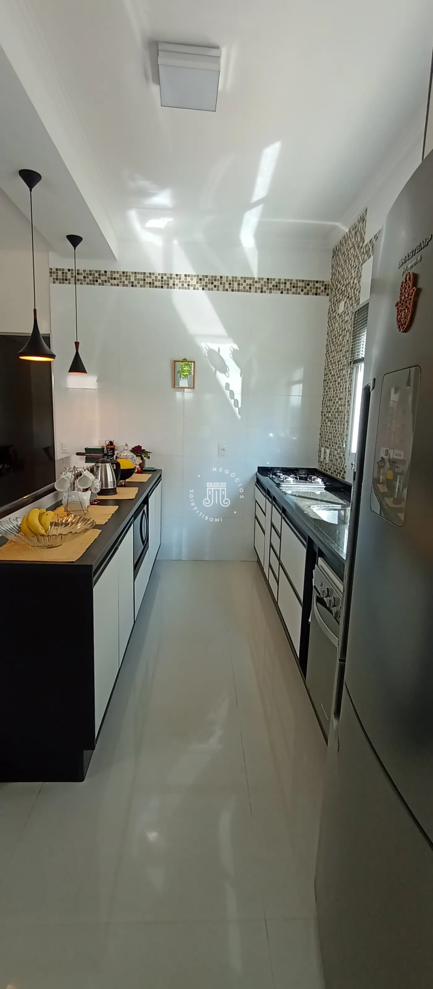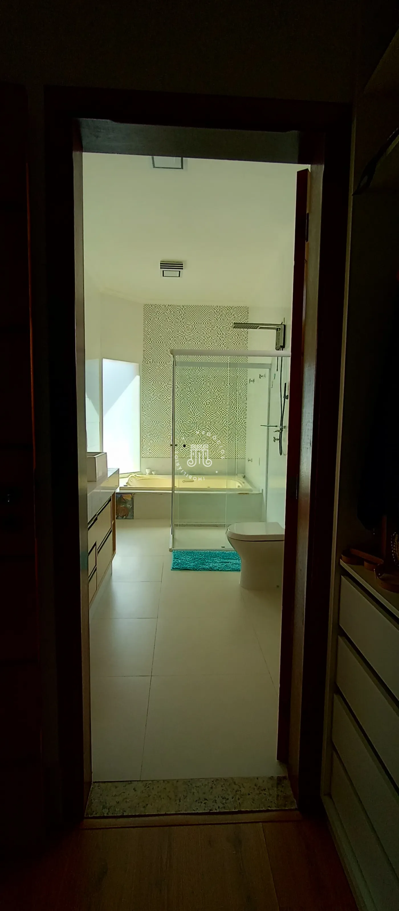 Composta por 03 dormitórios, incluindo 02 suítes, sendo uma suíte master, completa com closet, banheira de hidromassagem, e uma varanda com vista para a piscina. Sala de estar/TV com ar-condicionado, sala de jantar integrada com a cozinha equipada com armários. Área de serviço espaçosa coberta com armários e lavabo.