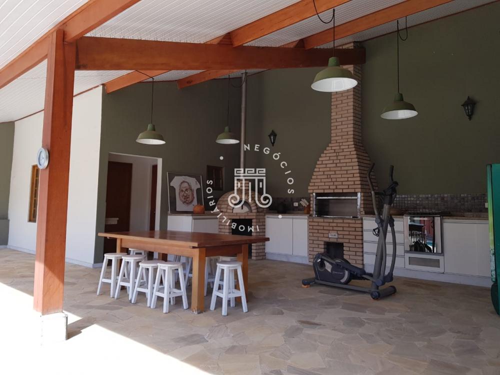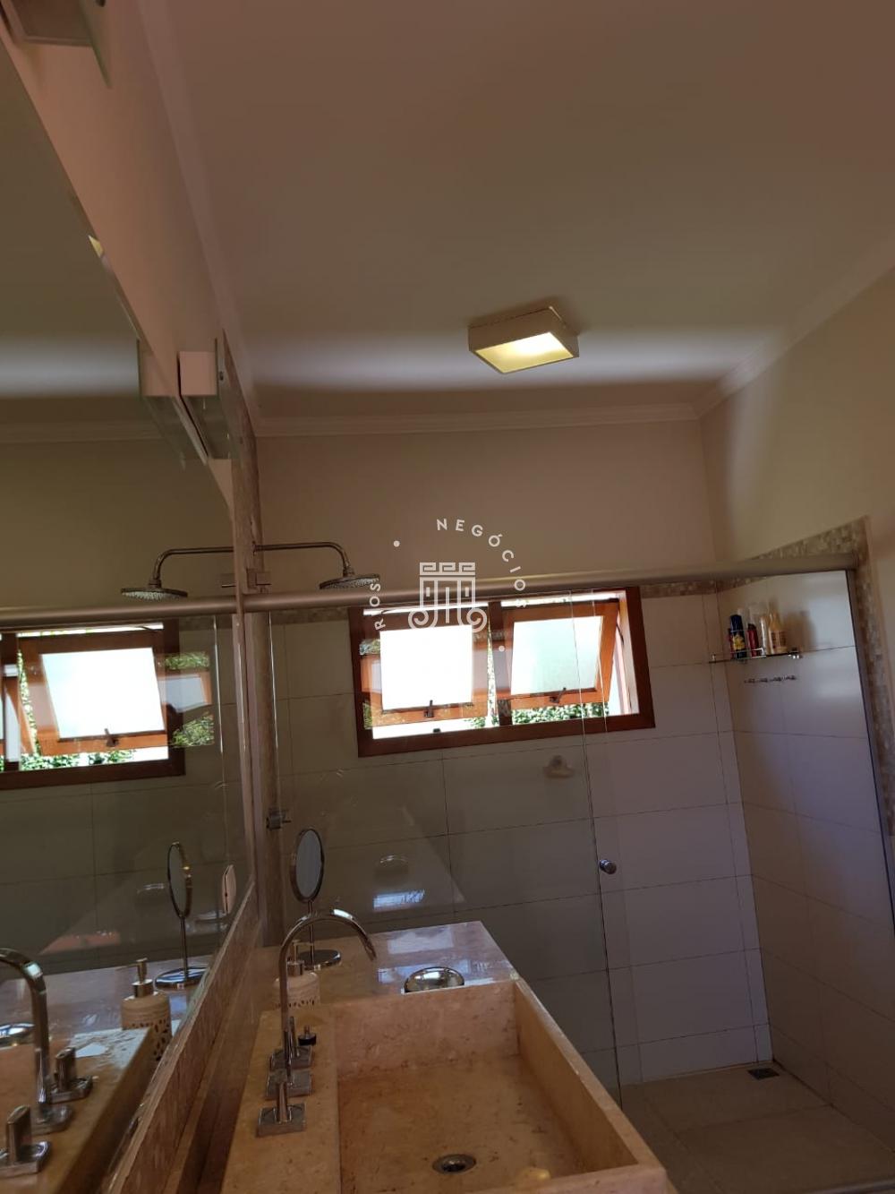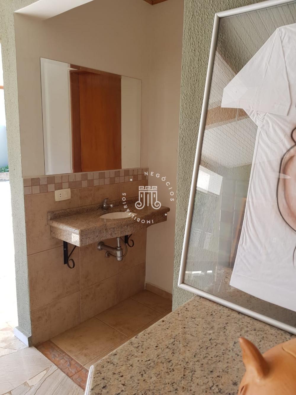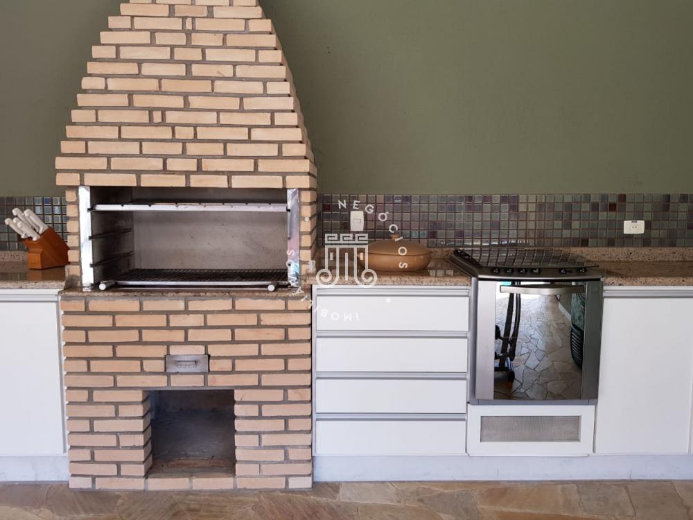 Casa moderna composta por sala ampla avarandada para 02 ambientes, pé direito duplo, mezanino, lavabo, jardim de inverno com fonte, escritório, banheiro social completo, 03 dormitórios, sendo 01 suíte master, todos com armários, ar condicionado, cozinha ampla com armários planejados, equipada com fogão, lava-louças, 02 geladeiras e coifa, lavanderia com armários e 02 maquinas de lavar, espaço gourmet com churrasqueira, forno de pizza, forno e fogão embutidos, quarto de hospedes com banheiro, piscina alvenaria, jardim paisagístico todo iluminado, jardim gourmet com vários tipos de ervas, pomar produzindo (romã, limão Taiti, seriguela, laranja, manga, pêssego, mexerica e outros) e 4 vagas de garagem cobertas.