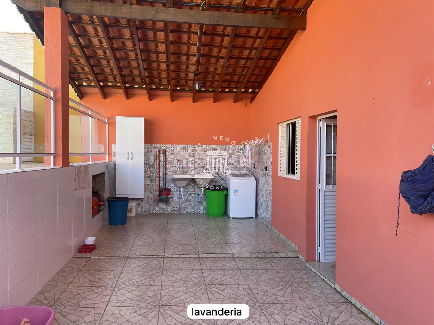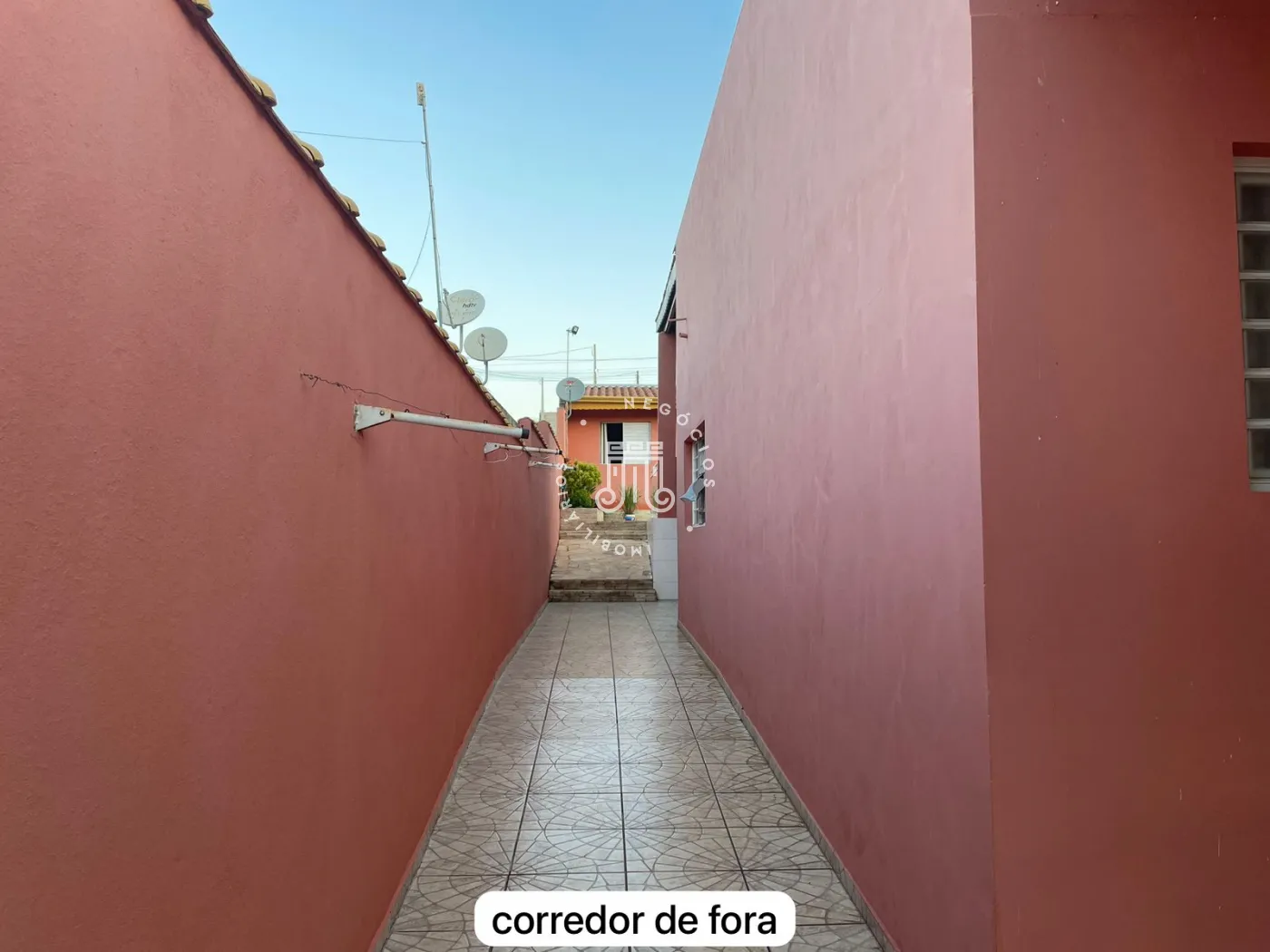 A construção possui acabamento simples, com piso cerâmico e pintura nas paredes internas e externas. A cozinha é equipada com pia e bancada. No quintal, há espaço livre com piso de concreto, e a entrada principal conta com portão metálico.