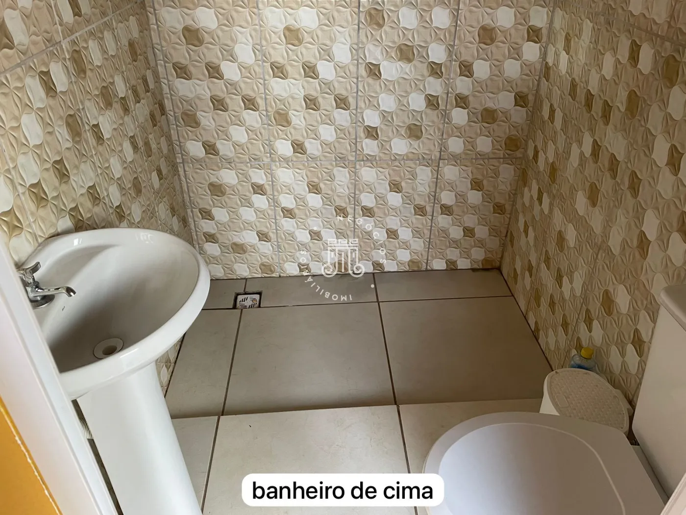 Localizado em uma região urbana, o imóvel é composto por uma construção com dois pavimentos. No piso inferior, há uma sala, uma cozinha, um banheiro social e uma área de serviço externa. O piso superior conta com três quartos, sendo um deles com varanda, além de um banheiro.