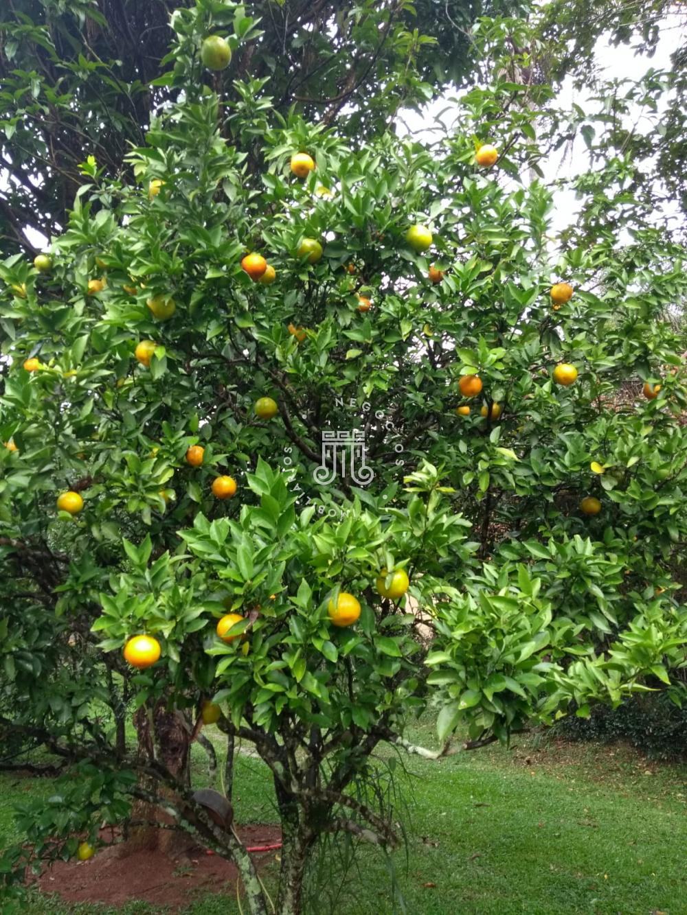 - Extensa área verde gramada com flores e pomar e horta, plantação de bananas;