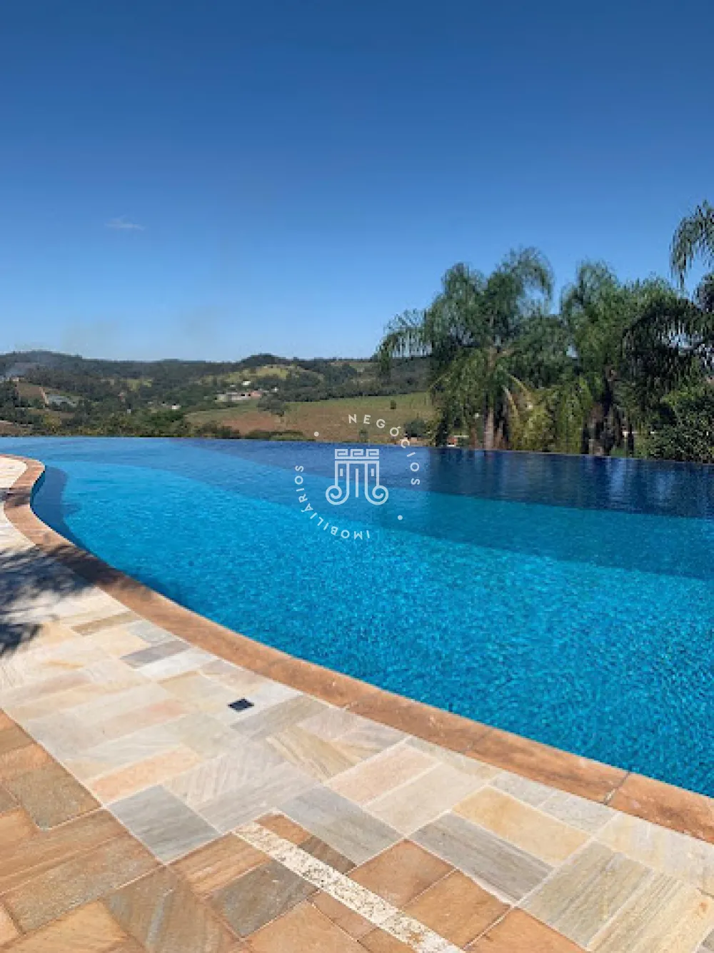 Condomínio com infraestrutura completa de lazer: piscinas adulto e infantil, sala de jogos, quadra de tênis, mini campo de futebol, sauna, academia, mirante, lago de pesca, trilha de caminhada.
