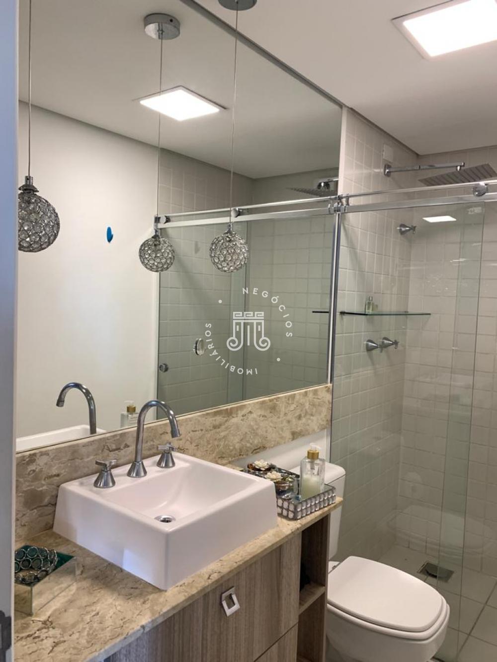 Com 2 dormitórios, sendo 1 suíte com closet, sala de estar, jantar e sala de TV, cozinha, todo o apto com móveis planejados, 3 banheiros, piso laminado de madeira nos dormitórios, porcelanato nos demais ambientes, fechadura eletrônica digital, corrimão de aço inox, 2 vagas.