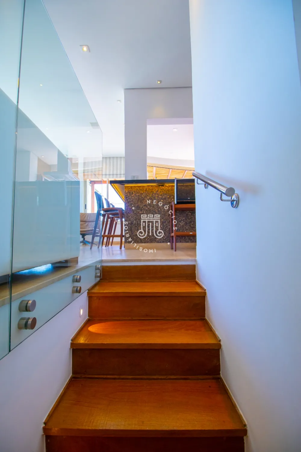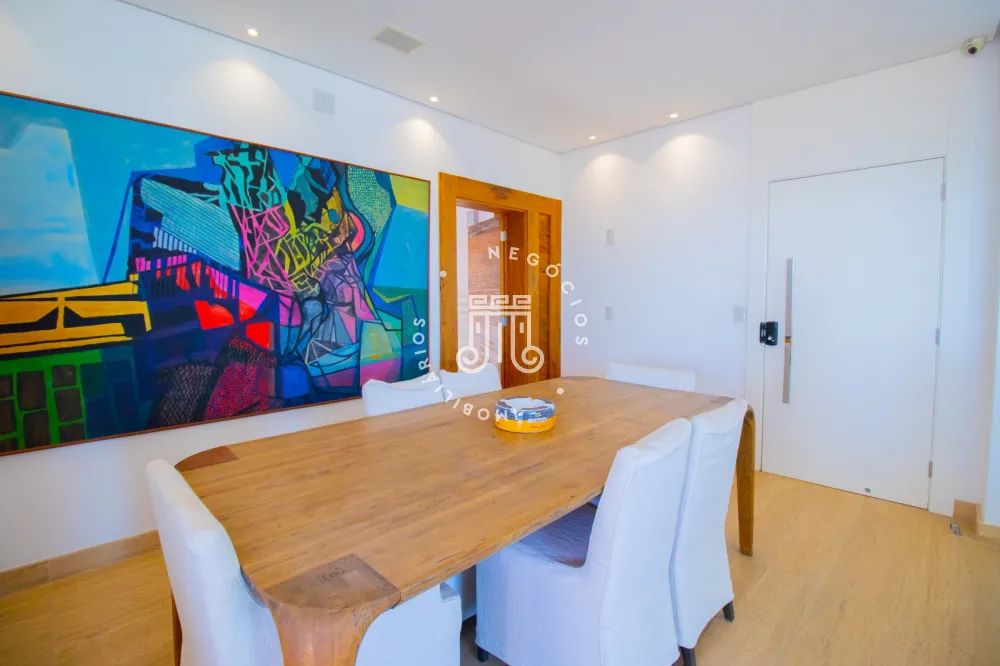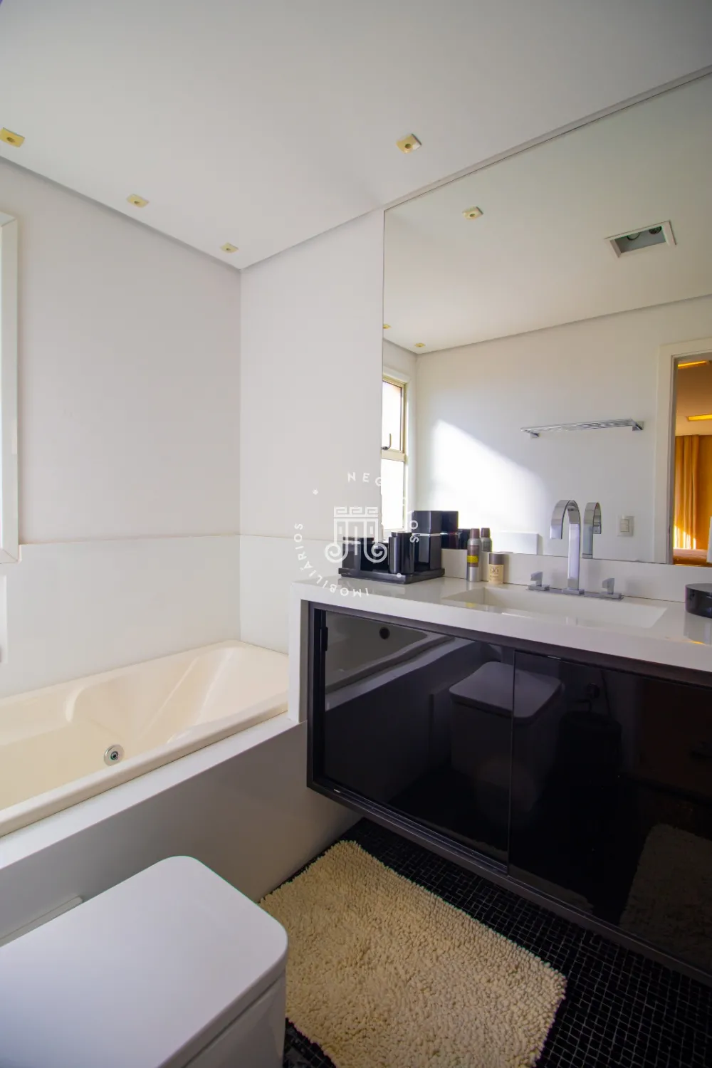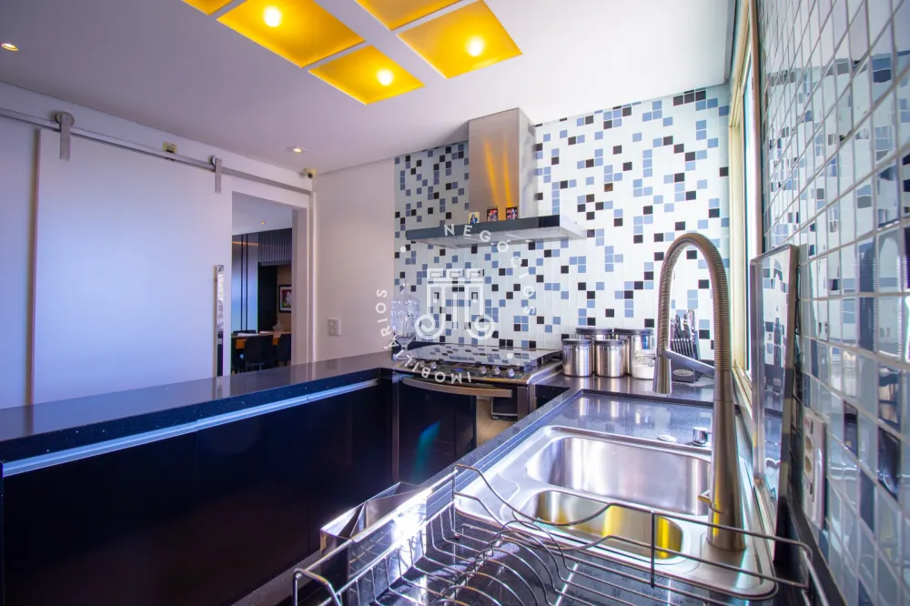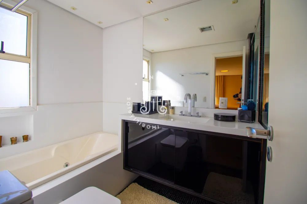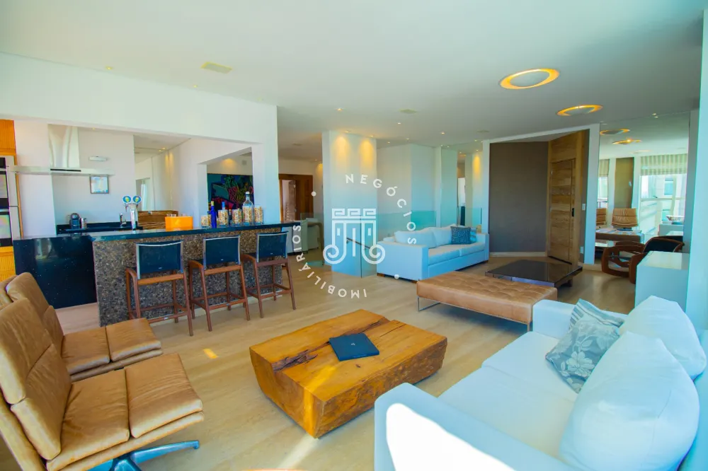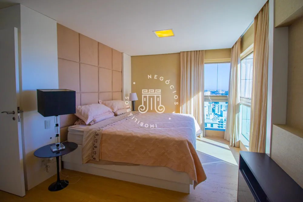 Diferenciais desta cobertura são 04 vagas cobertas, apenas 2 coberturas por andar, vista panorâmica de todos os ambientes, todo o revestimento de piso da cobertura é de mármore travertino, bancadas e pias de silestone e ônix, marcenaria em todos os ambientes, ar condicionado em todos os ambientes, 02 cozinhas equipadas e completas, som ambiente em todos os andares na área social e iluminação em led.